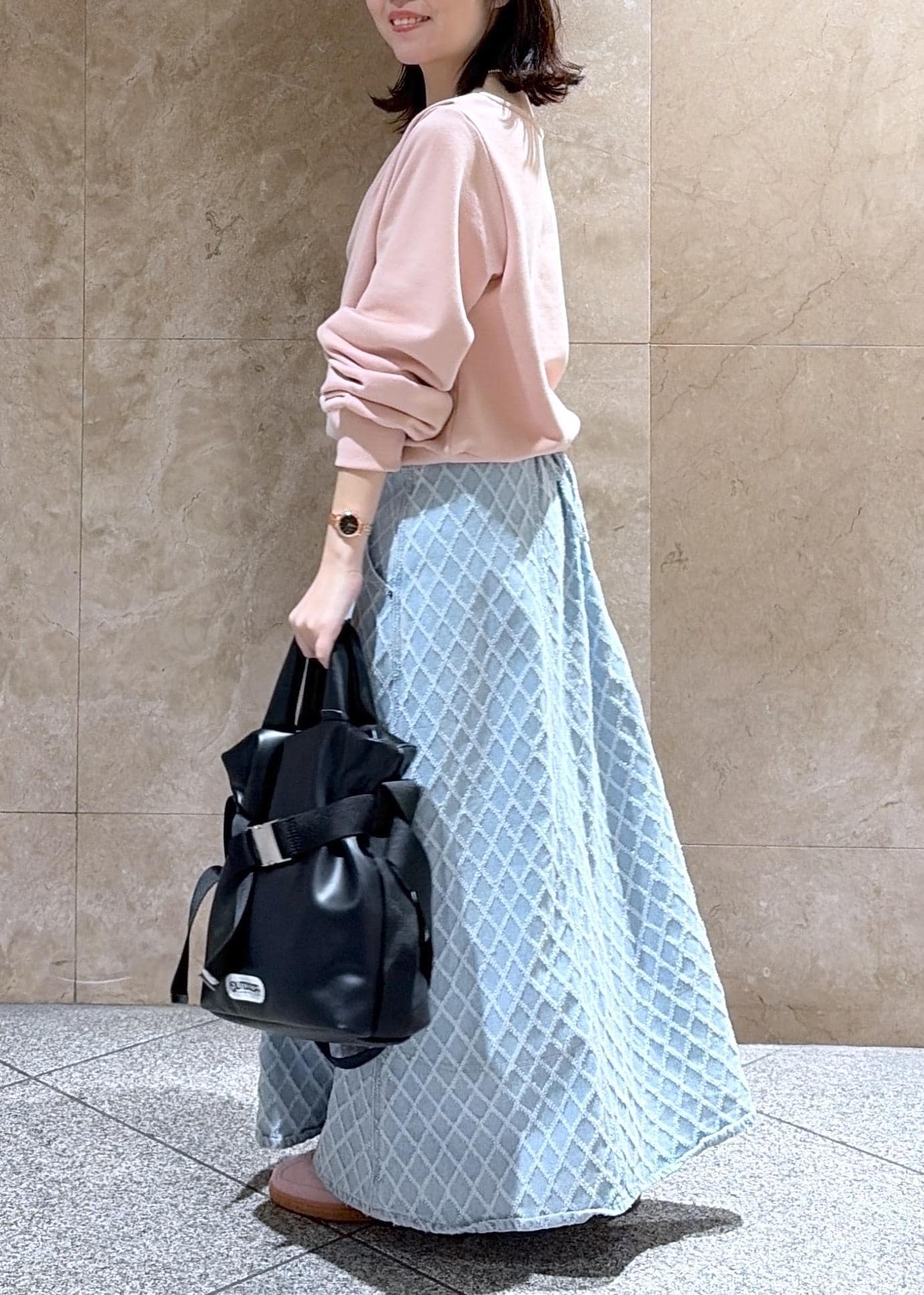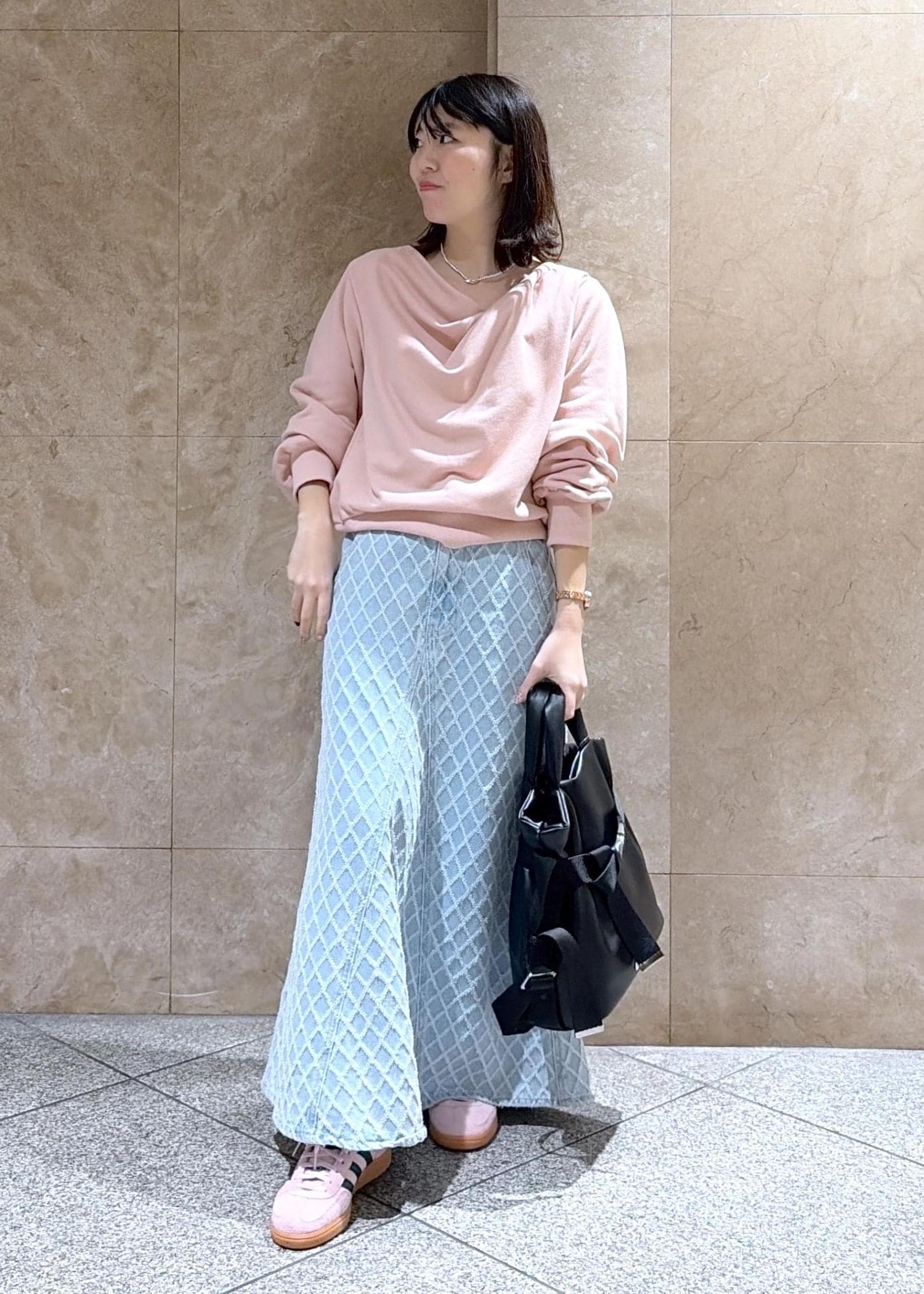 スウェット素材でもドレープのデザインなので、カジュアルすぎず着用できます◎