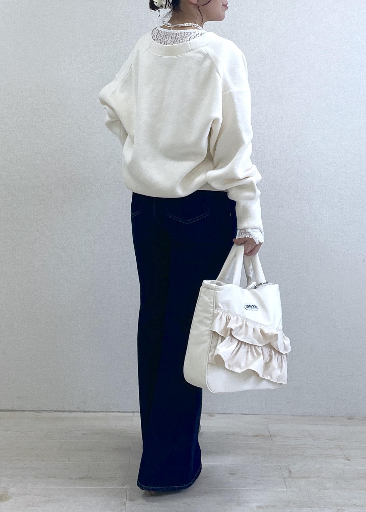 ゆるっとしたシルエットですが、オーバーサイズすぎず綺麗に着用できます! -