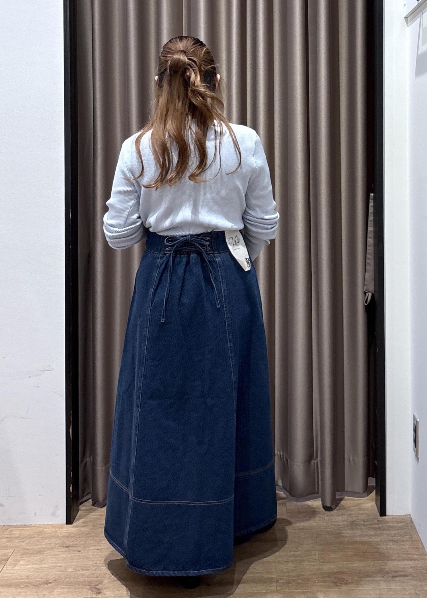 VISバックレースアップフレアデニムスカート/イージーケアブルー / M¥8,899レビュー153cm.Mサイズ着用で足首が隠れるくらいの丈感です!