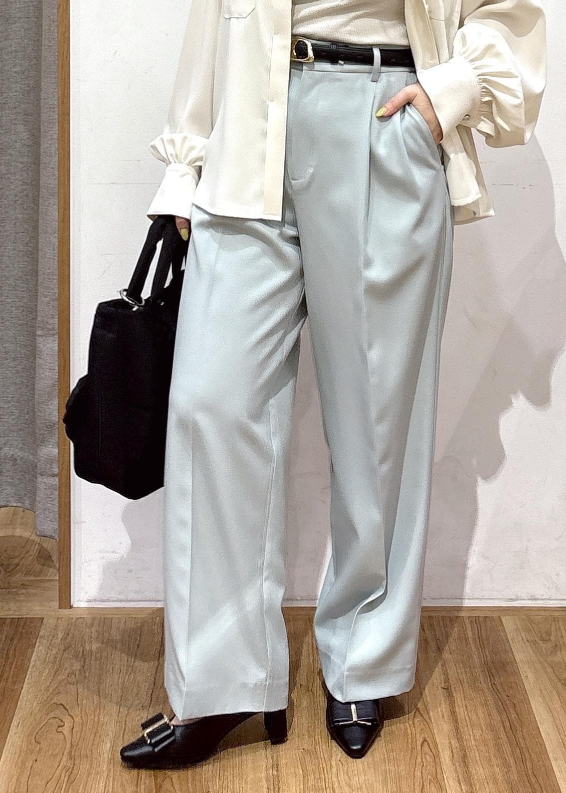 普段使いやお仕事用にも転用できる、シンプルで扱いやすいアイテムを使用したコーディネートです。