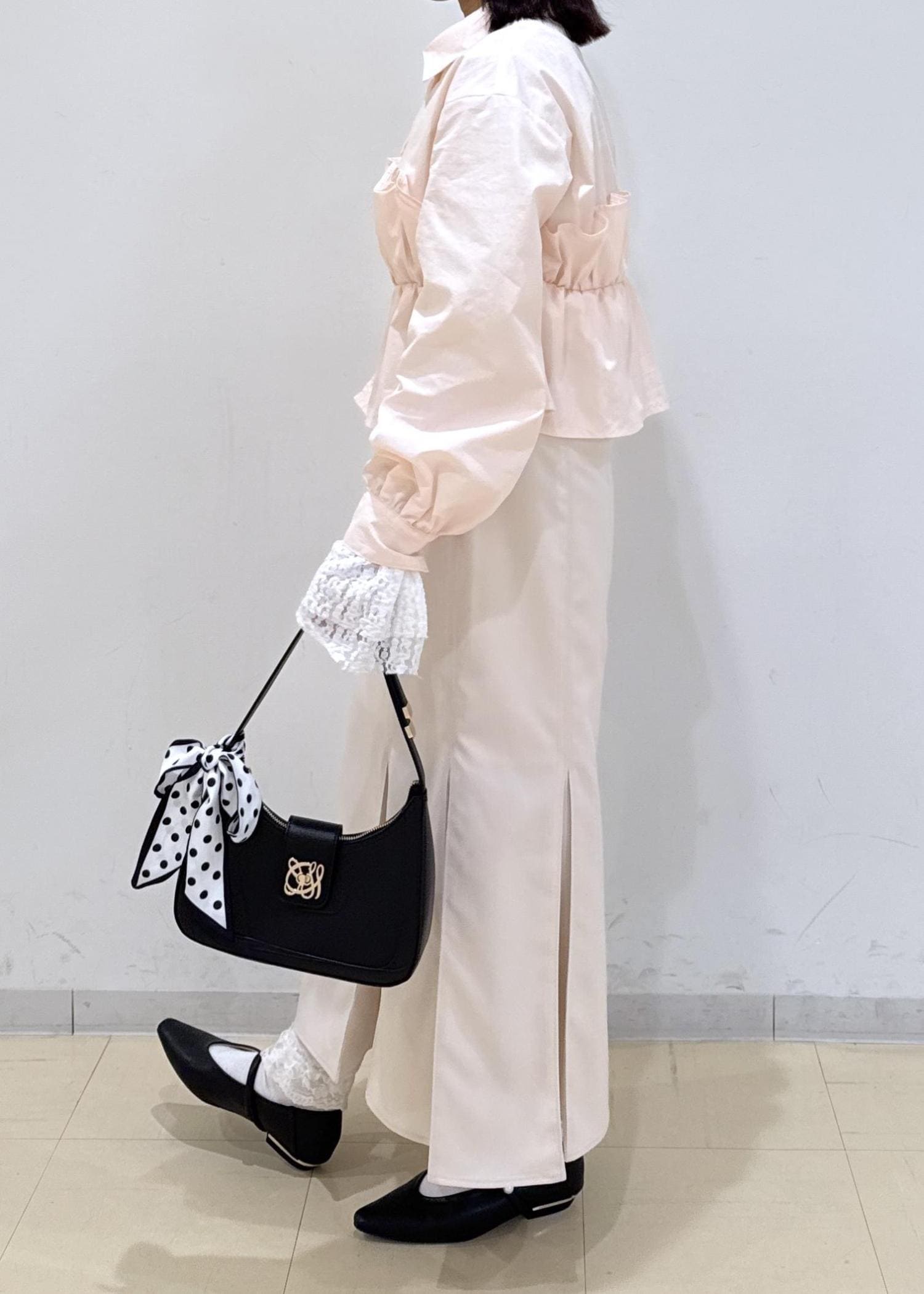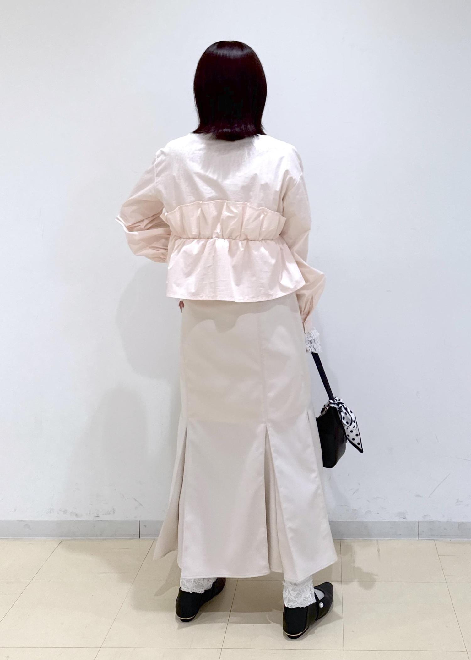 レースのインナーを着ることで、春らしさをよりプラスしました◎