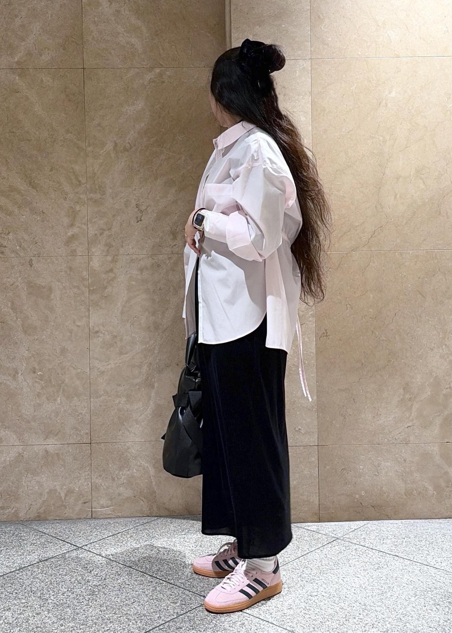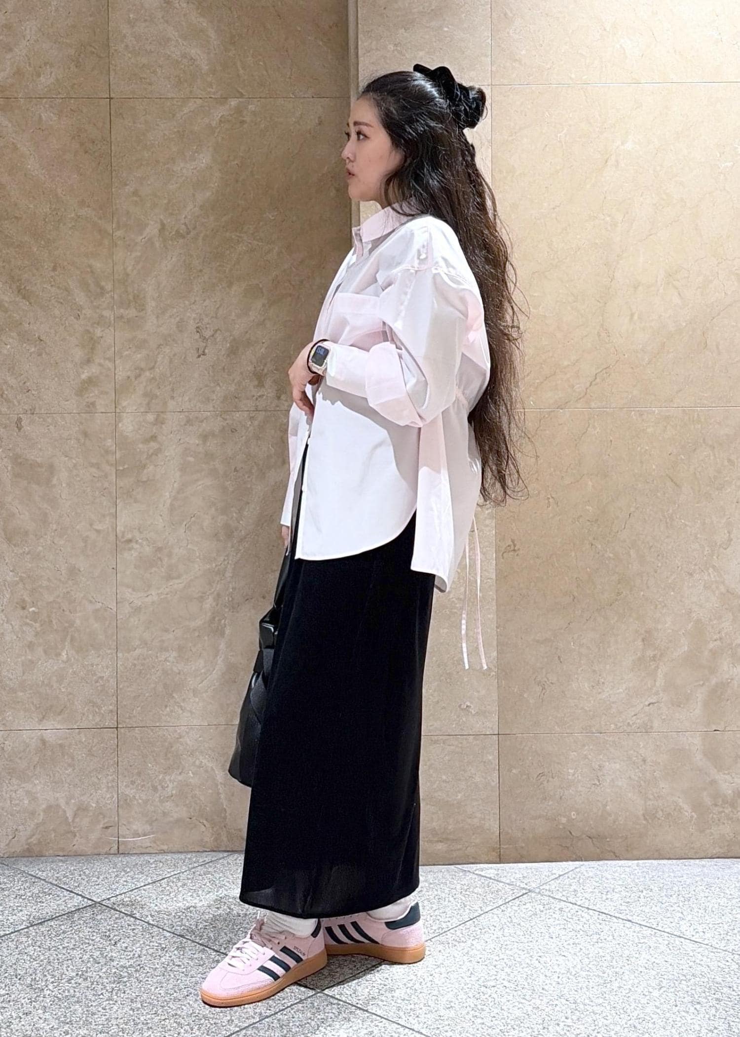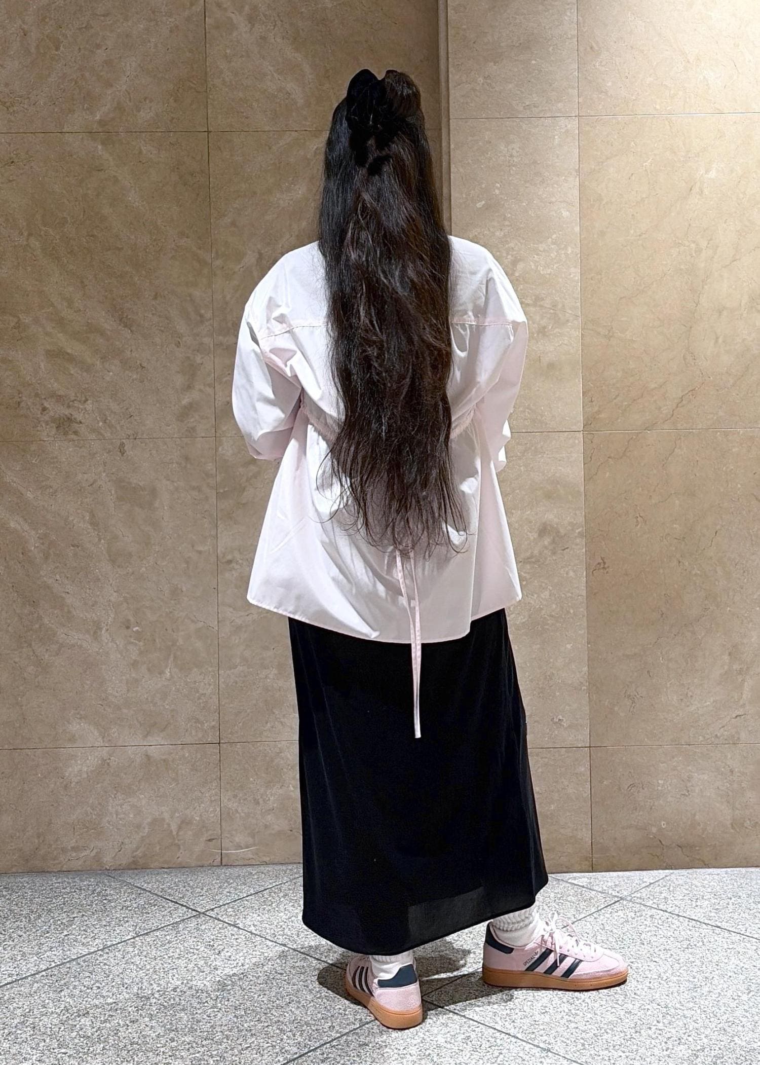 VISウエストリボンシャツ/イージーケア・WEB限定カラーピンク / F¥5,489レビュー後ろの腰部分に紐が着いていて絞れるようになっています!前から見るとシンプルなシャツタイプで後ろを振り返ると細見えです◎