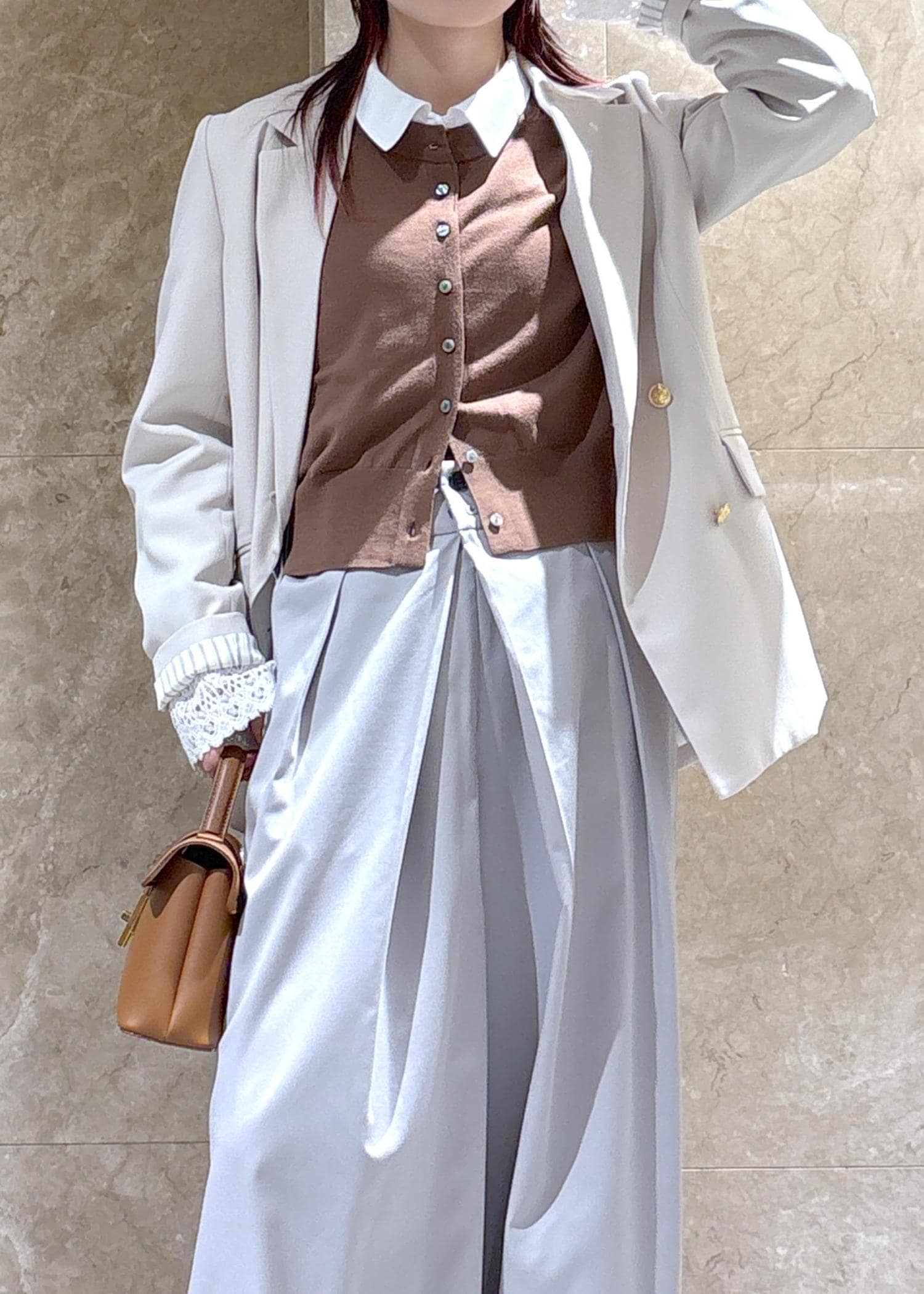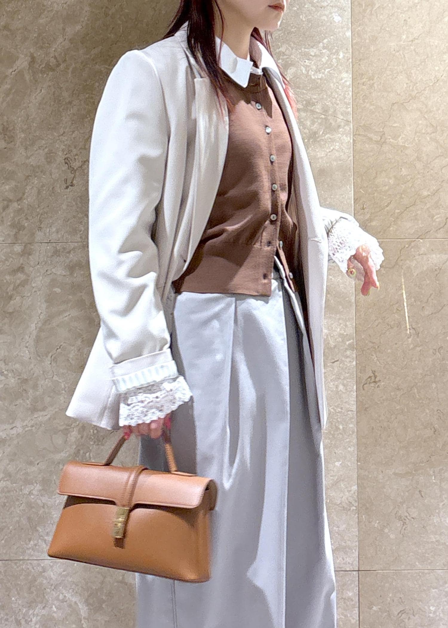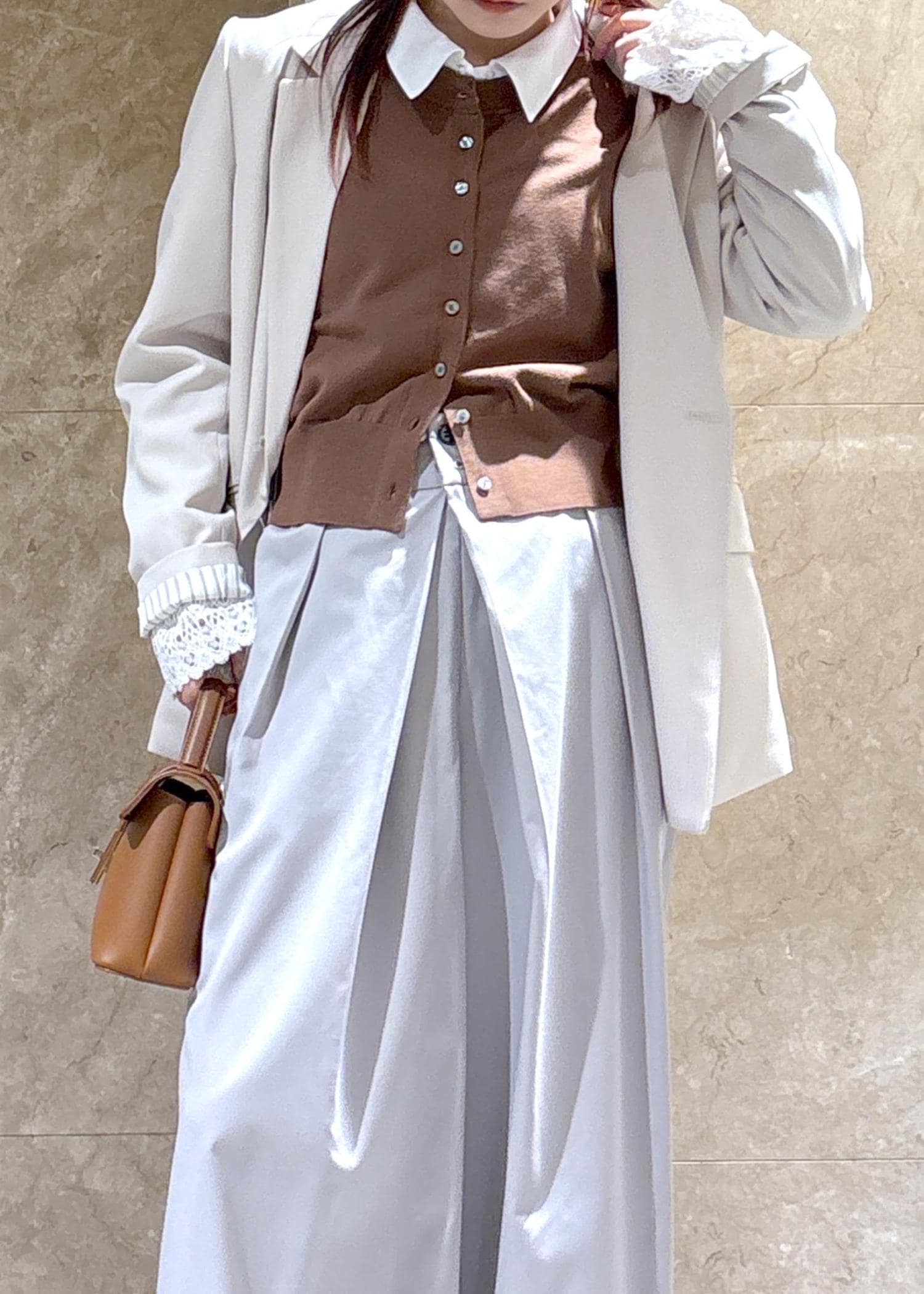 女っぽさもありつつ、カッコよくキマるシルエットです。