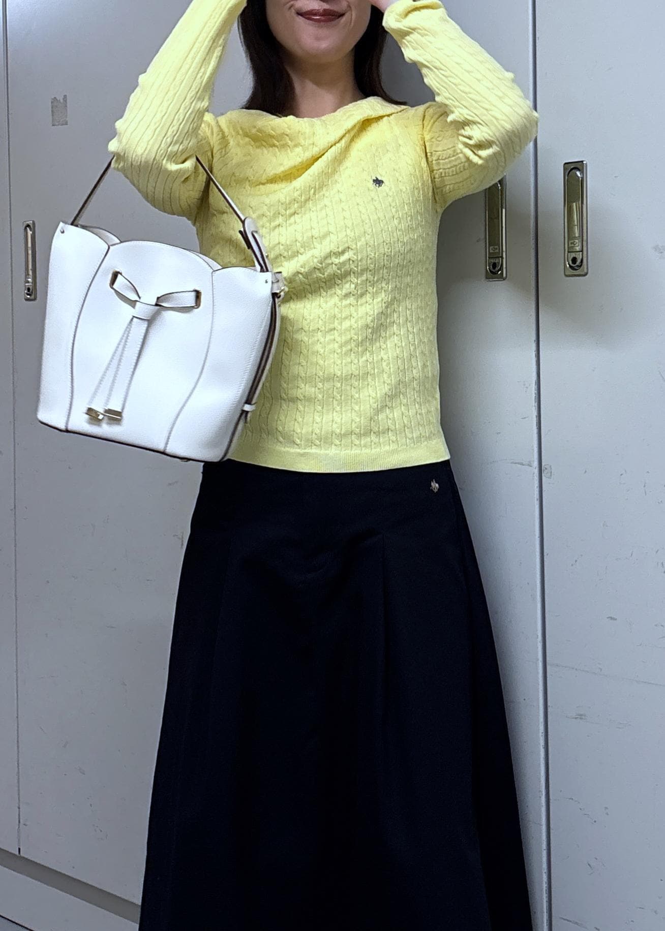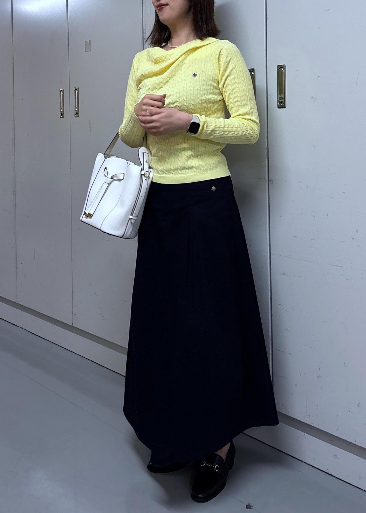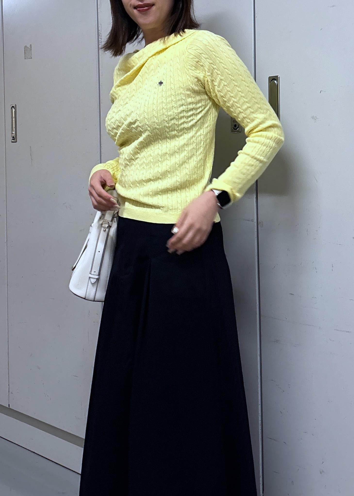 NEW!VIS【POLO BCS】ケーブルドレープトップス/WEB限定カラーイエロー / F¥6,930レビュー腰にかかるくらいの短めな丈ですが、ドレープのデザインが体のラインをカバーしてくれるので着やすいです。
