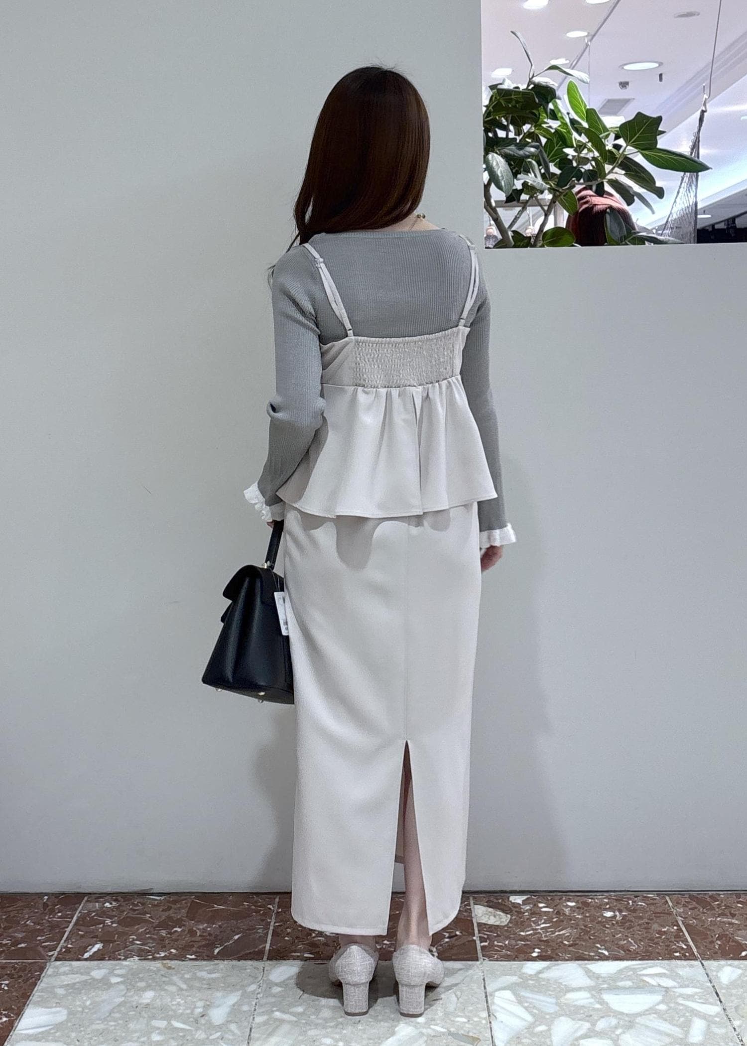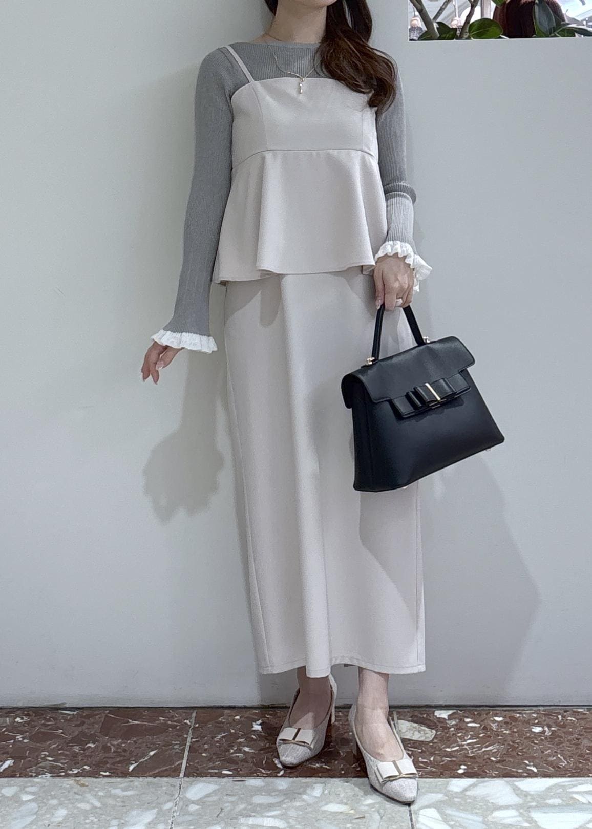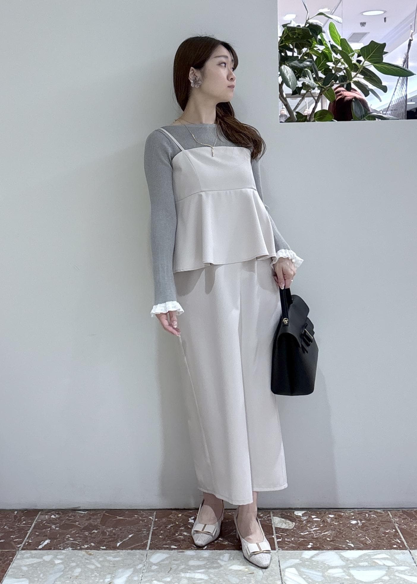 ストンとしたアイラインのシルエットで、腰周りのフリルが骨盤の張りもカバーしてくれるので体型カバーも◎