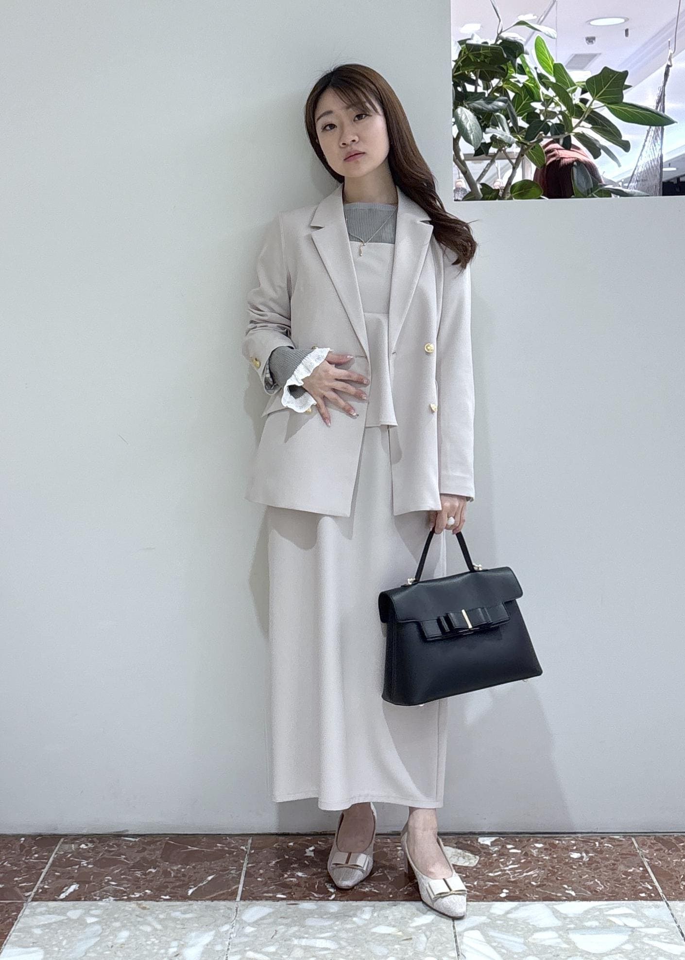 ゴールドのボタンがコーデに華やかさもプラスしてくれます♡ -