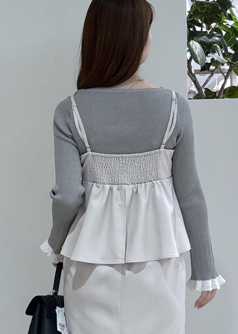 VIS袖口レース編みニットプルオーバーライトグレー / F¥4,389レビュー袖のひらっとしたフリルのデザインがかわいいインナー。重ね着にも丁度いい薄さで、年中使える素材感なのも嬉しいポイント¨̮⃝