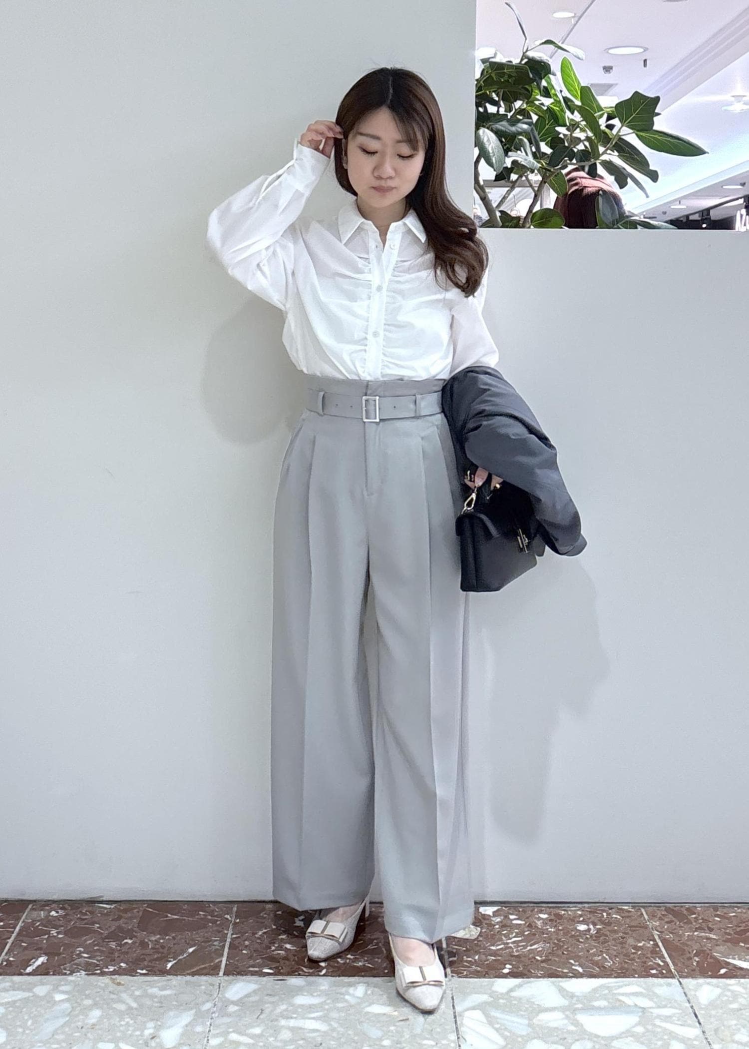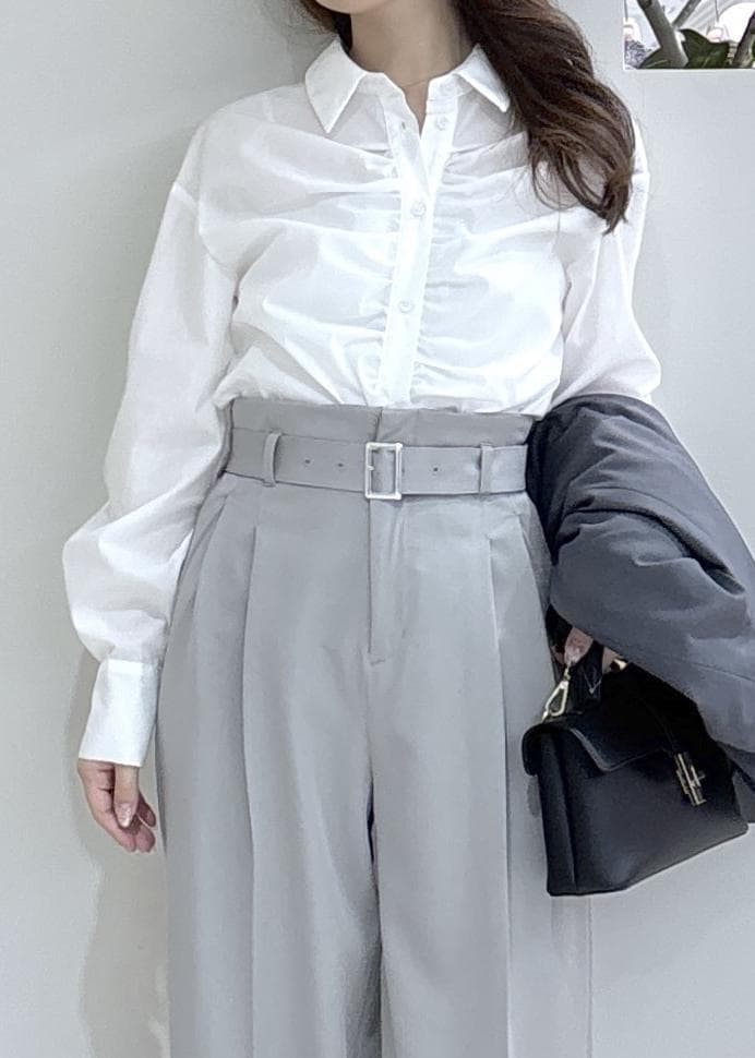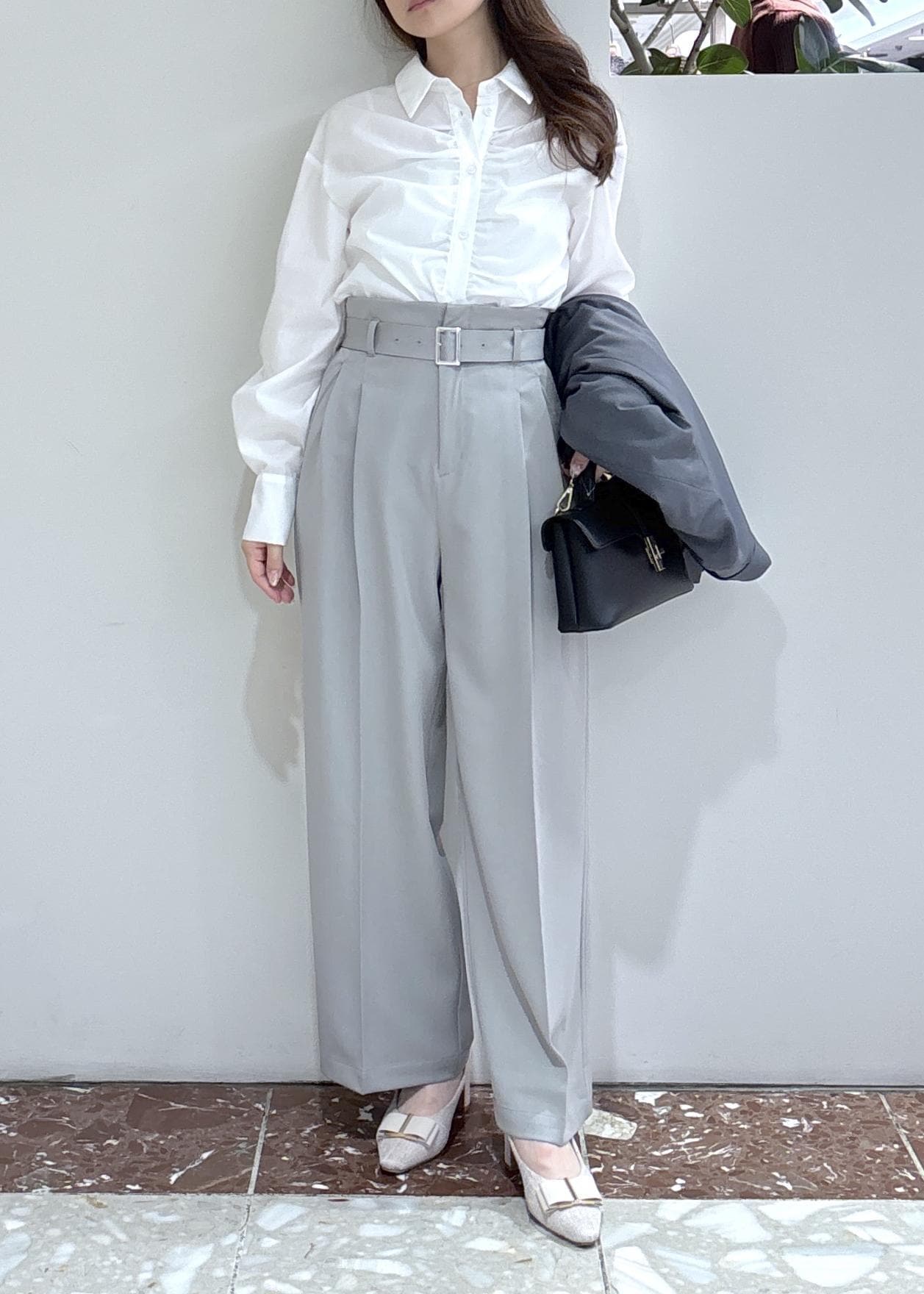 VISベルトディティールパンツ/防シワ・イージーケアライトグレー / S¥6,589レビュー158cmSサイズ着用。着丈は足の甲にかかるくらいでした!ハイウエストでベルト調節も幅広く出来きるので骨格ウェーブには嬉しい形のパンツです◎