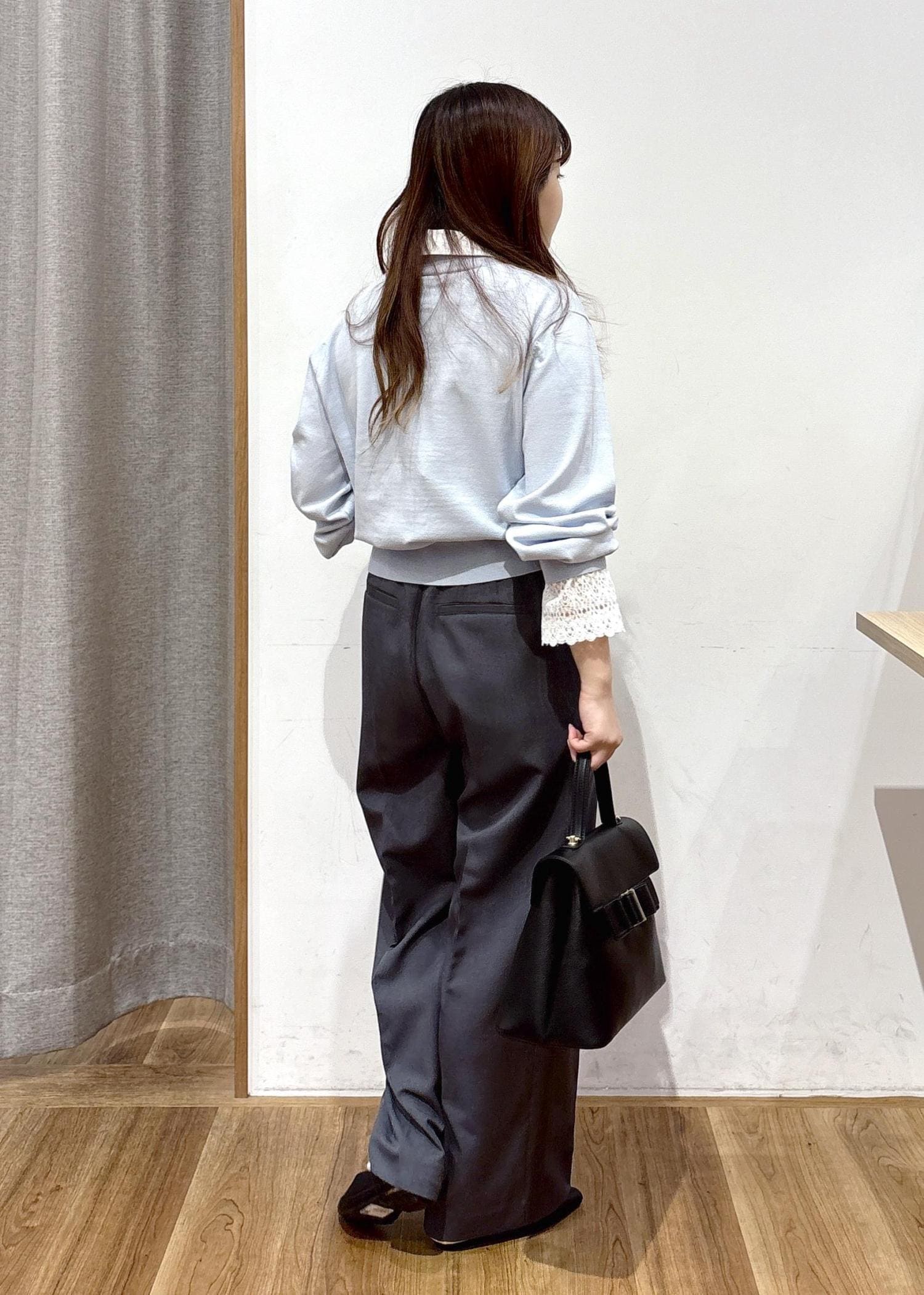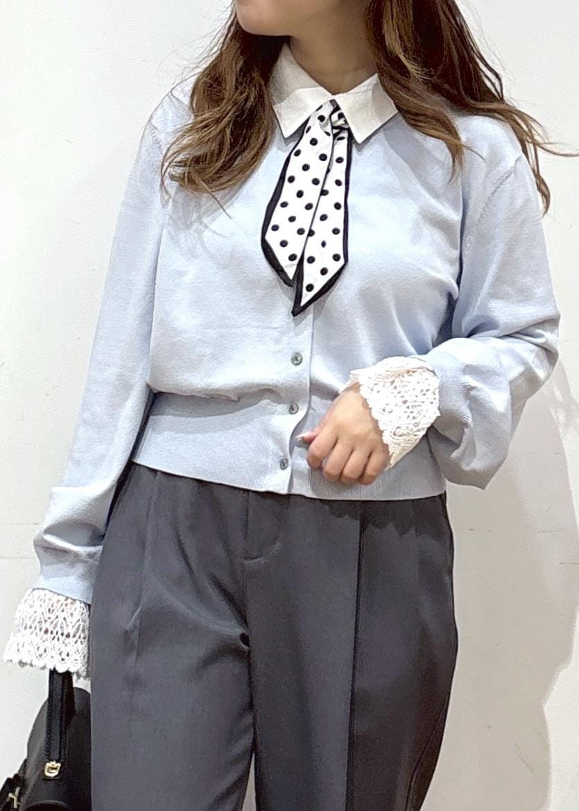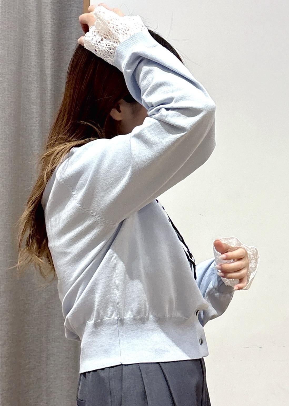 VISレースカフスドッキングニットカーディガンサックス / F¥6,589レビュー【着用感】