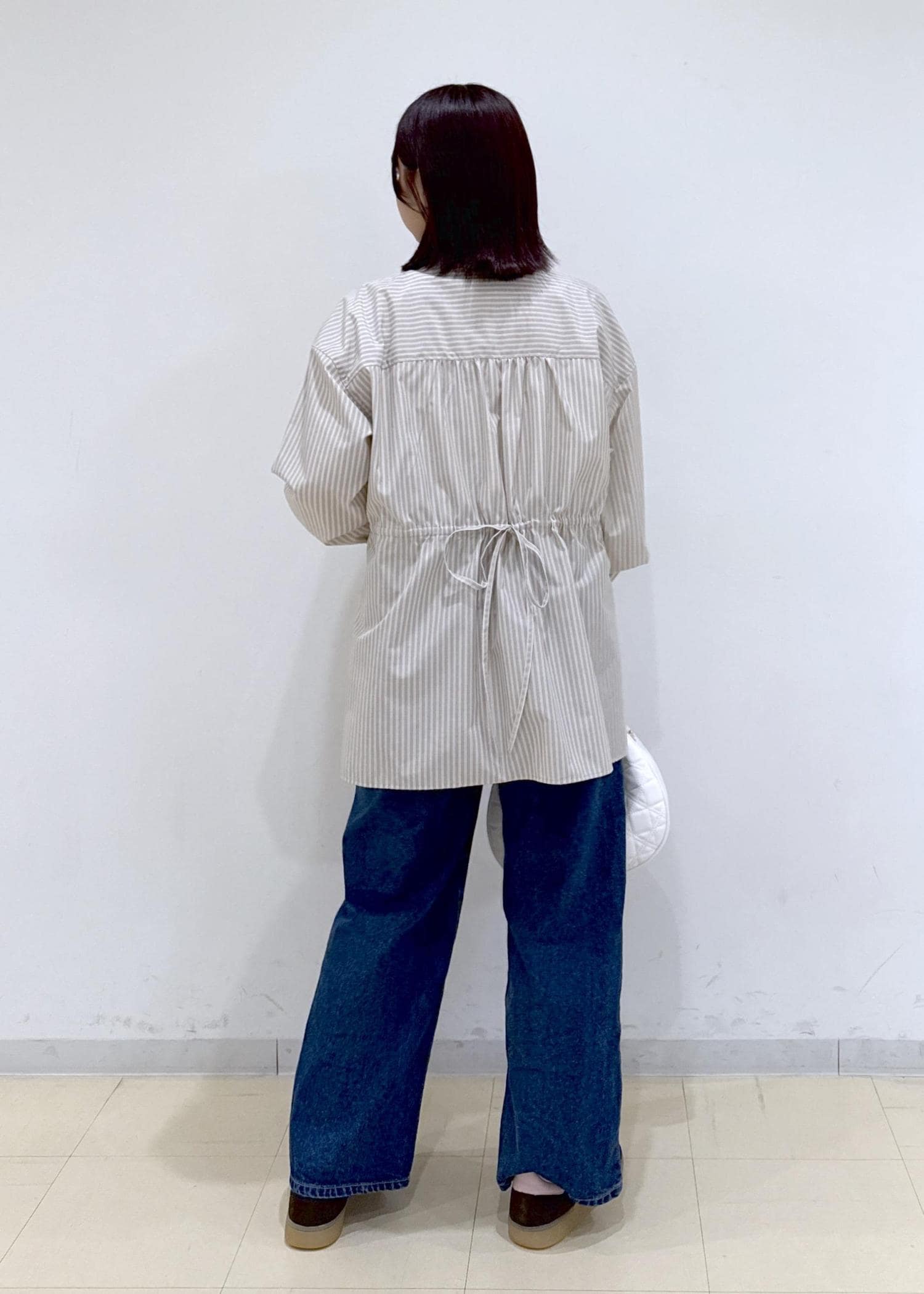 低身長なので長めの丈のシャツを着ると着られてる感が出てしまいますが、スリットがしっかりと入ってるため前だけインスタイルもしやすく、後ろの紐ですっきり見えさせることが出来るため、気にせず着られました! -