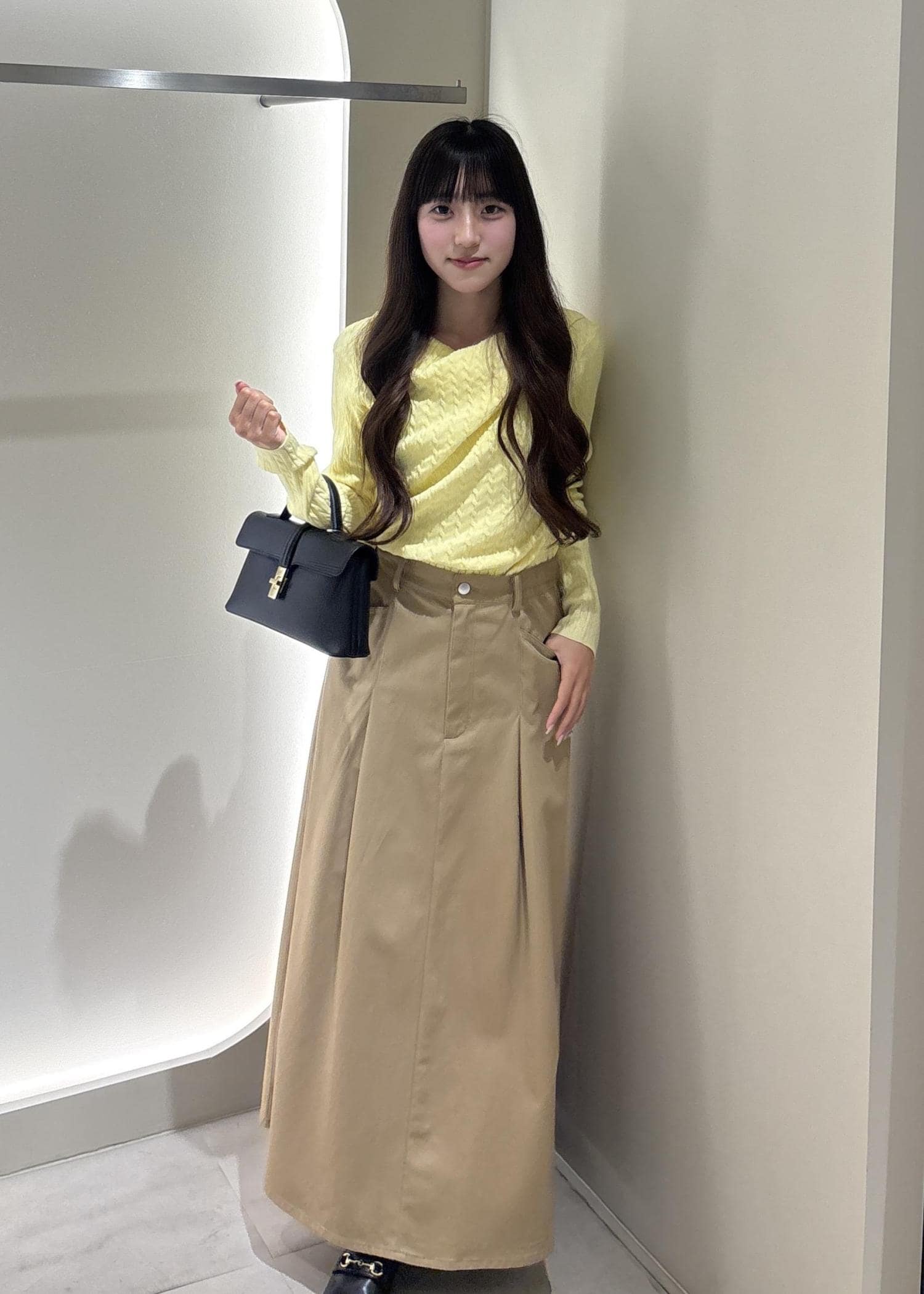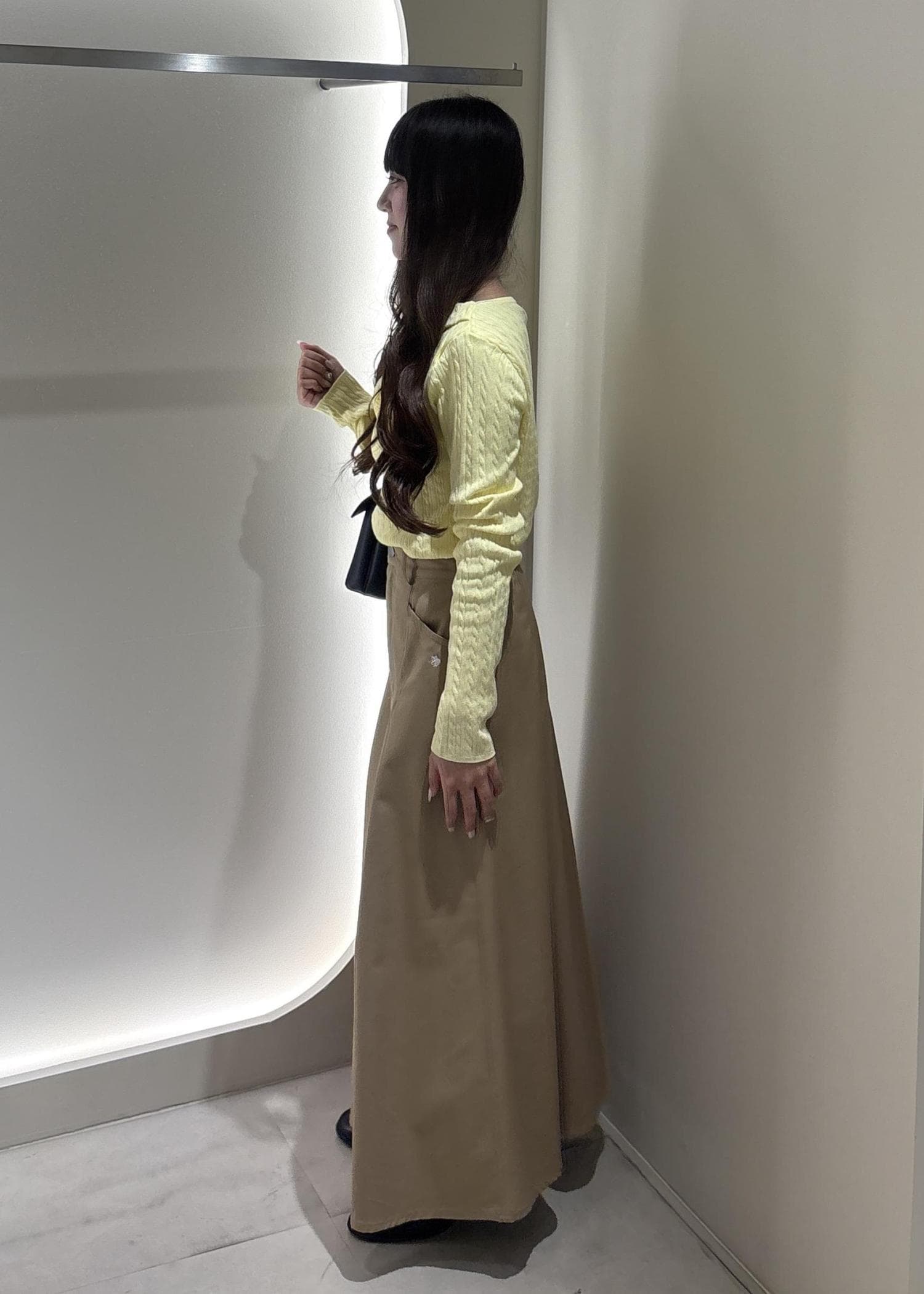 身長155cmでふくらはぎが隠れるくらいの丈感です。