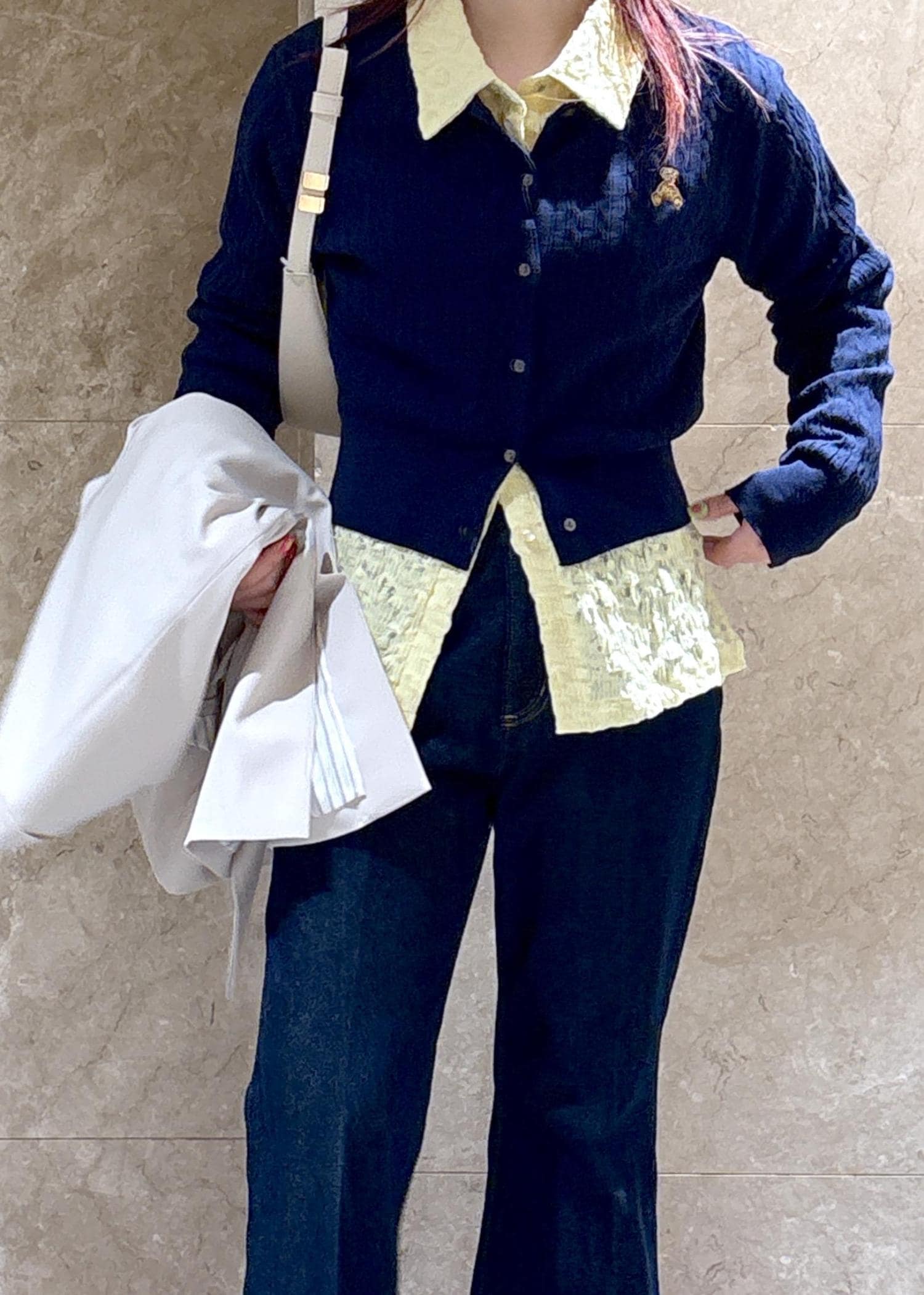 コンパクトめではありますが、中にシャツなどをレイヤードできるくらいのゆとりはありました◎