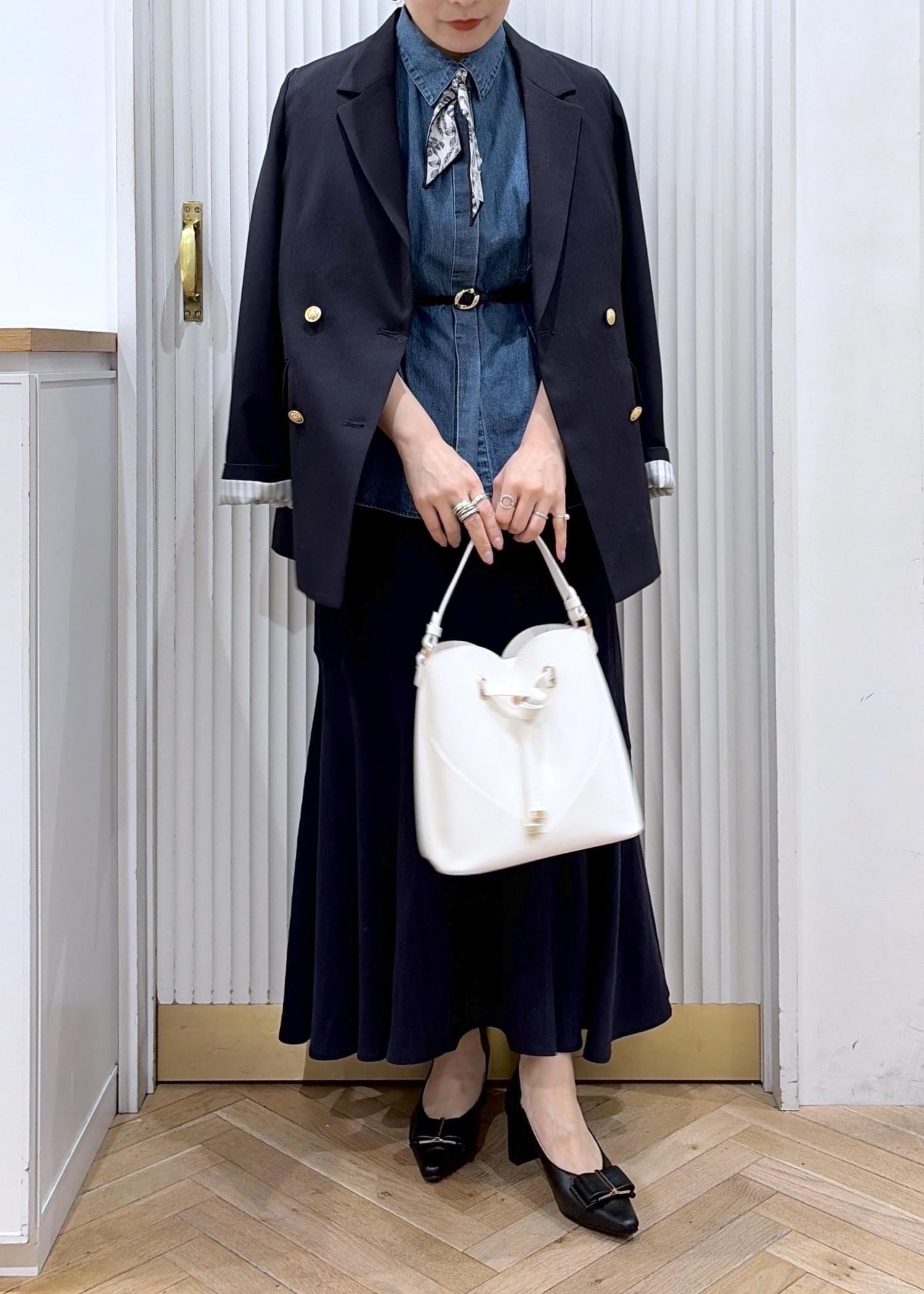 ジャケットとナロースカーフでフレンチシックにまとめてみました♡