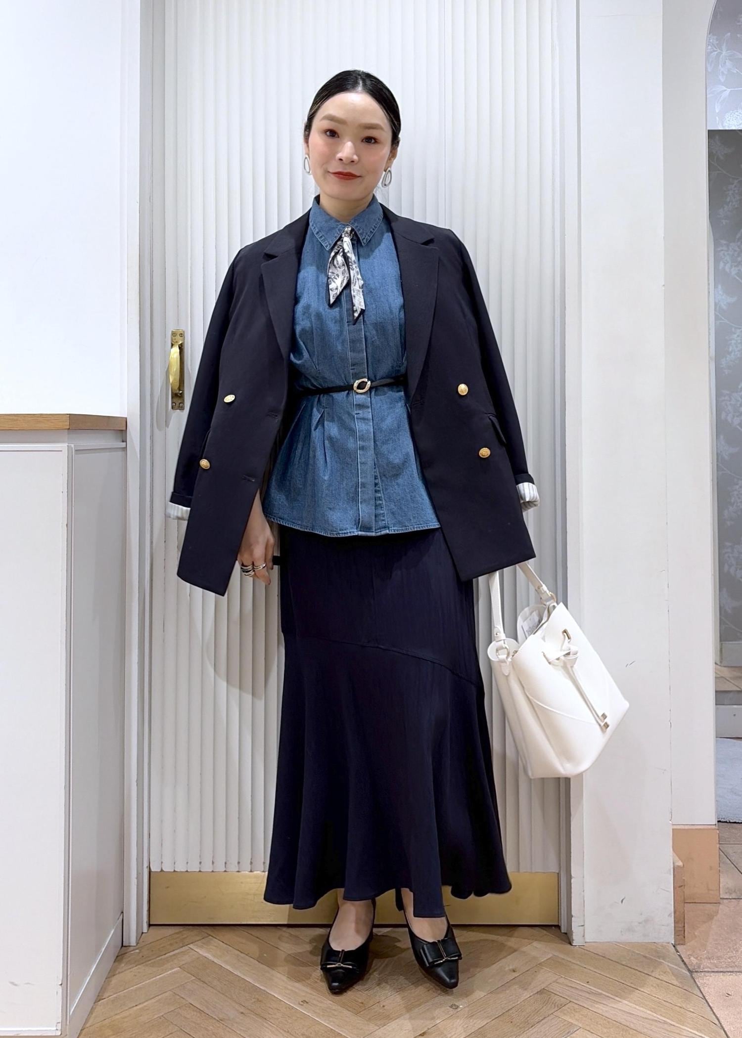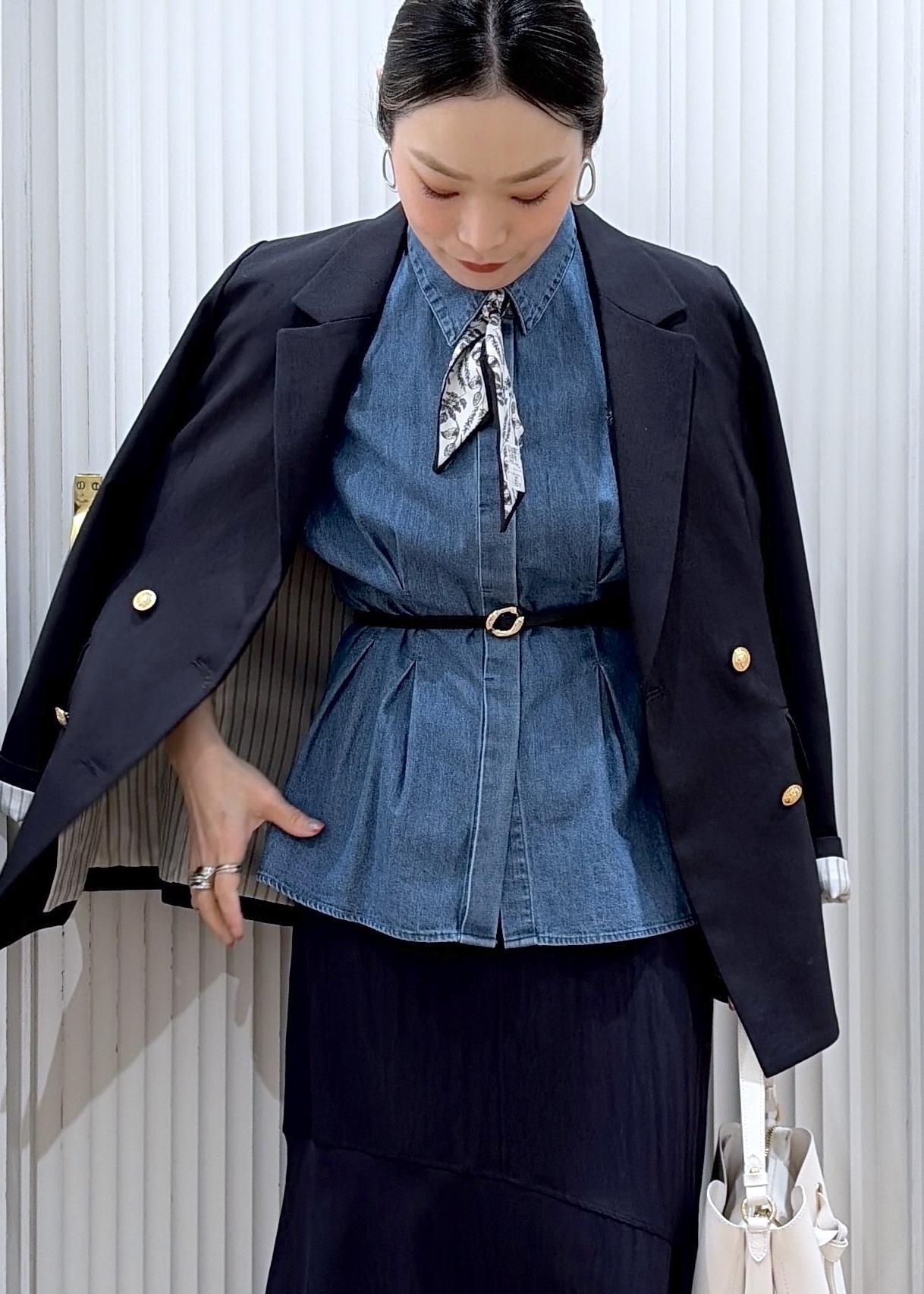 デニムシャツをお仕事にも着回し♡
