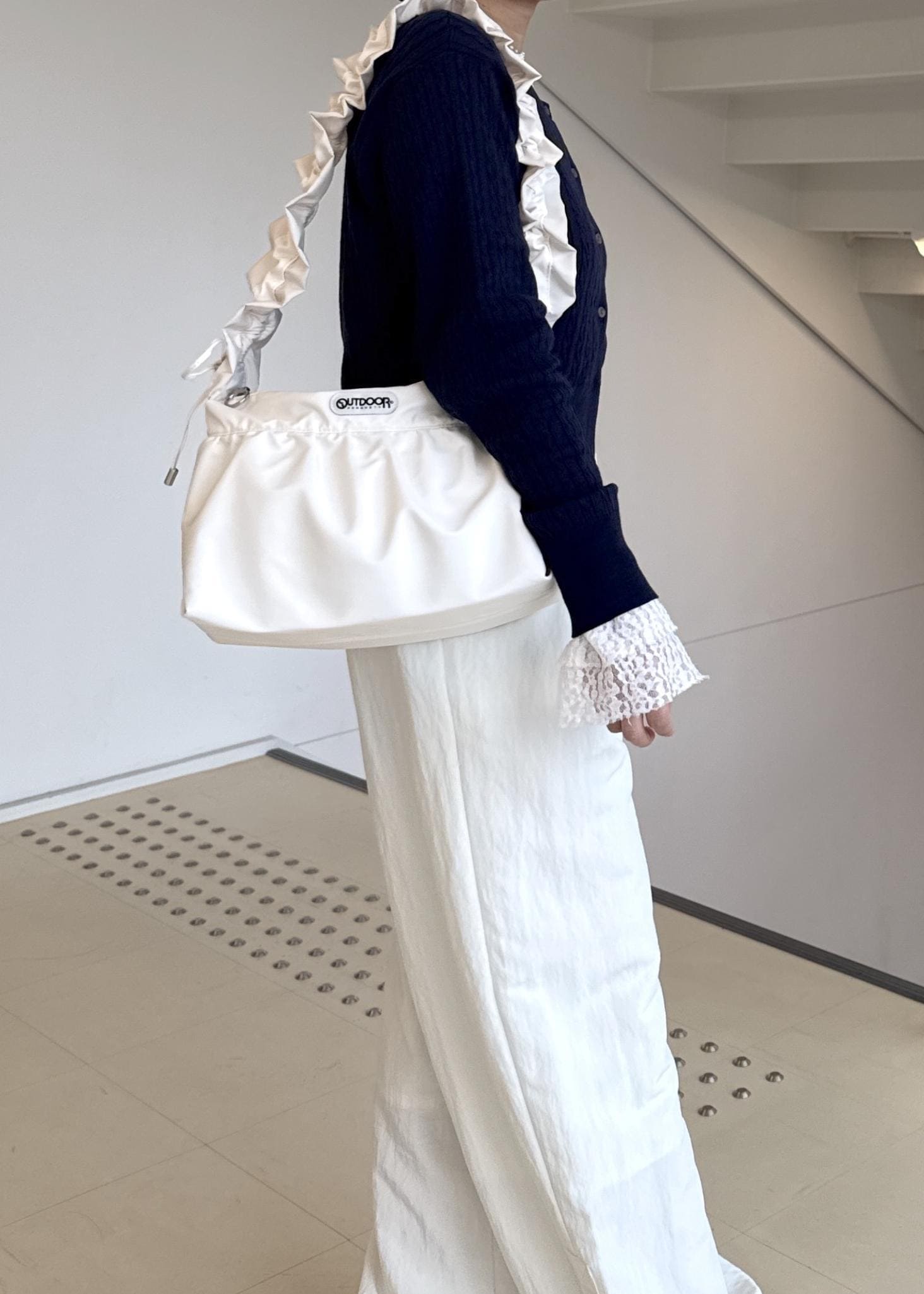 予約VIS【OUTDOOR PRODUCTS】VIS別注フリルショルダーバッグキナリ / F¥7,480レビュー紐の長さが調節可能なため、肩掛けも斜め掛けも出来ます◎