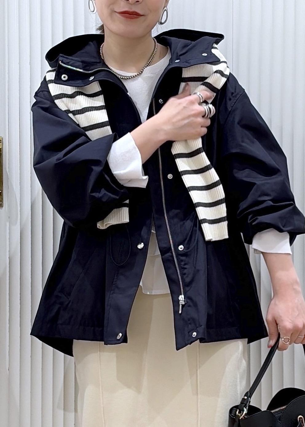 UVカット、花粉ガード、撥水機能付きで季節の変わり目に羽織りやすい軽くてやや張りのある素材です。