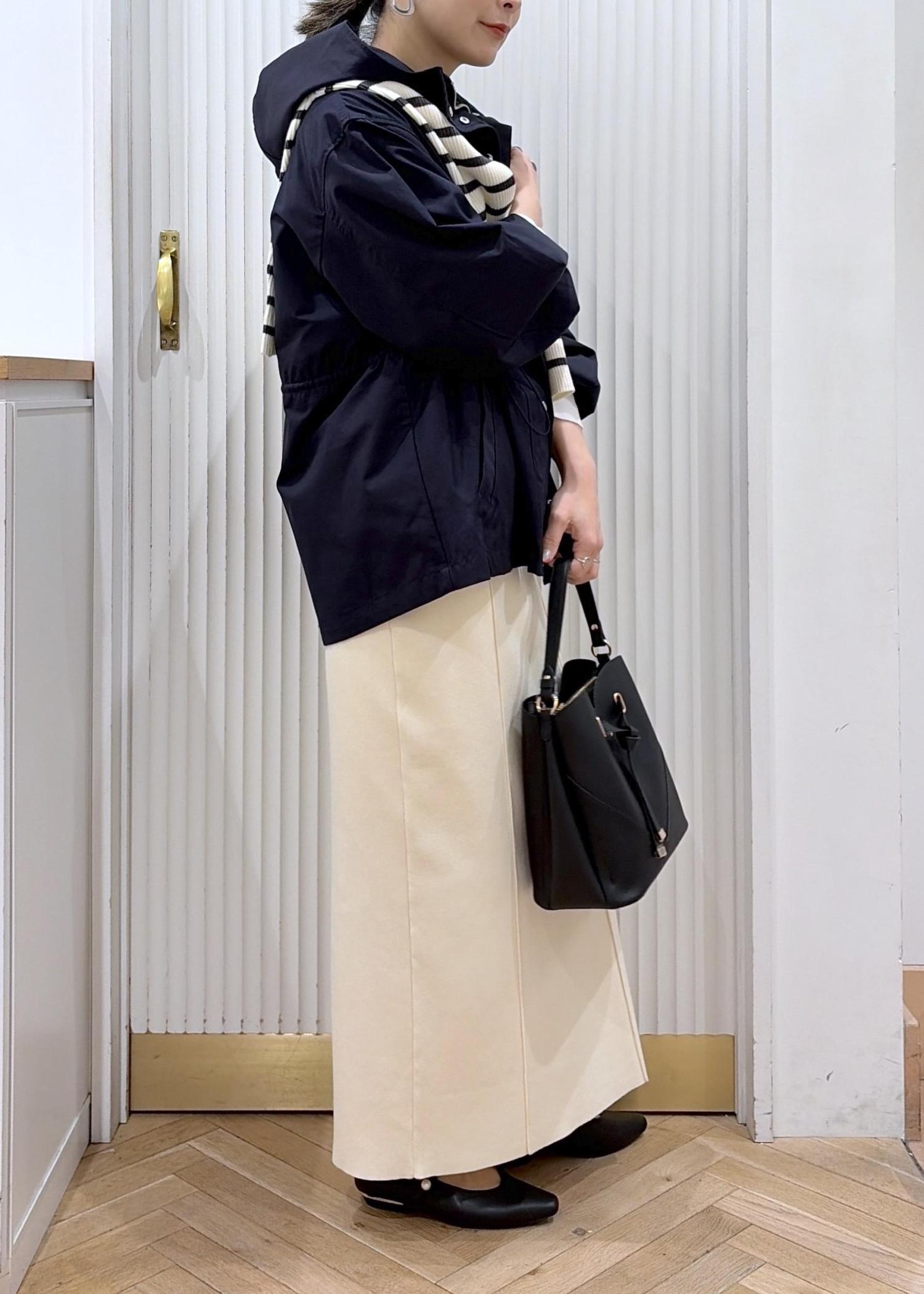 ネイビー×ボーダーのカジュアル王道スタイリングで組み合わせてみました。