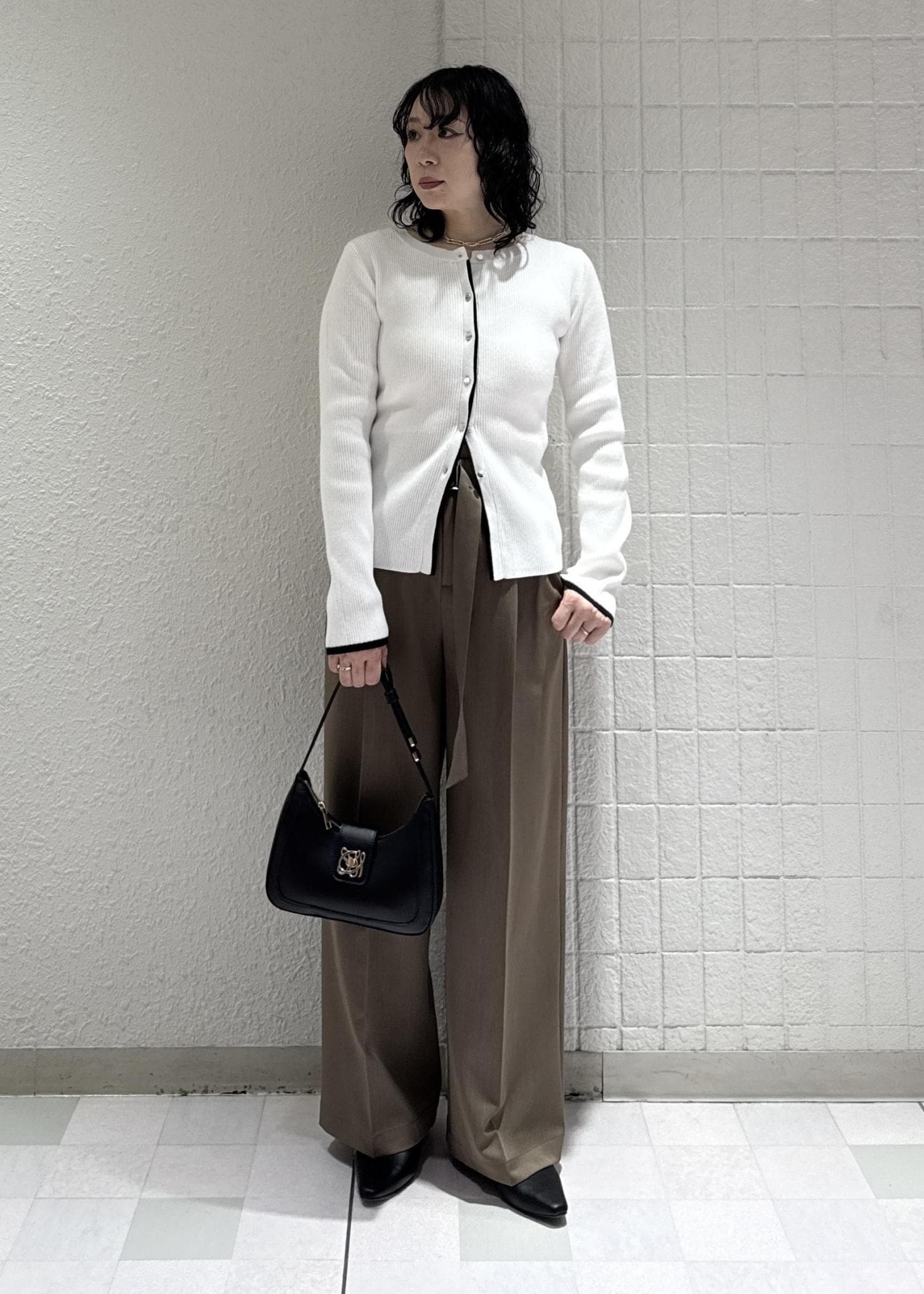 カーディガンのボタンの外し方でバランス良く、ただ着てる。にはならないようにしています♪