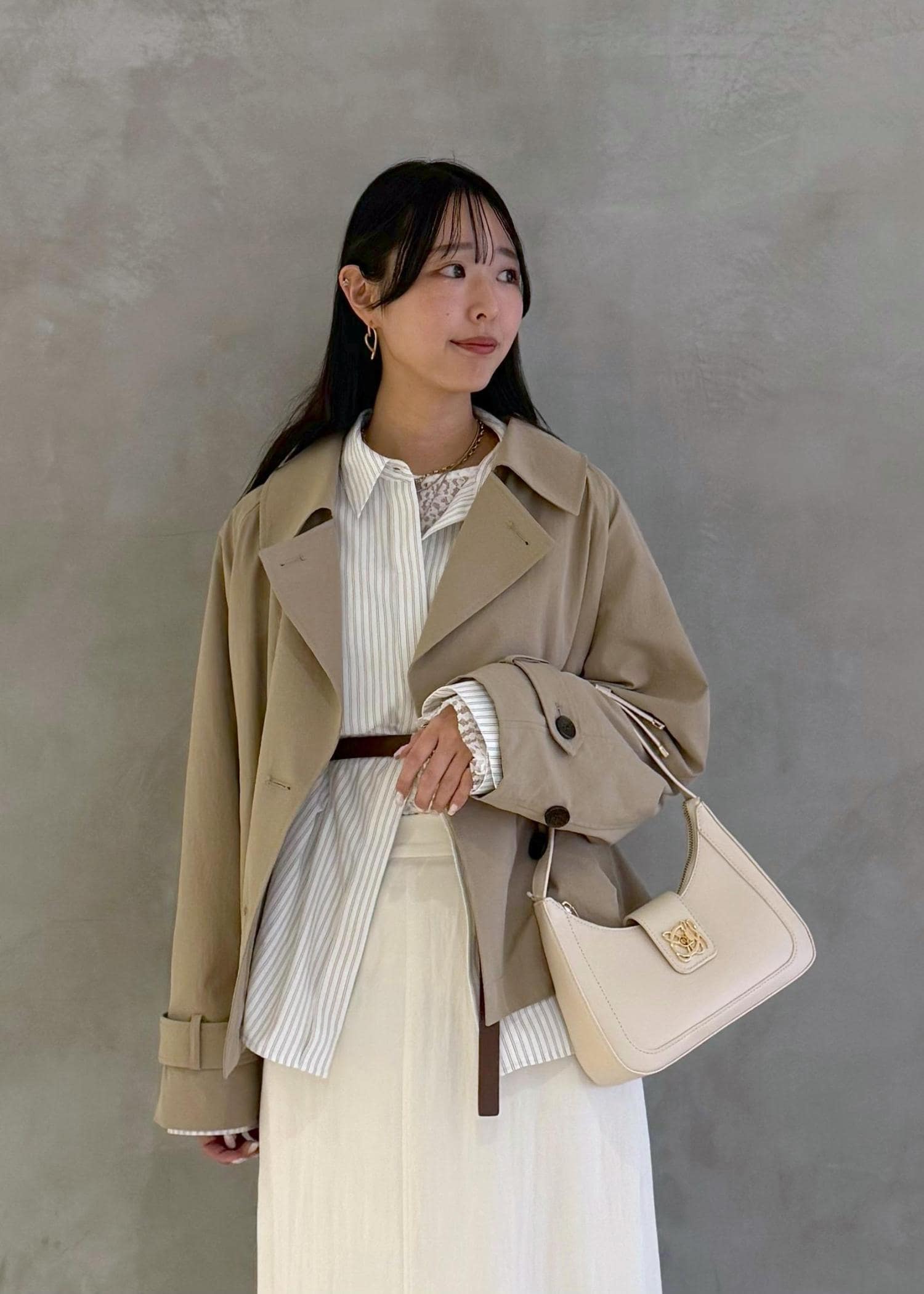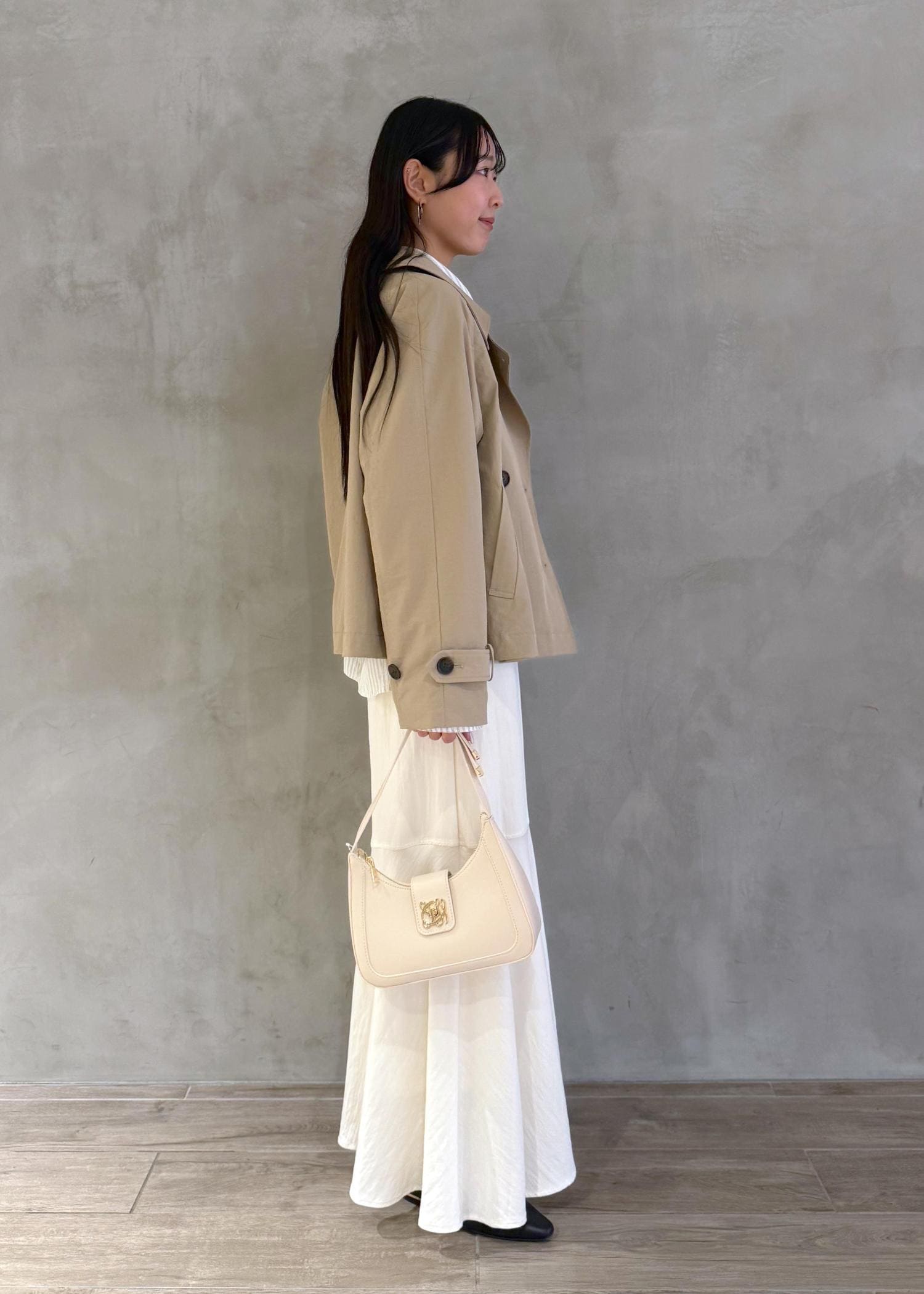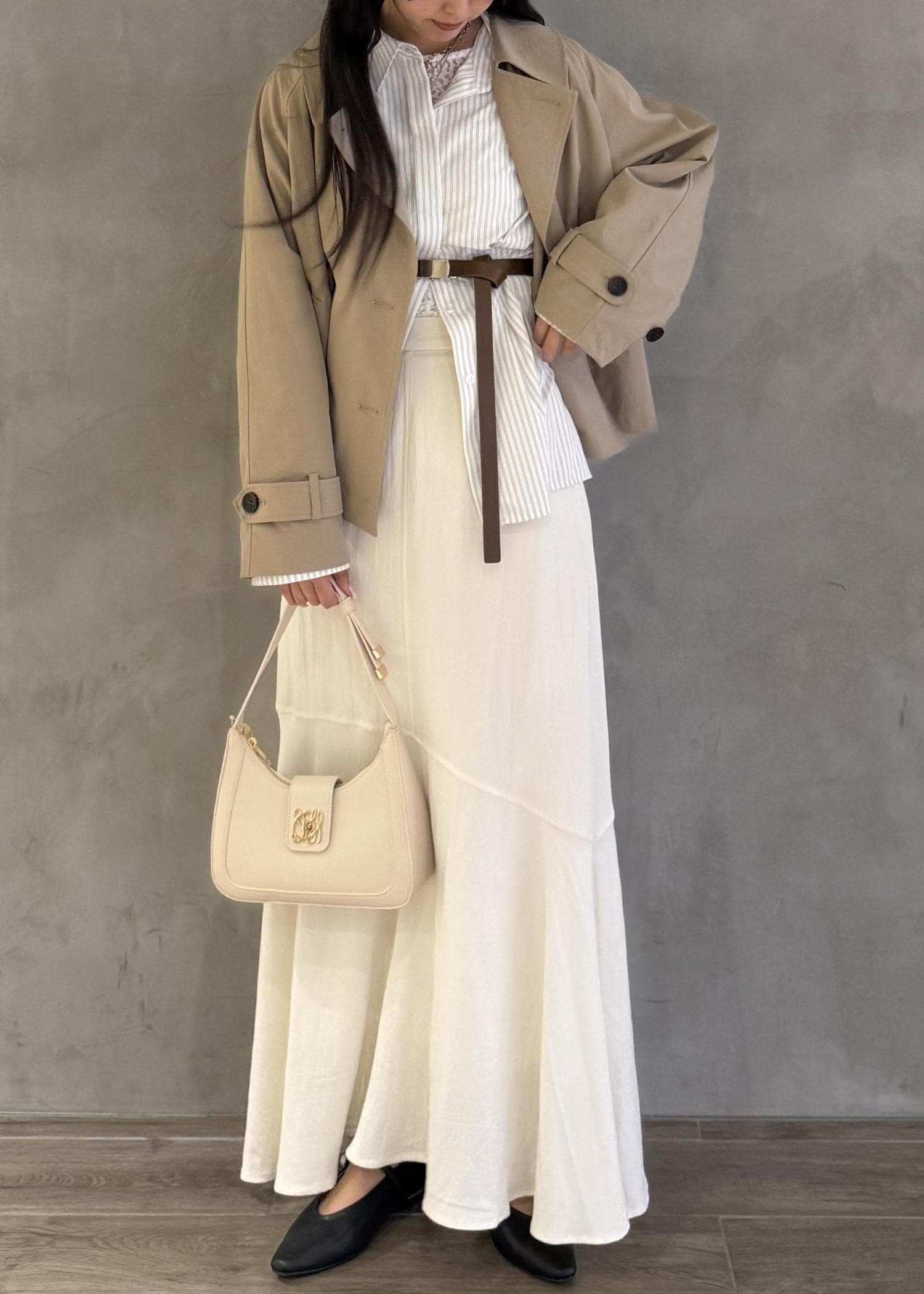淡色で揃えたキレイめコーデです