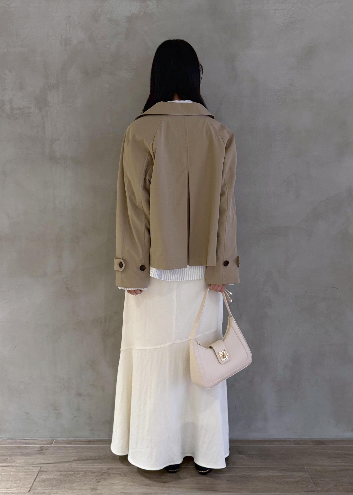 NEW!VISショートトレンチコート/UVケア・撥水・花粉ガードベージュ系 / F¥13,090レビューショート丈なのでバランスが取りやすいです。短すぎず長すぎないデザインで、どんなトップスにも合わせやすいです。軽いのでサラッと羽織りやすいです