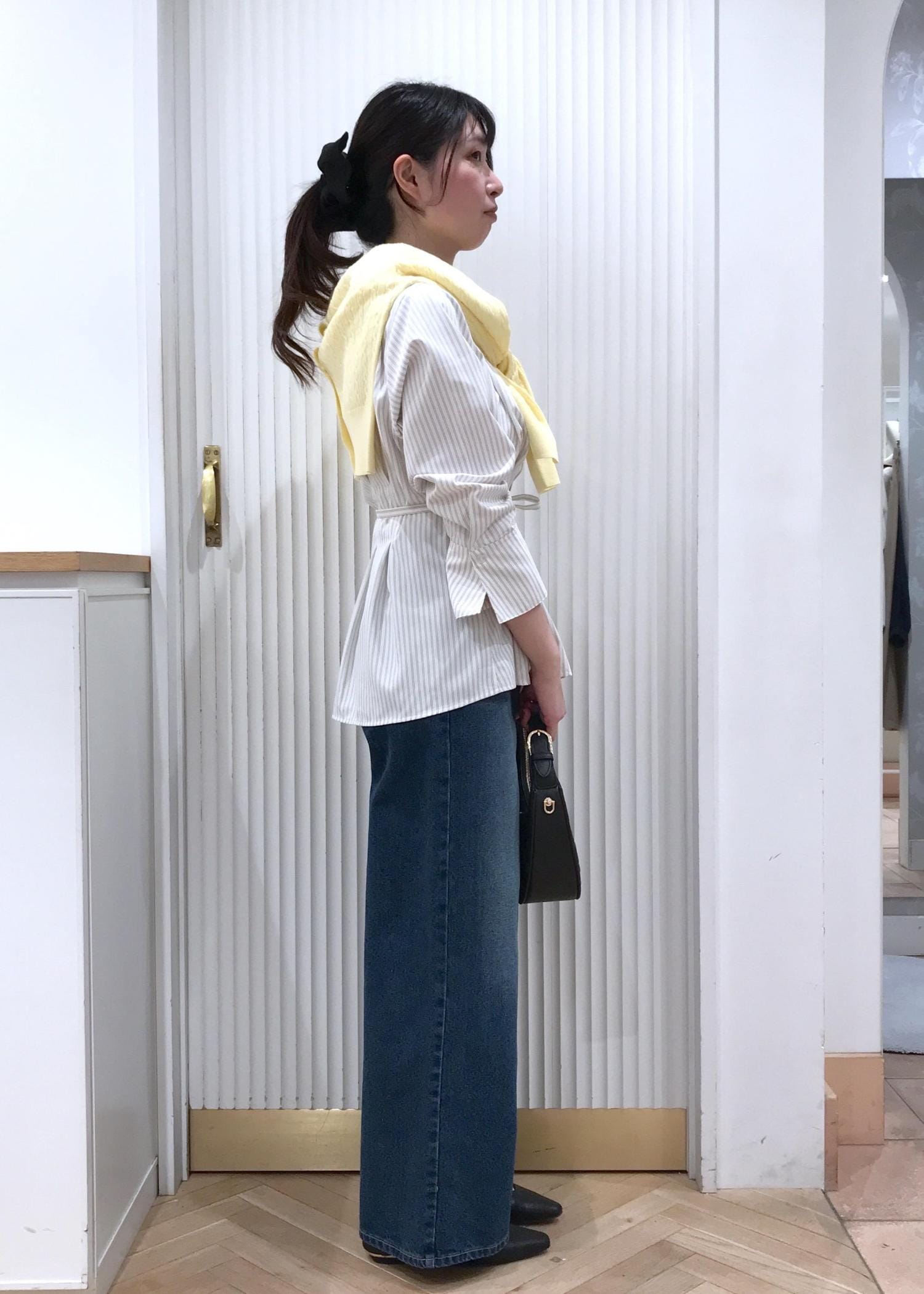 ウエスト部分はややゆったり目なので、華奢な方にはベルトで調整が必要です。
