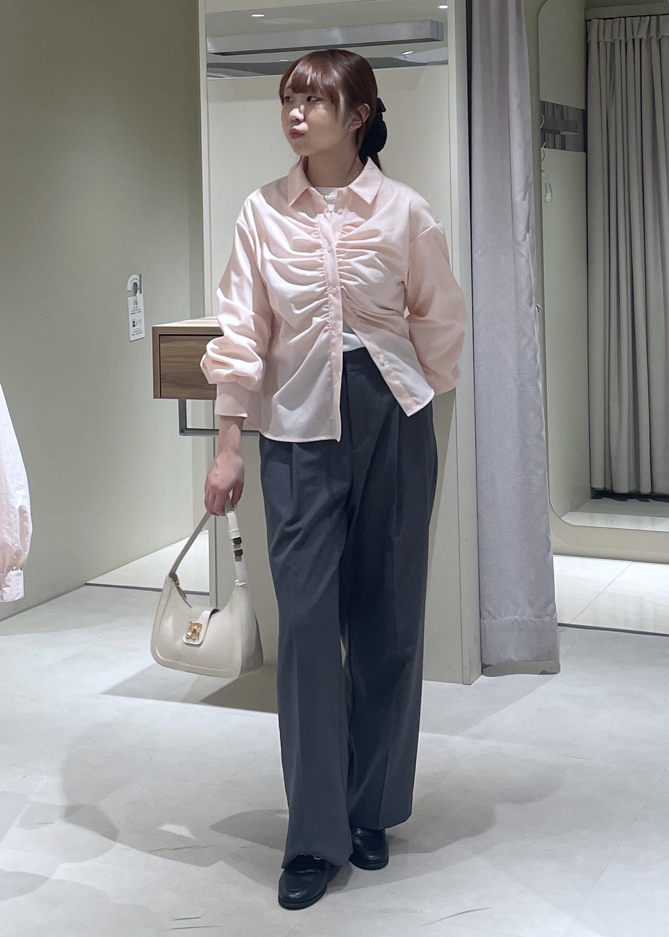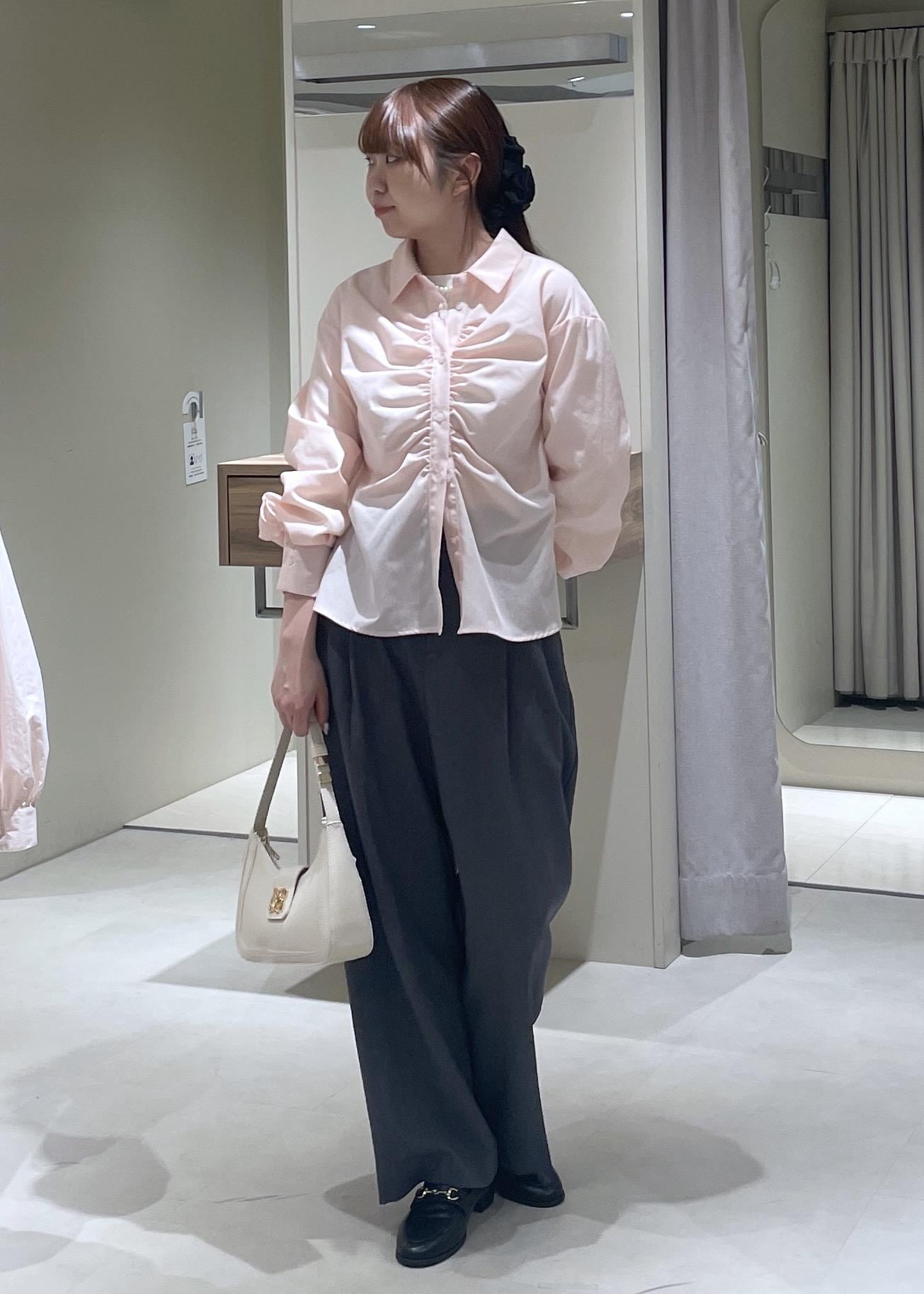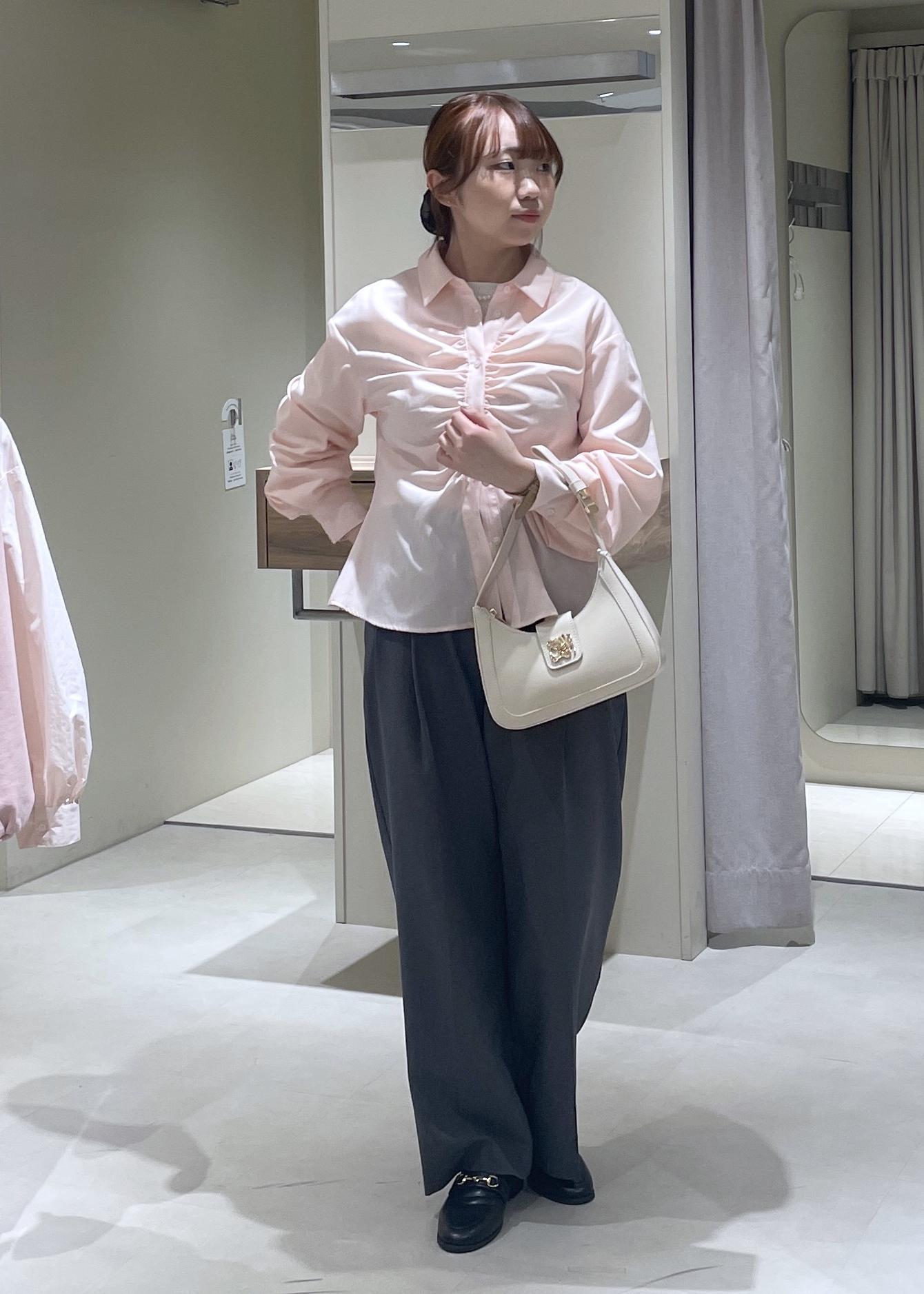 VISフロントギャザーシャツピンク系 / F¥4,391レビュー胸元に寄ったギャザーと、絞られたウエストでスタイルアップ効果抜群なシャツです。