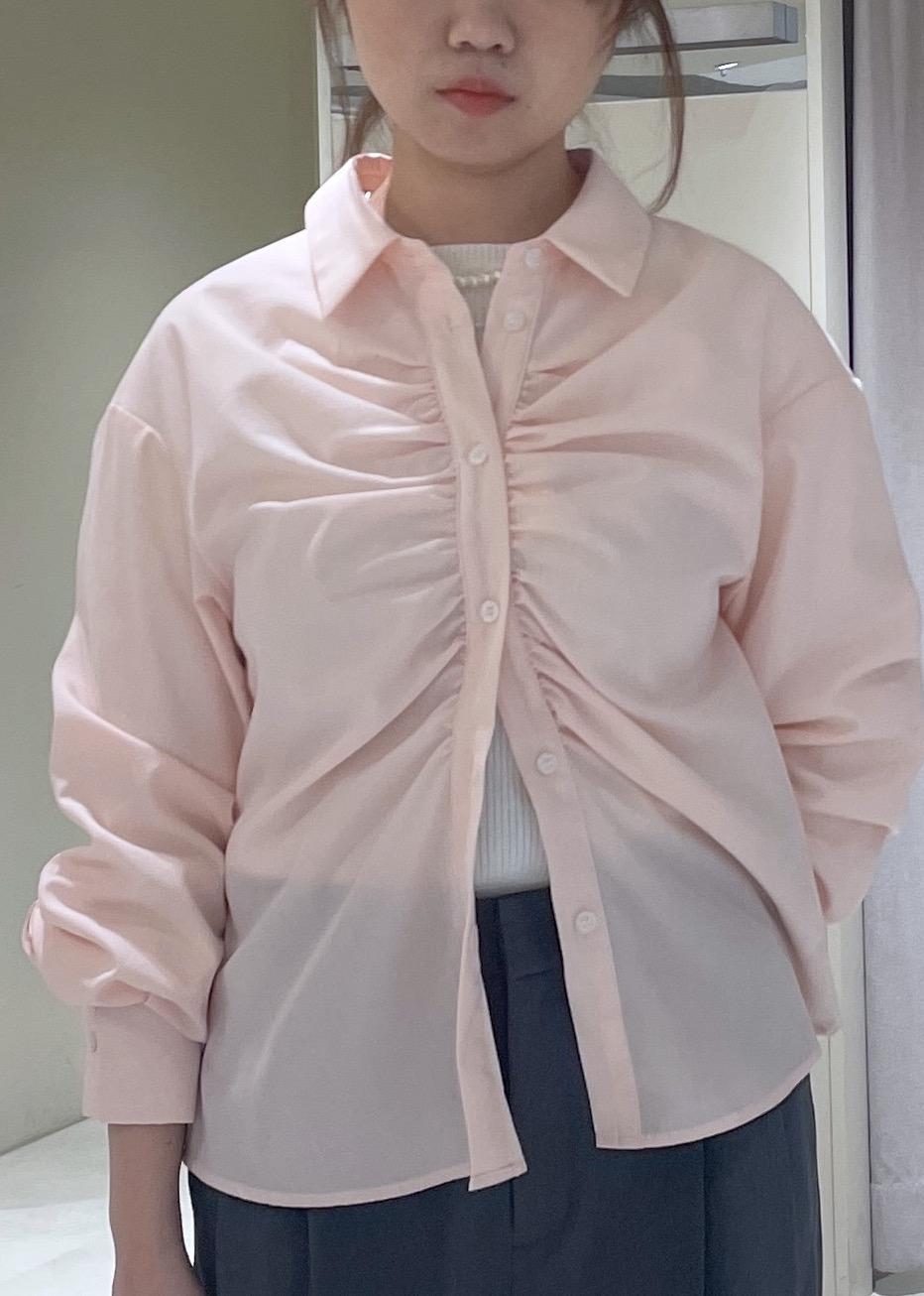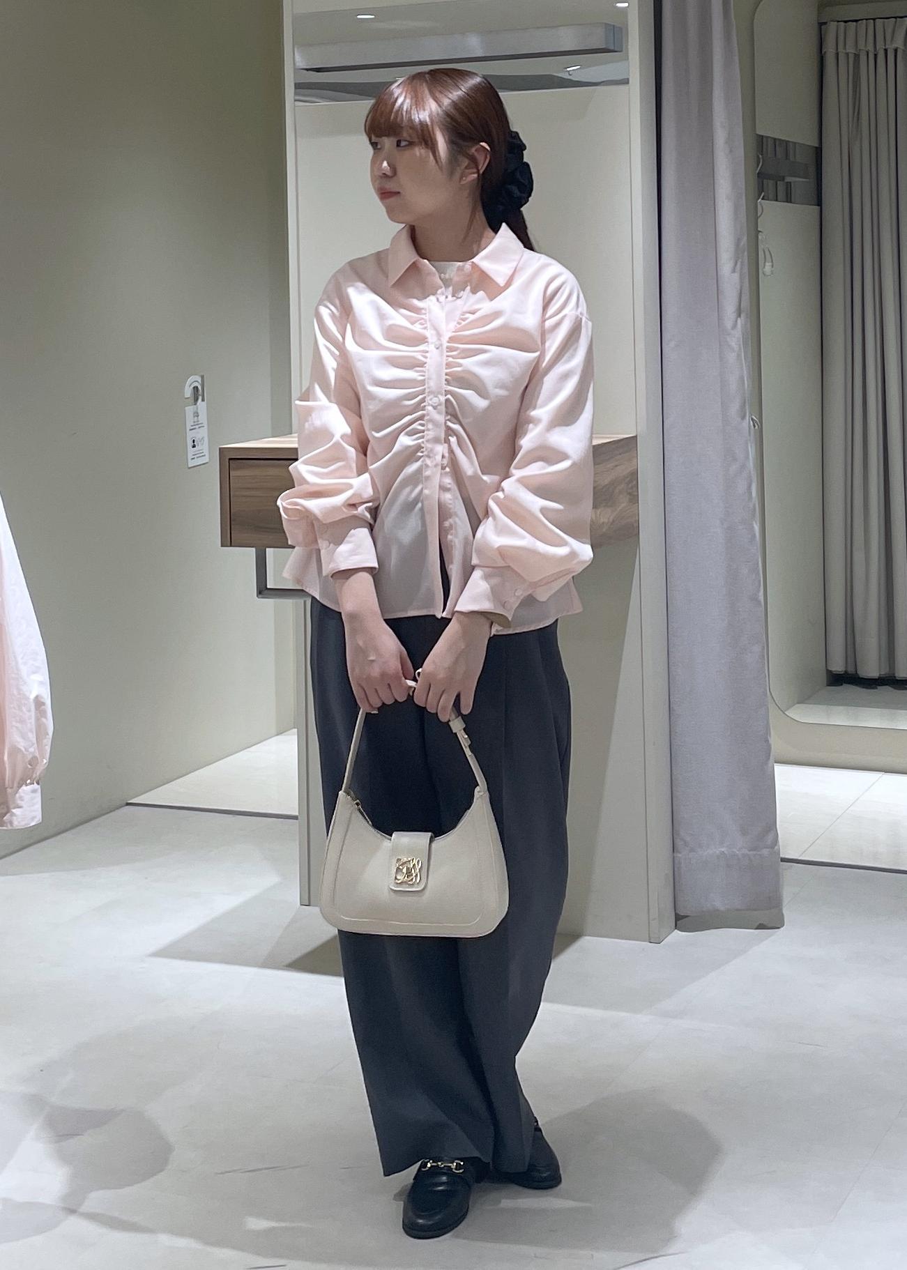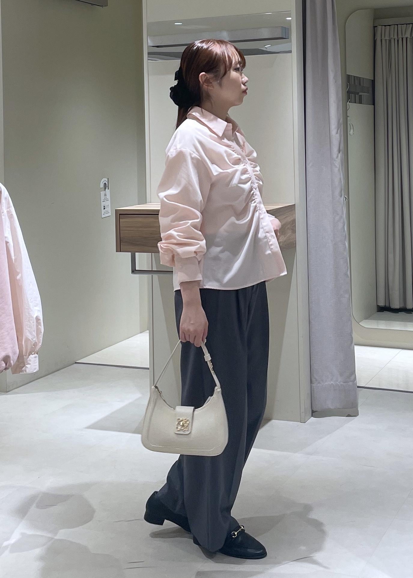 VISフロントギャザーシャツピンク系 / F¥4,391レビュー胸元に寄ったギャザーと、絞られたウエストでスタイルアップ効果抜群なシャツです。