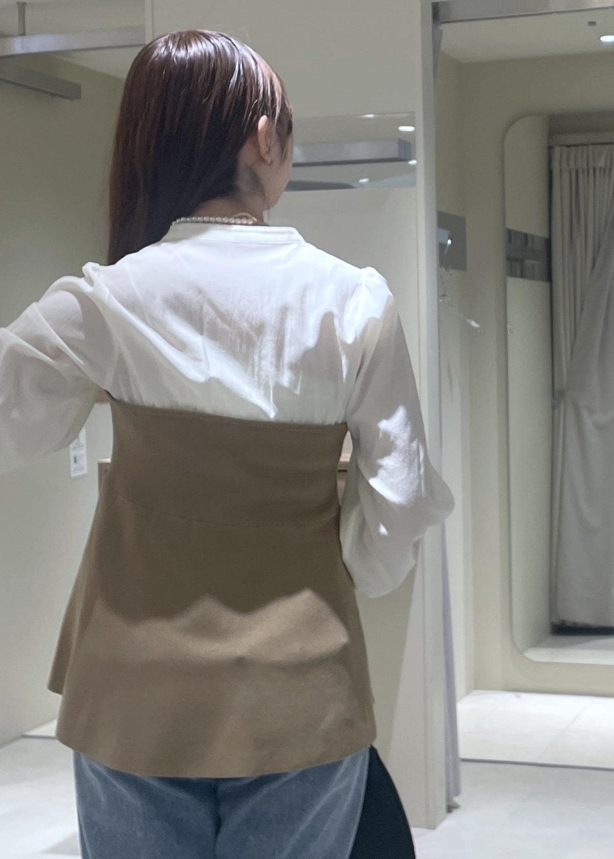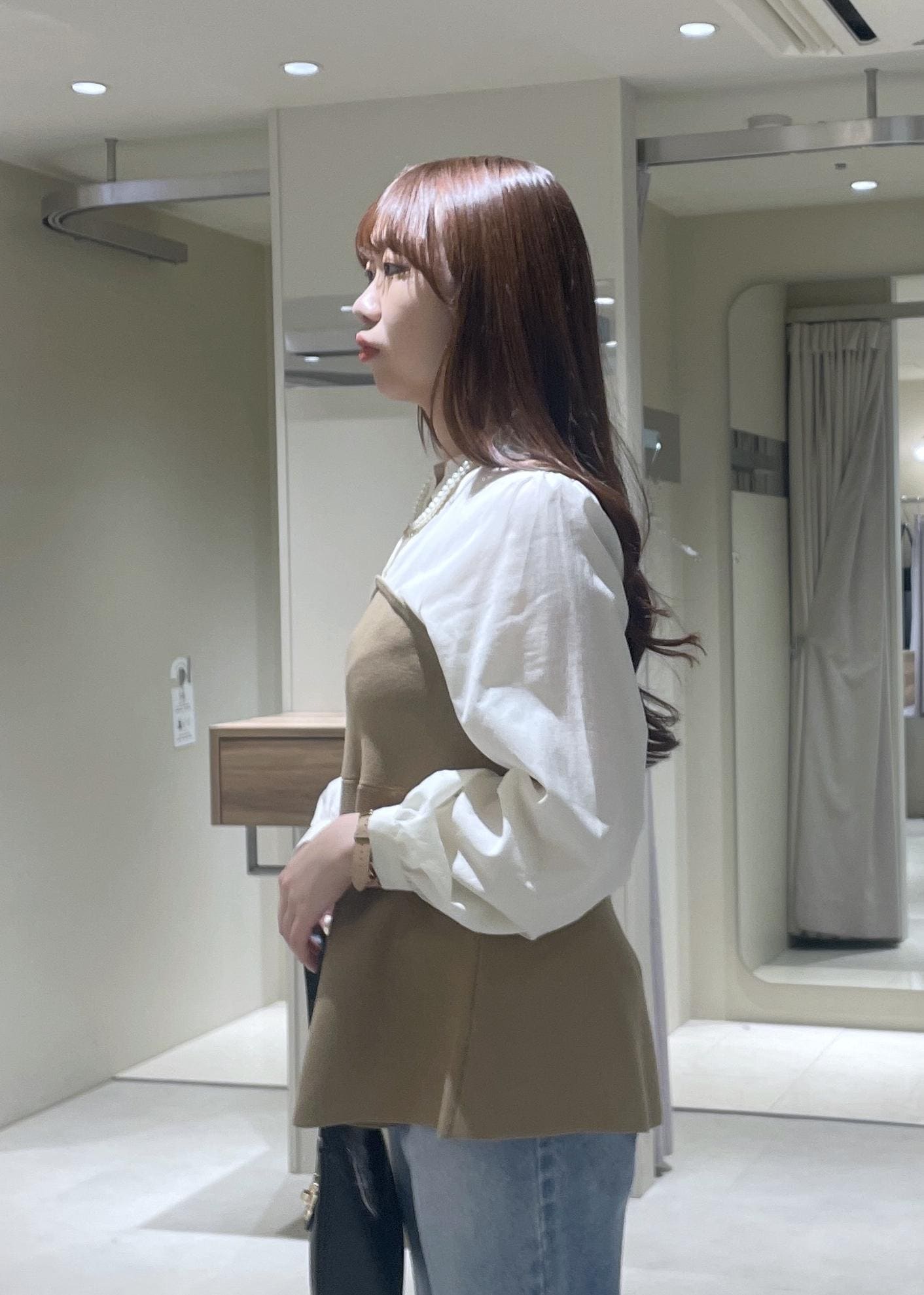 VISペプラムニットドッキングブラウスベージュ / F¥6,589レビューペプラムデザインのニットがドッキングされたトップスです。