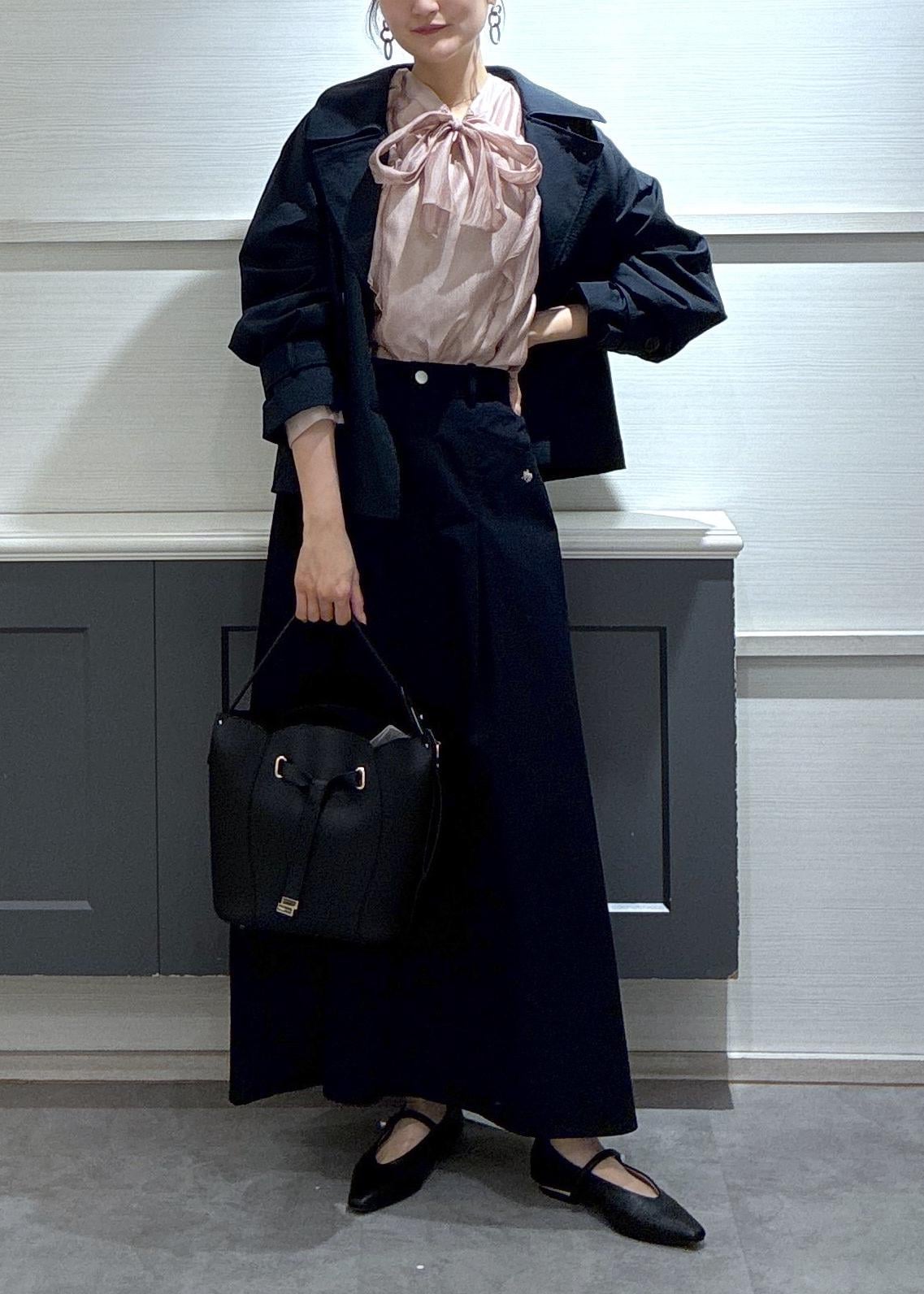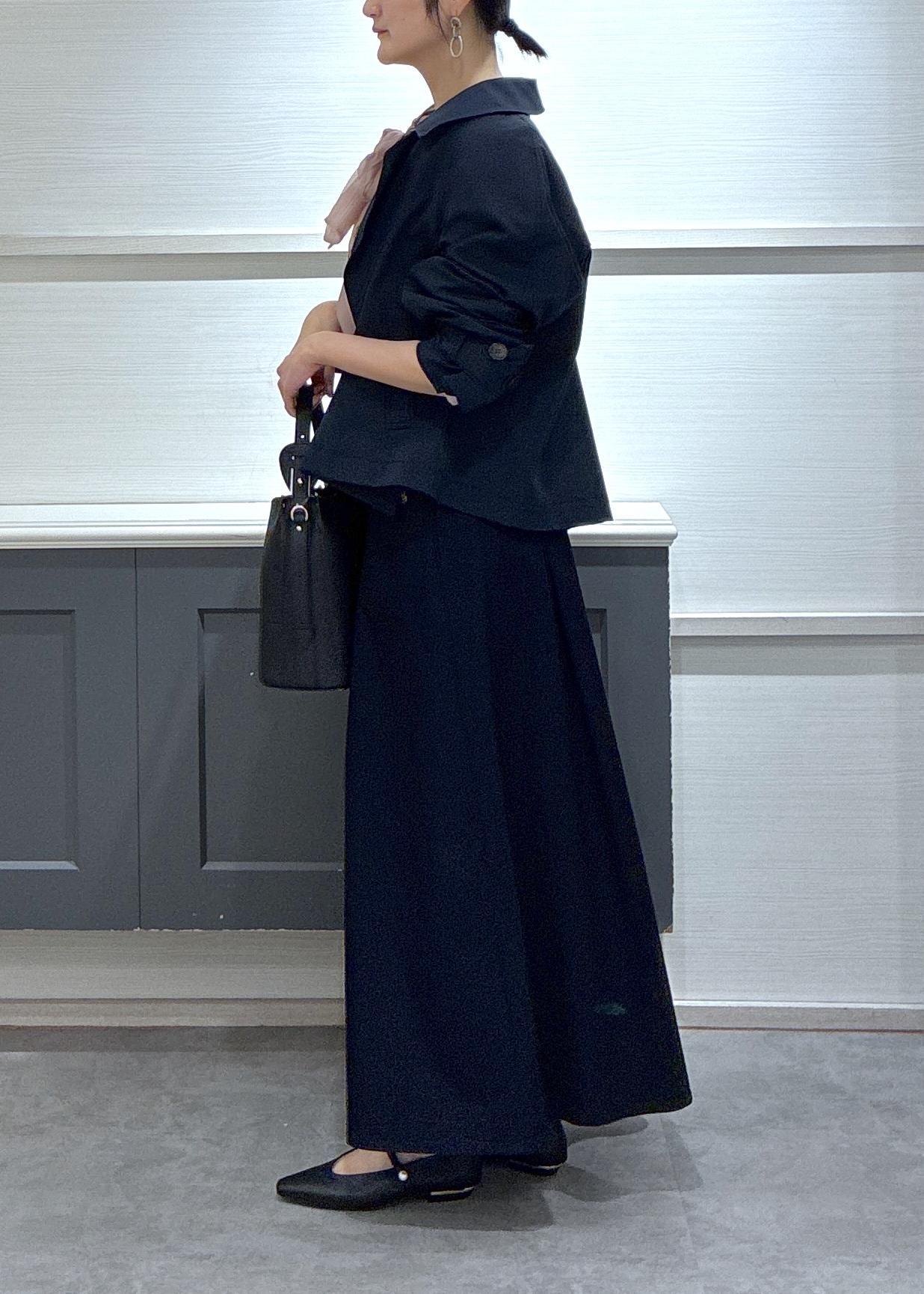 POLOのスカートをショートトレンチとカラーも合わせてセットアップ風にコーディネートしました♩