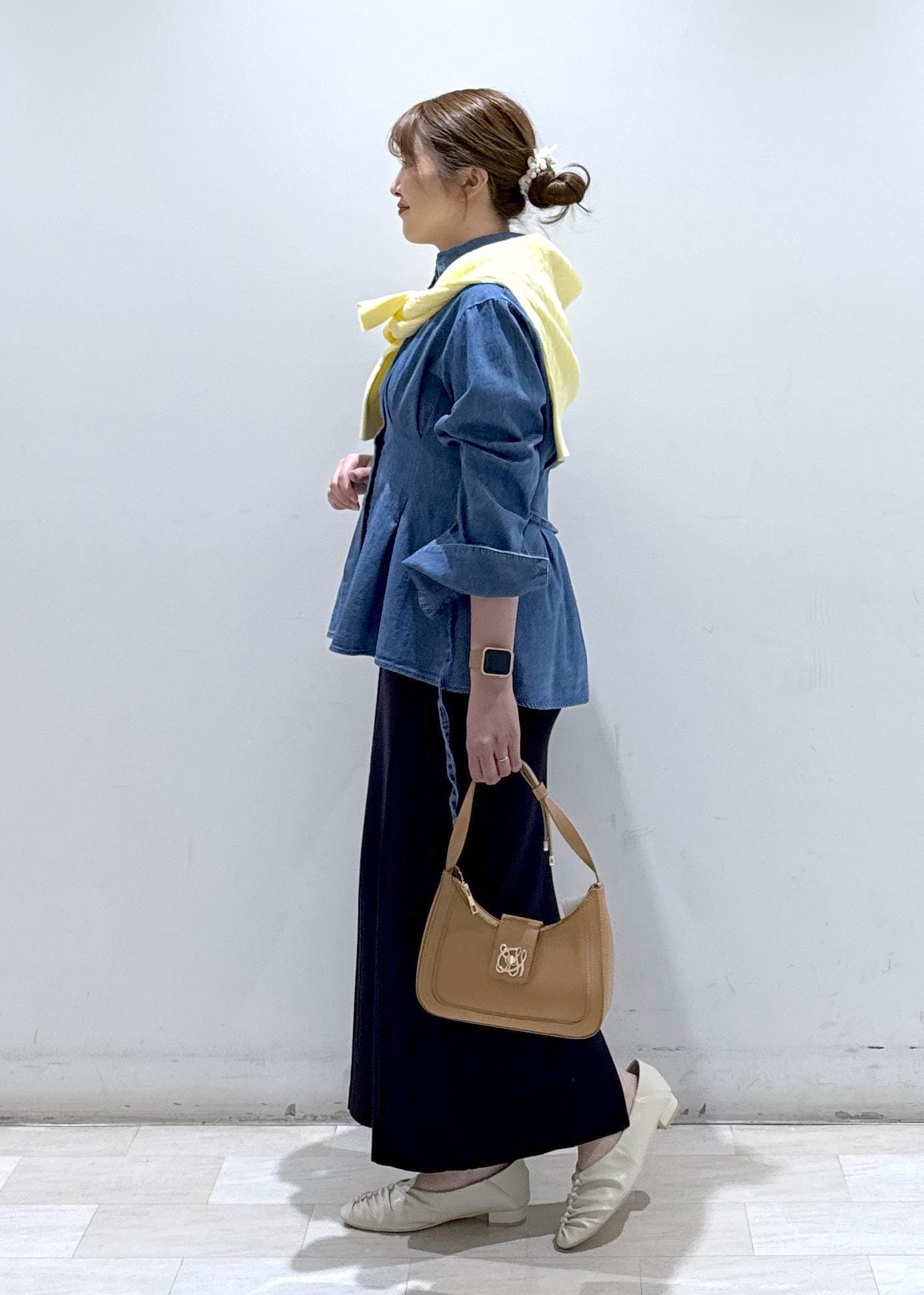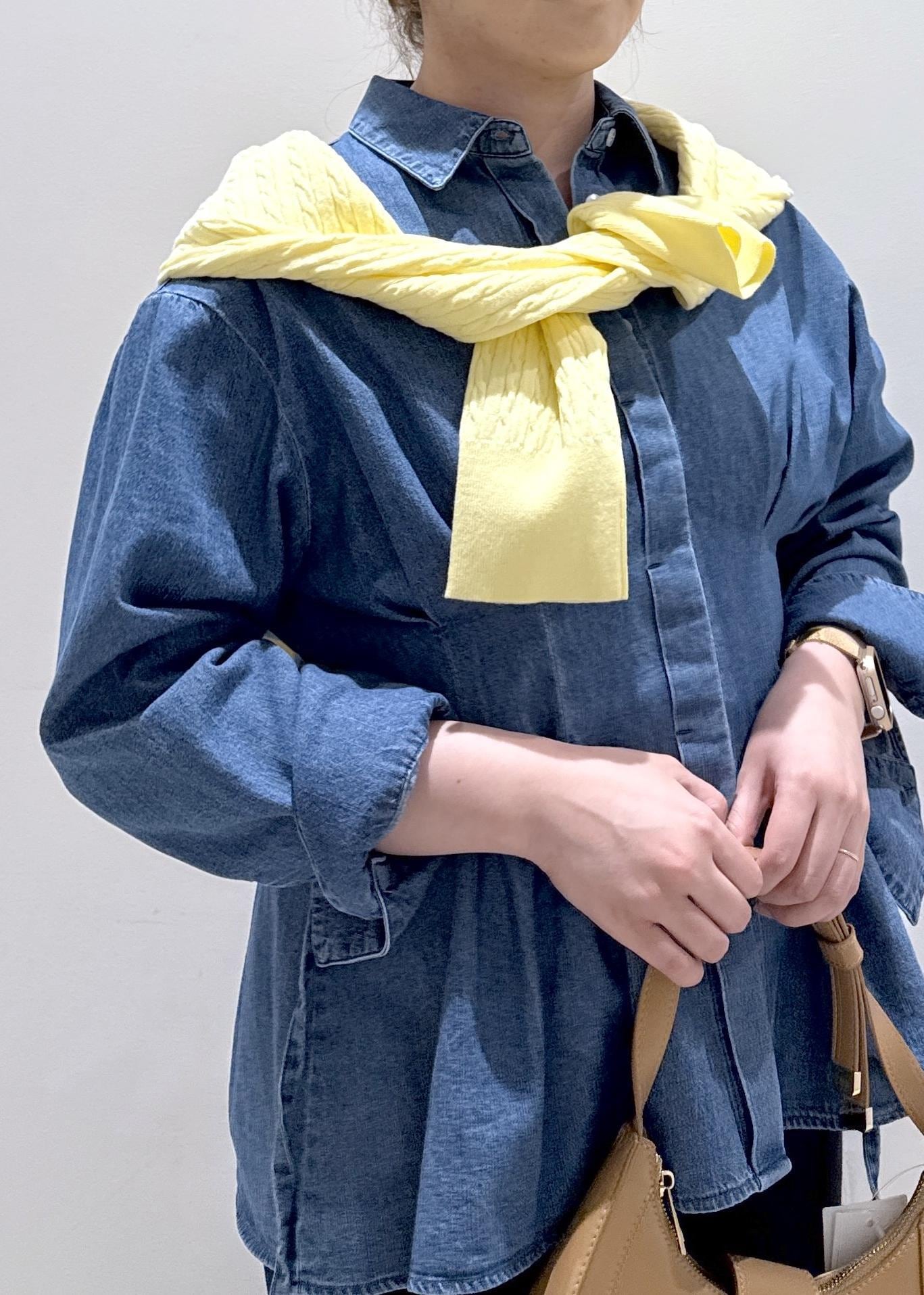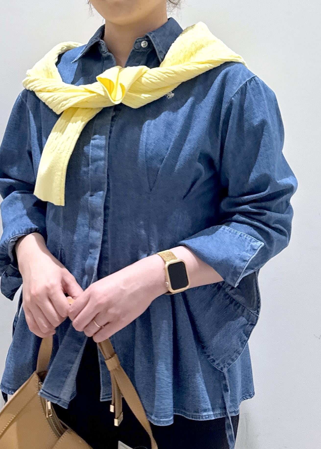 今回は新作で入荷しました、POLOとのコラボアイテムで柔らかいデニムのデザインをしたシャツにスカートと合わせて綺麗めカジュアルなコーディネートにしてみました。