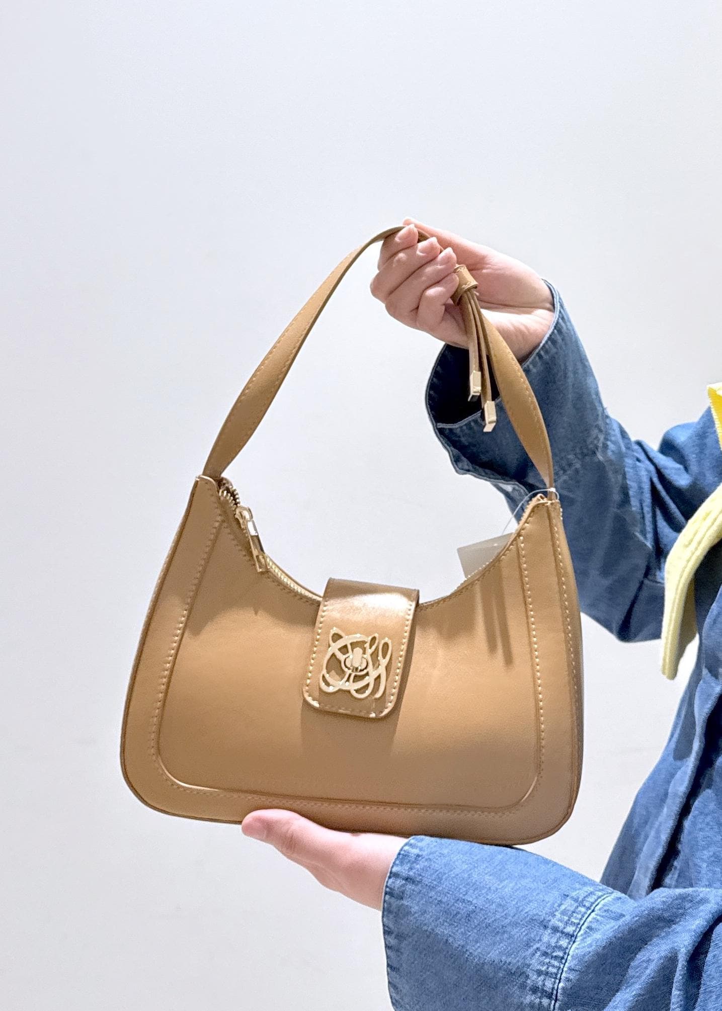 2BUY10%OFFVIS【180℃美人見え】ハンドルリボンワンショルダーバッグ/新色追加キャメル / F¥5,929レビュー三日月型の形をしたVISのオリジナルロゴ入りバッグです。小さなバッグですが、中身が折り畳み財布、ハンドタオル、携帯、リップやファンデーションの必要最低限の物が意外と入ります!コンパクトで綺麗めなデザインなので、私は結婚式などのパーティードレスの際に合わせて普段ブラックを使っています。