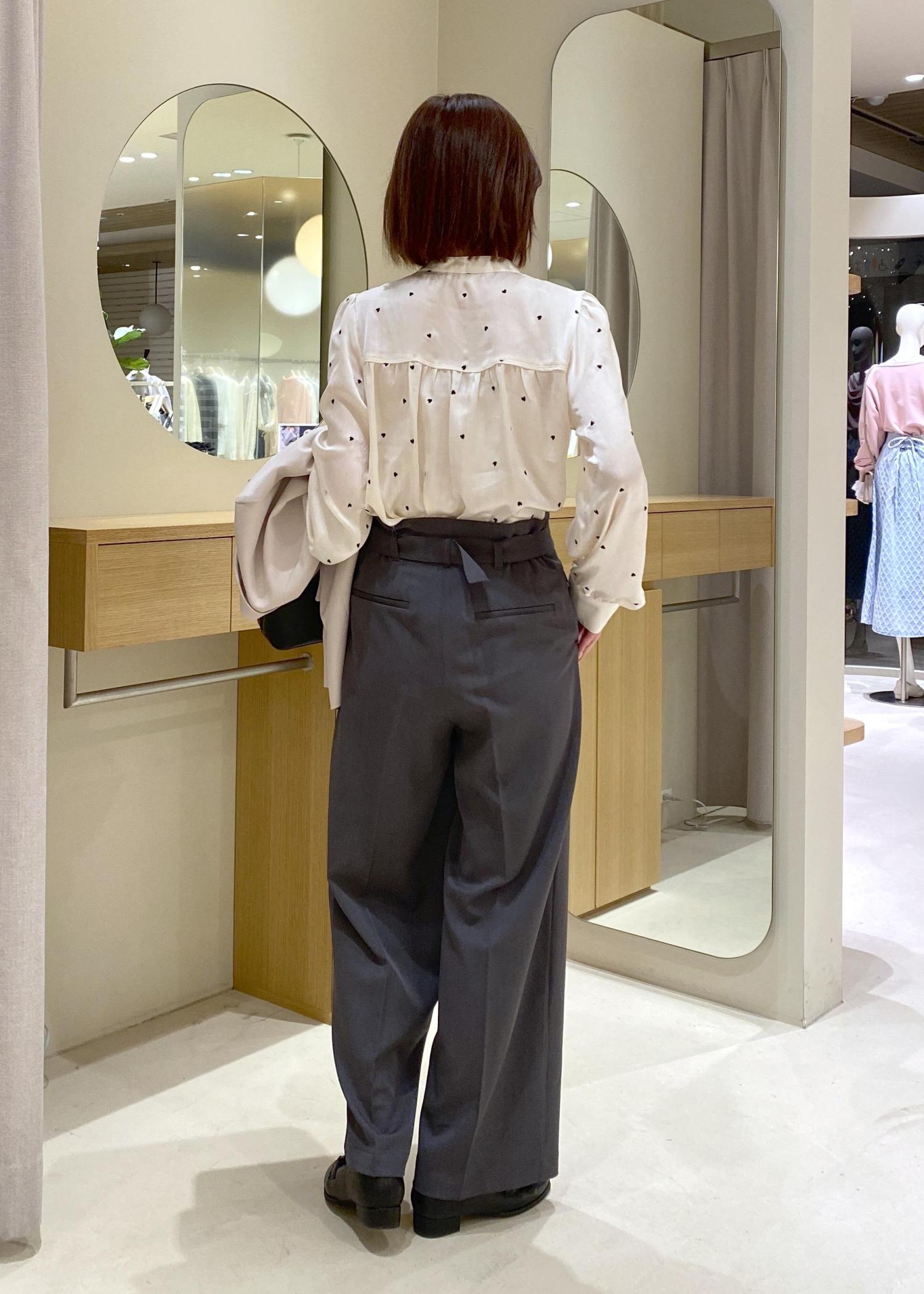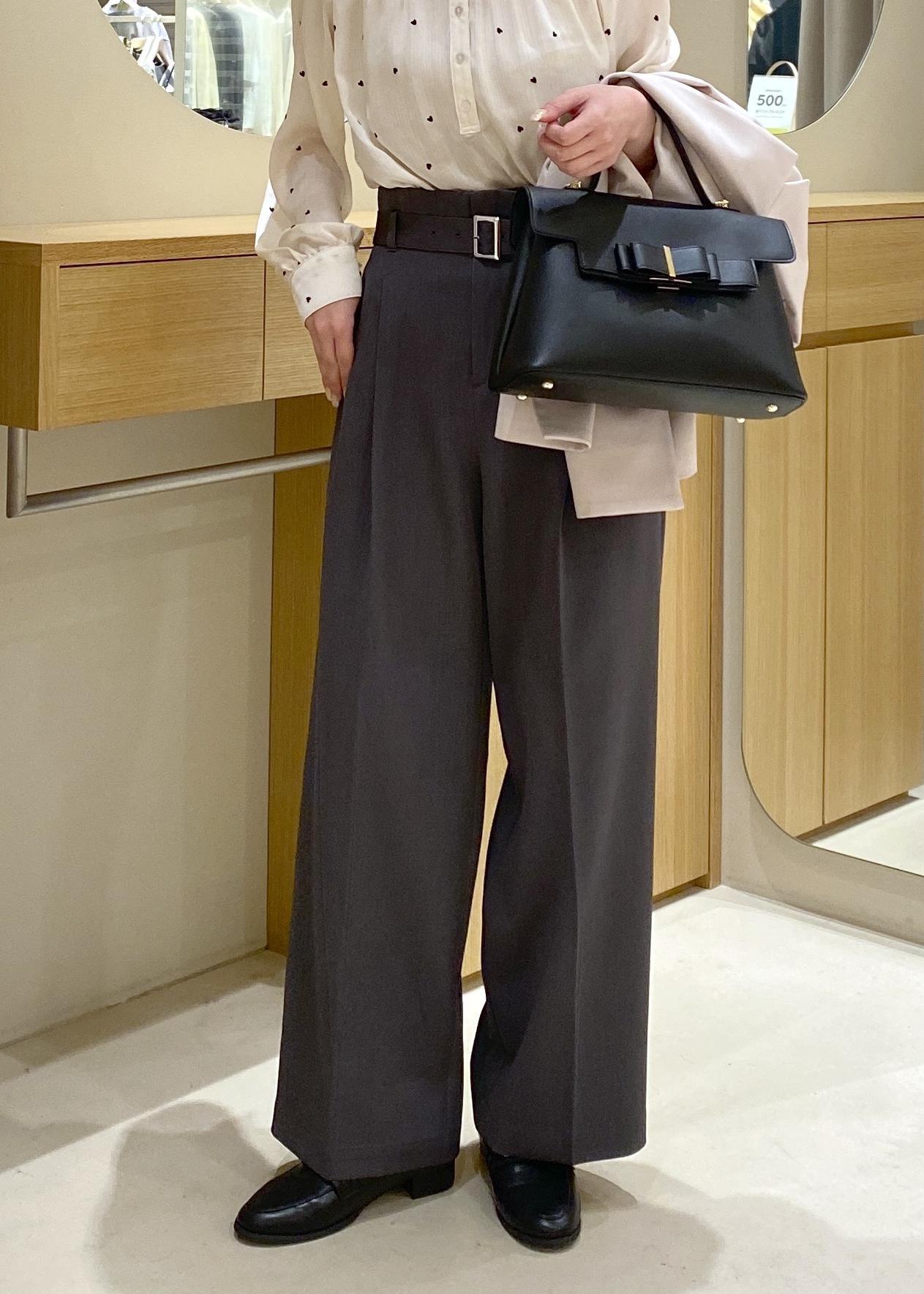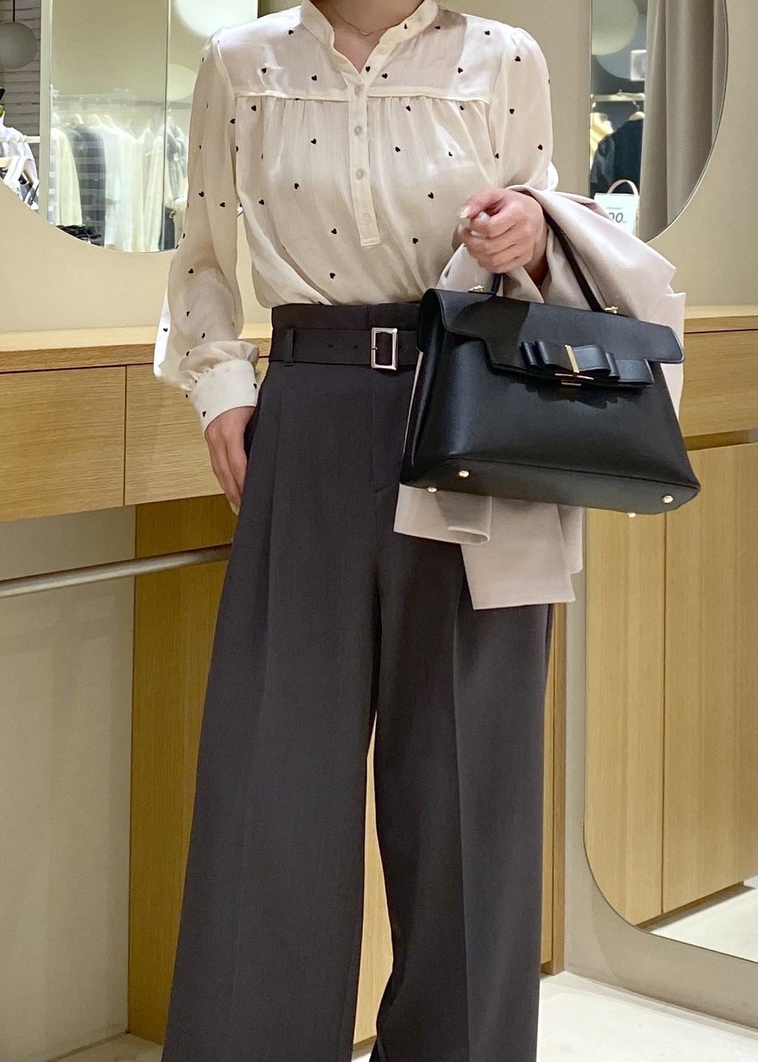 ハート柄ブラウス✖️ベルトパンツ オフィスカジュアル