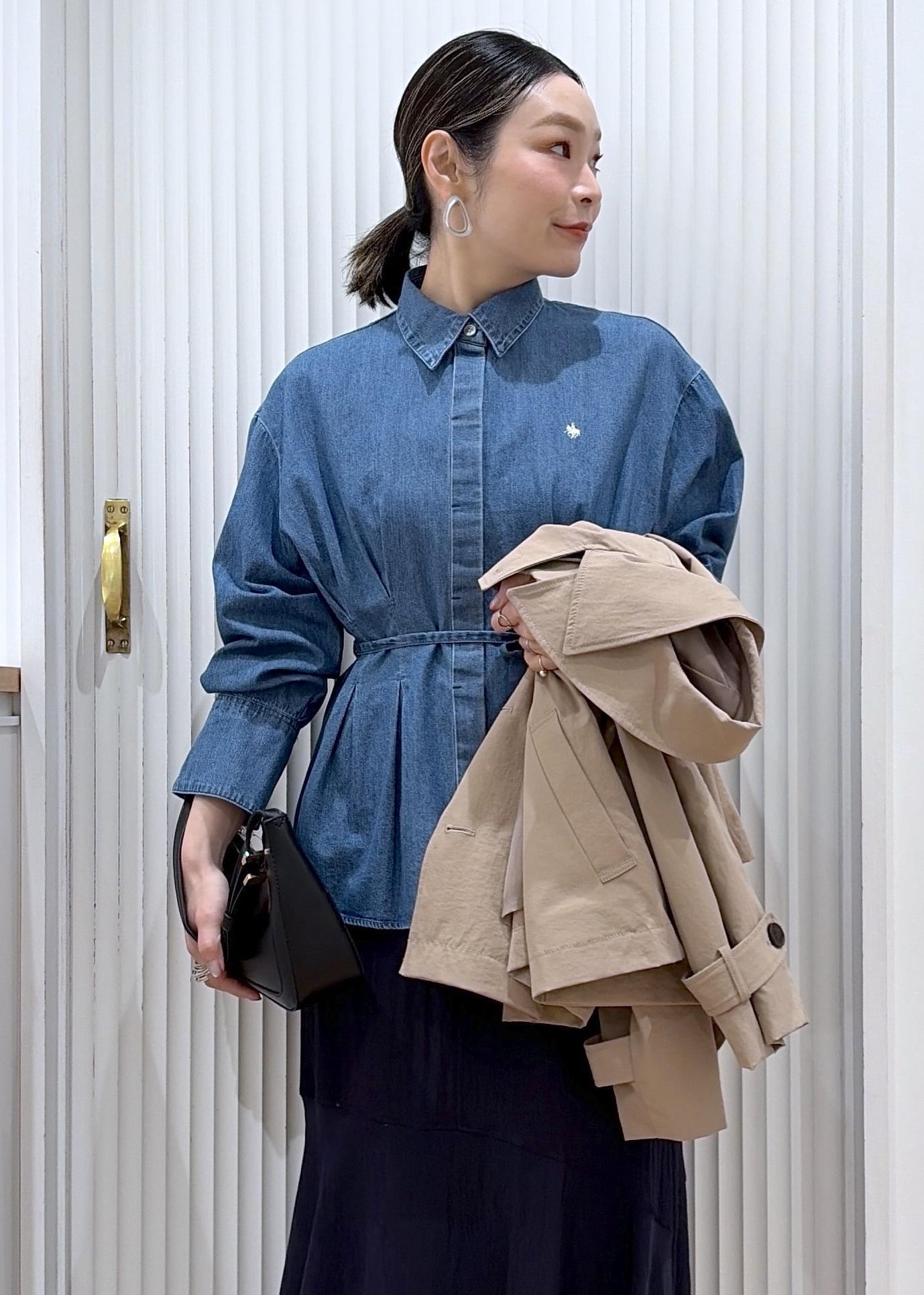 春トレンチ×デニムシャツ