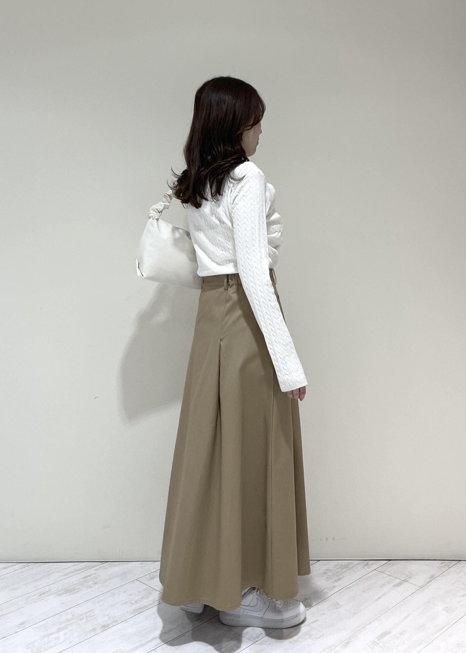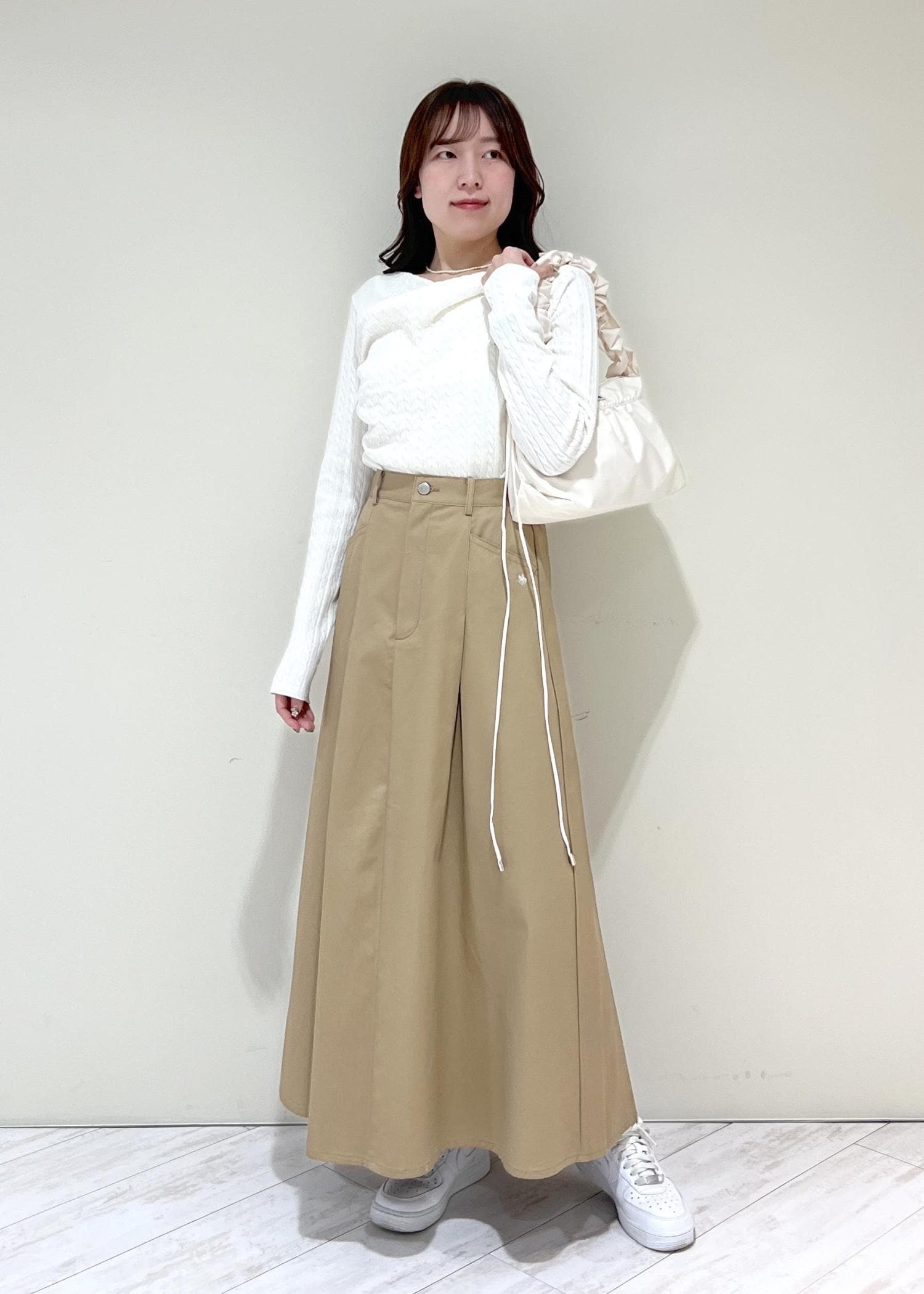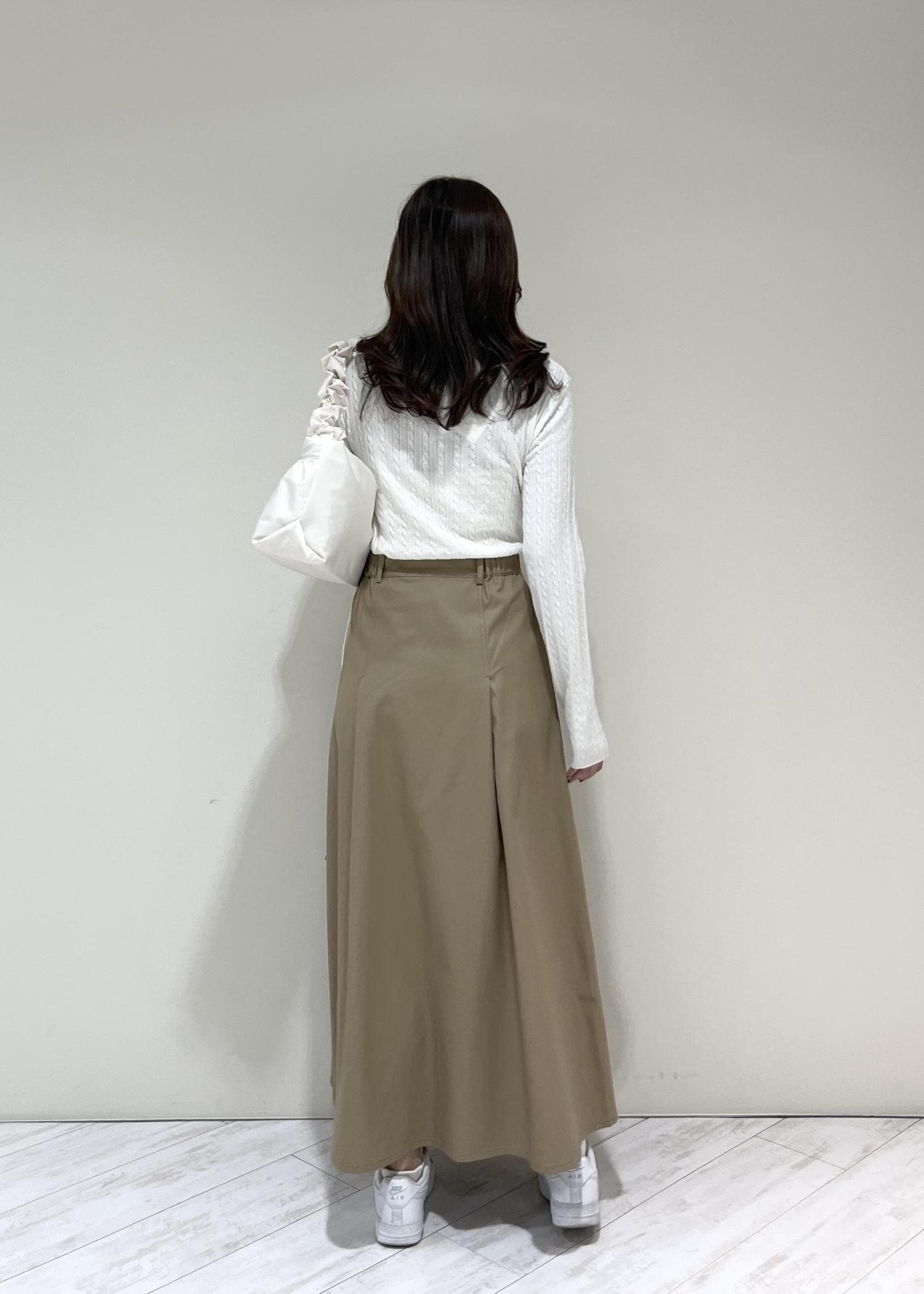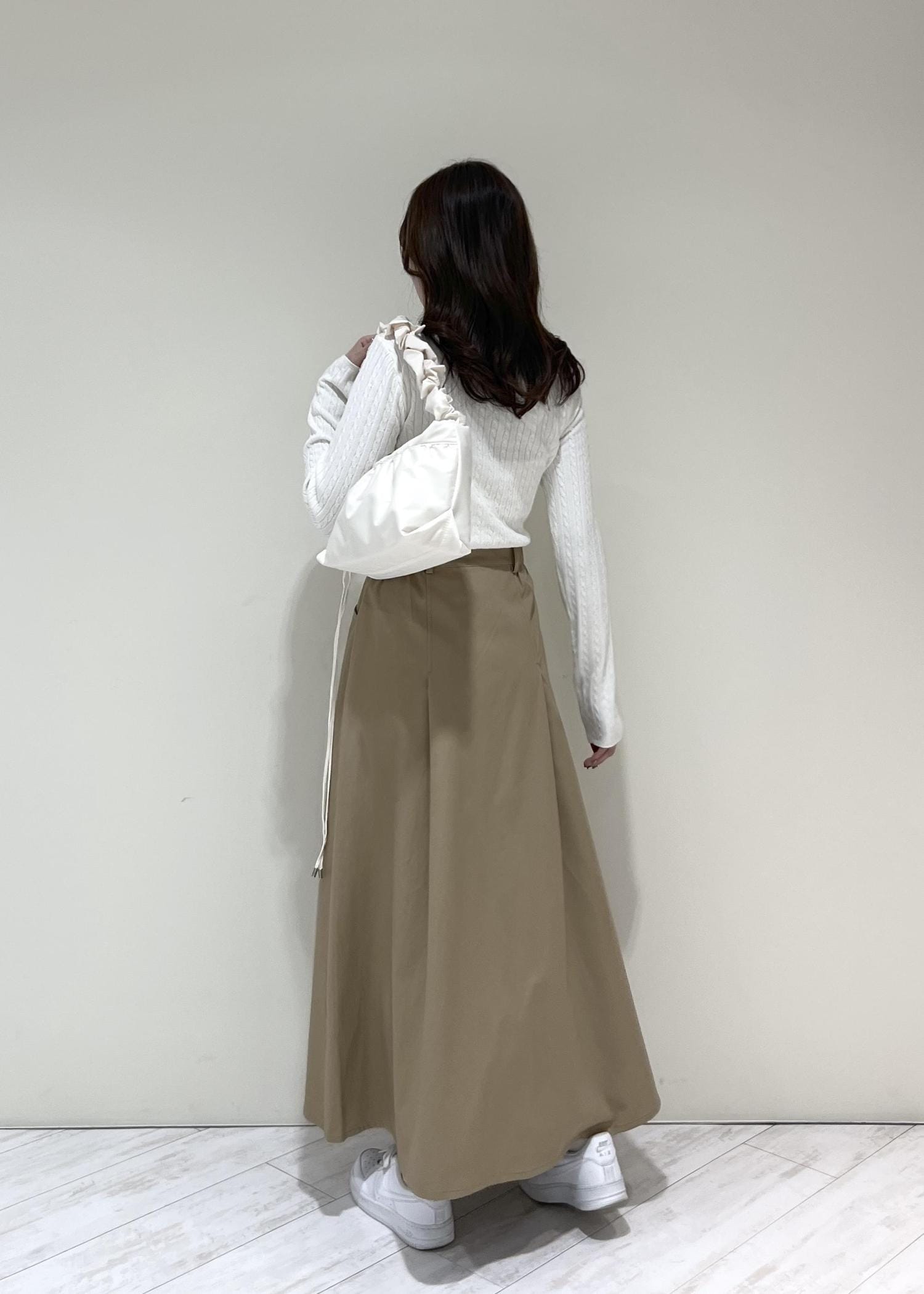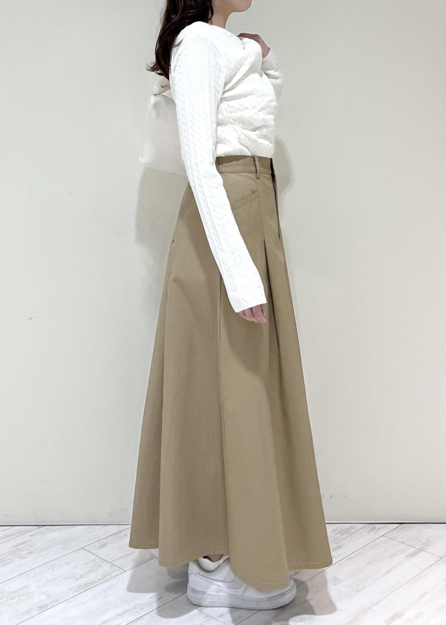 VIS【POLO BCS】VIS別注タックフレアスカートベージュ / M¥8,910レビューハリのある素材でかたちが綺麗です!フレアなので気になる腰回りや太ももをカバーしてくれます◎ウエスト部分はゴムが入っていて着心地も良かったです。