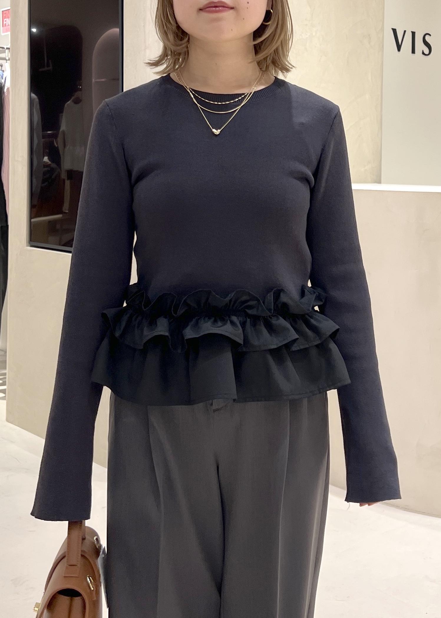 VIS裾フリルティアードドッキングニットチャコール / F¥5,929レビュー一枚で可愛いを叶えるトップスです!