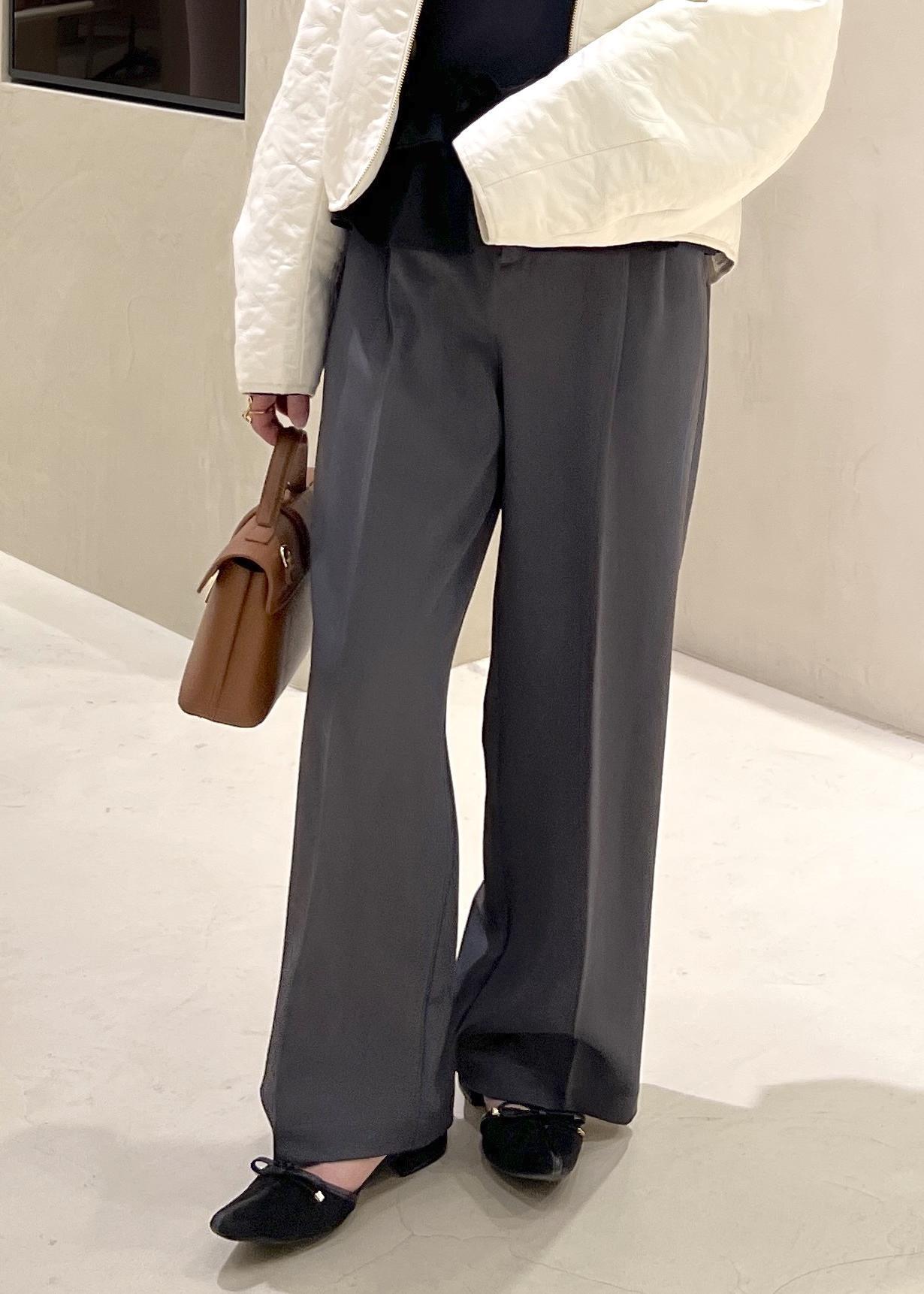 VISベルトディティールパンツ/防シワ・イージーケアチャコール / S¥6,589レビューサラッとした質感で、2タックが脚をスラッと長く見せてくれる優秀パンツです。