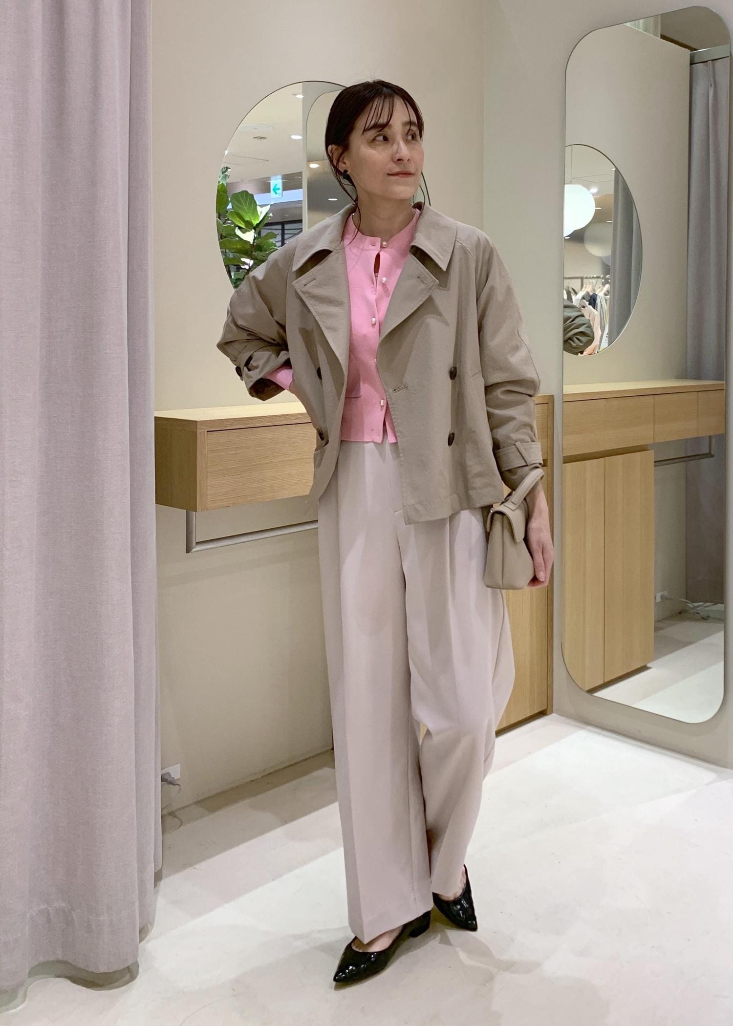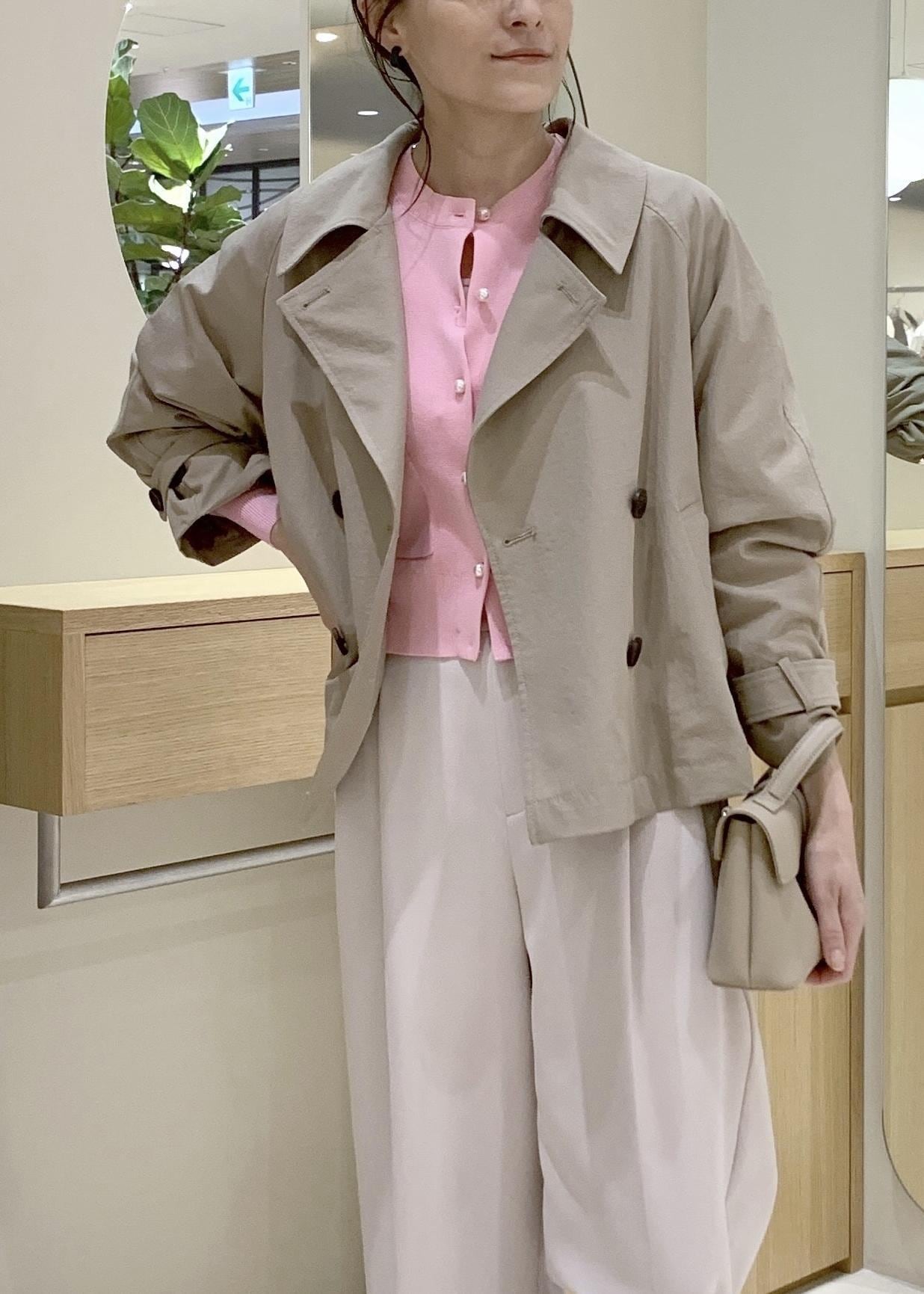 従来のトレンチほどの堅苦しさがないので、カジュアルコーデもしやすいです。 -