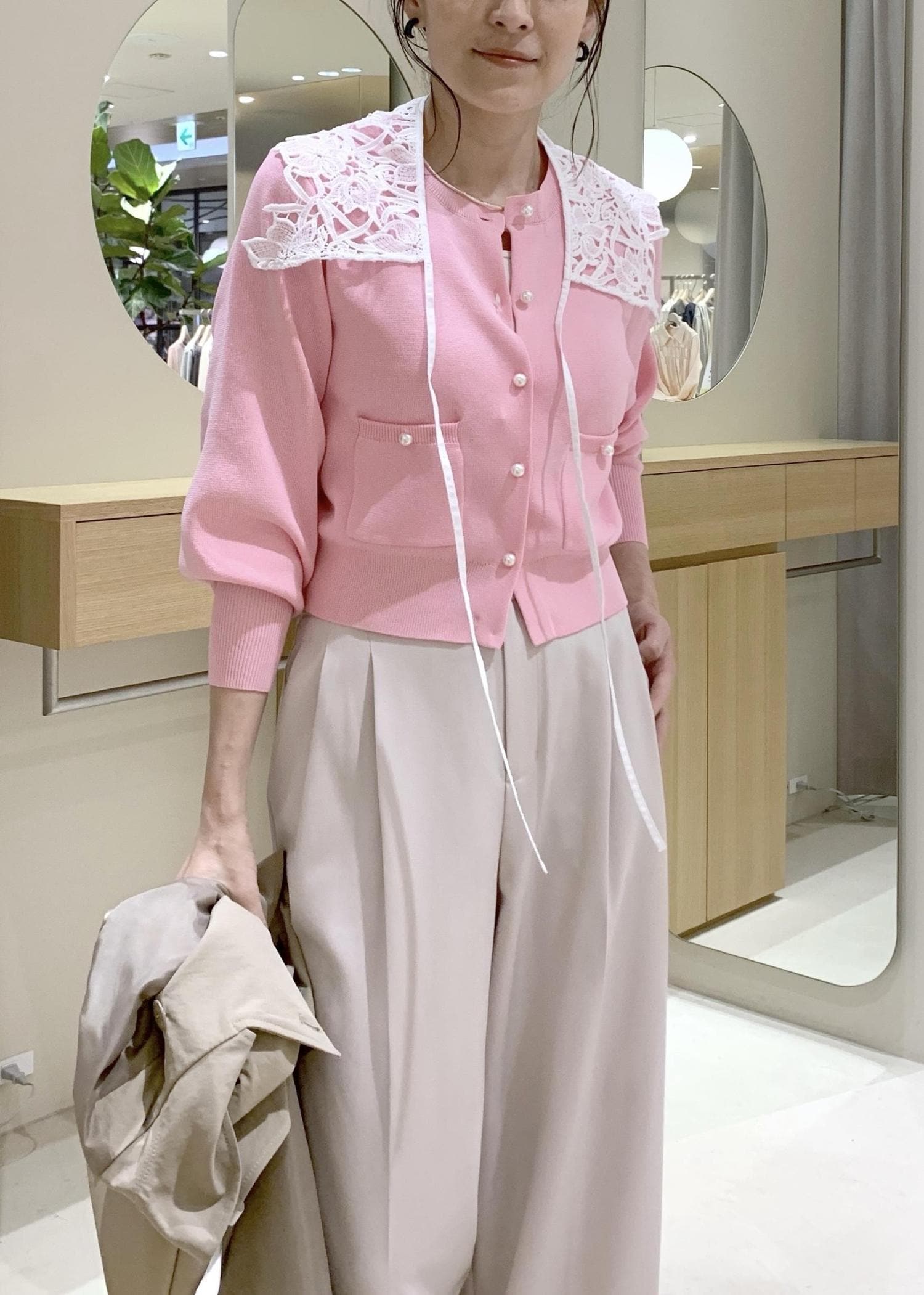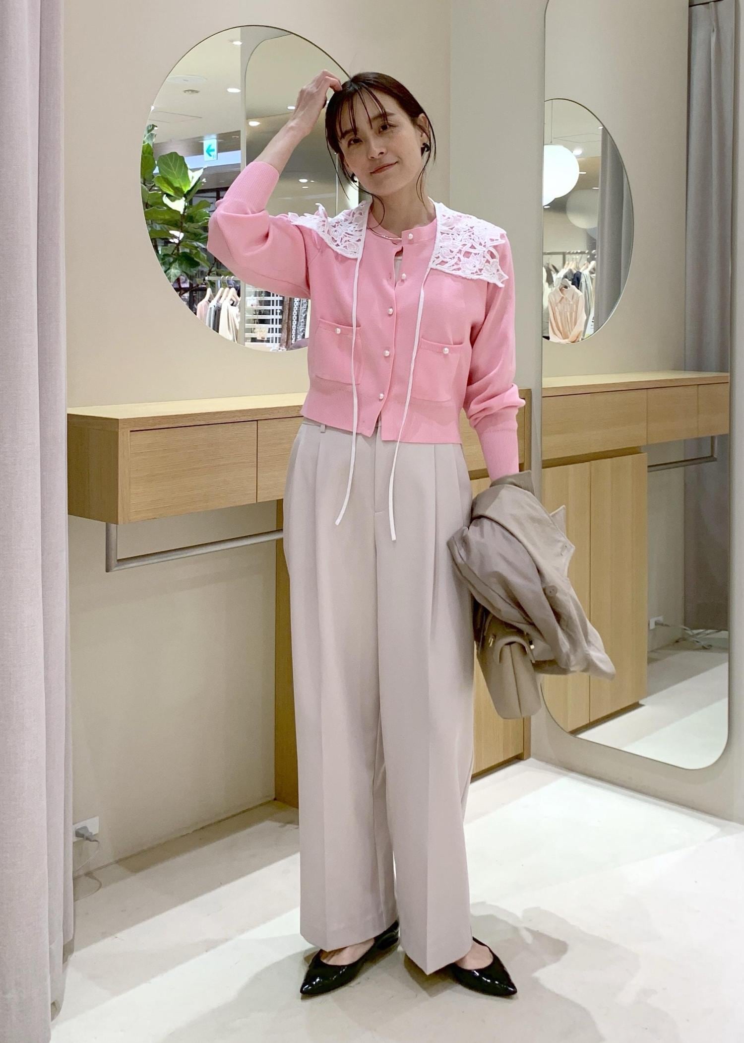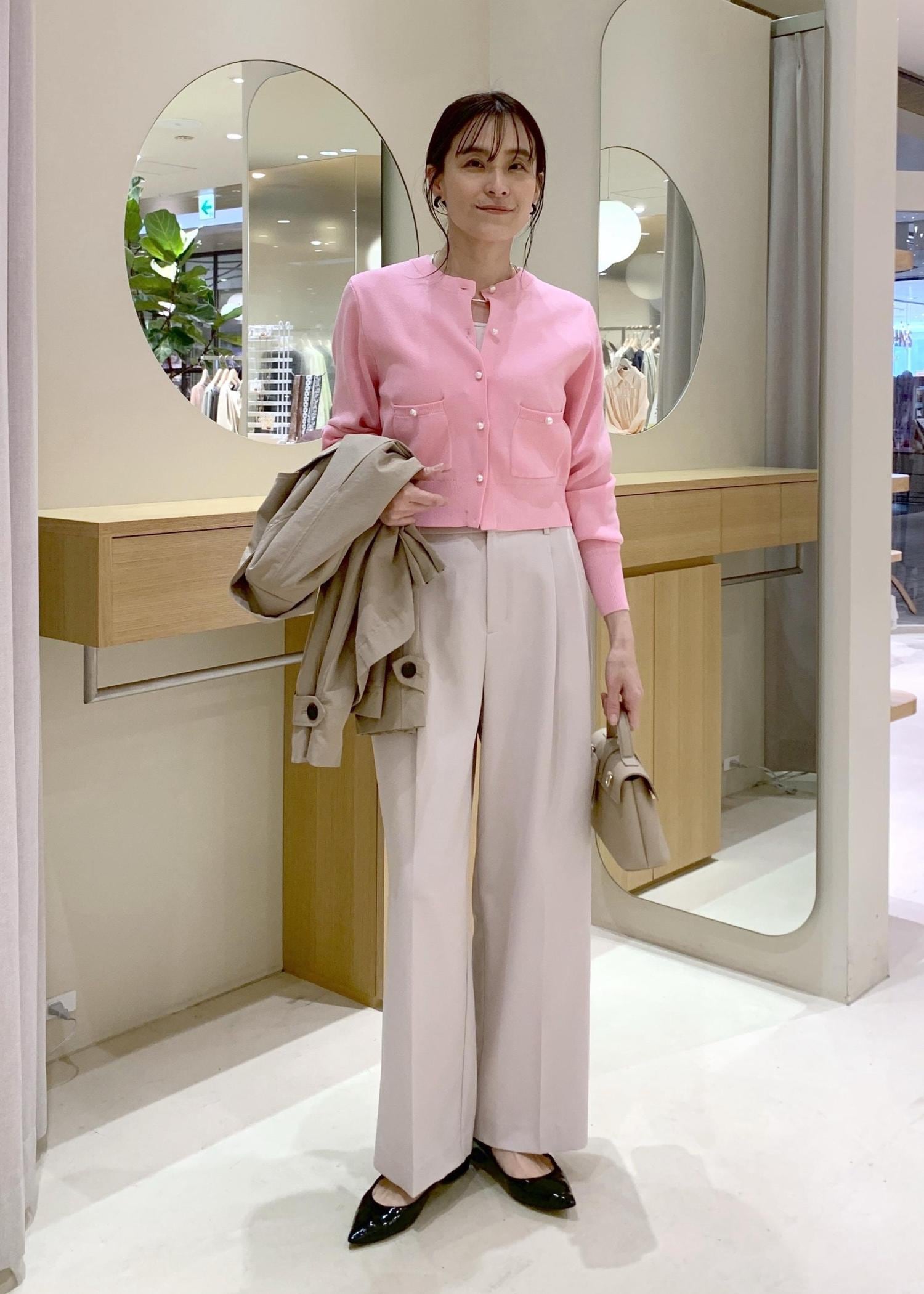 VISパールボタンカーディガンピンク / F¥6,589レビューシャリ感のあるニットで、春先使いやすい肉厚感です。コンパクト丈な所がボトムスを選ばず使えますよ。