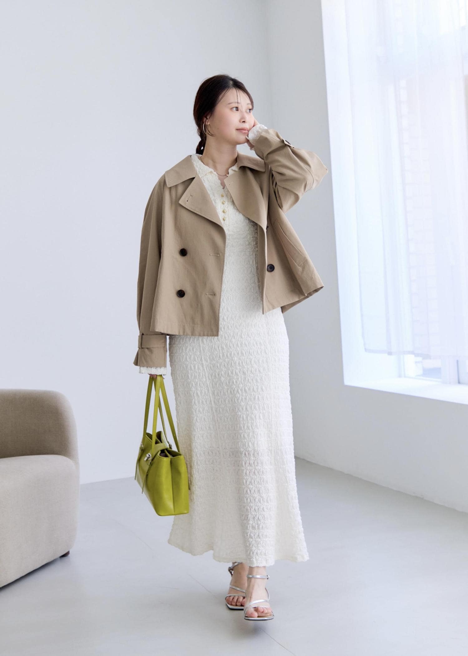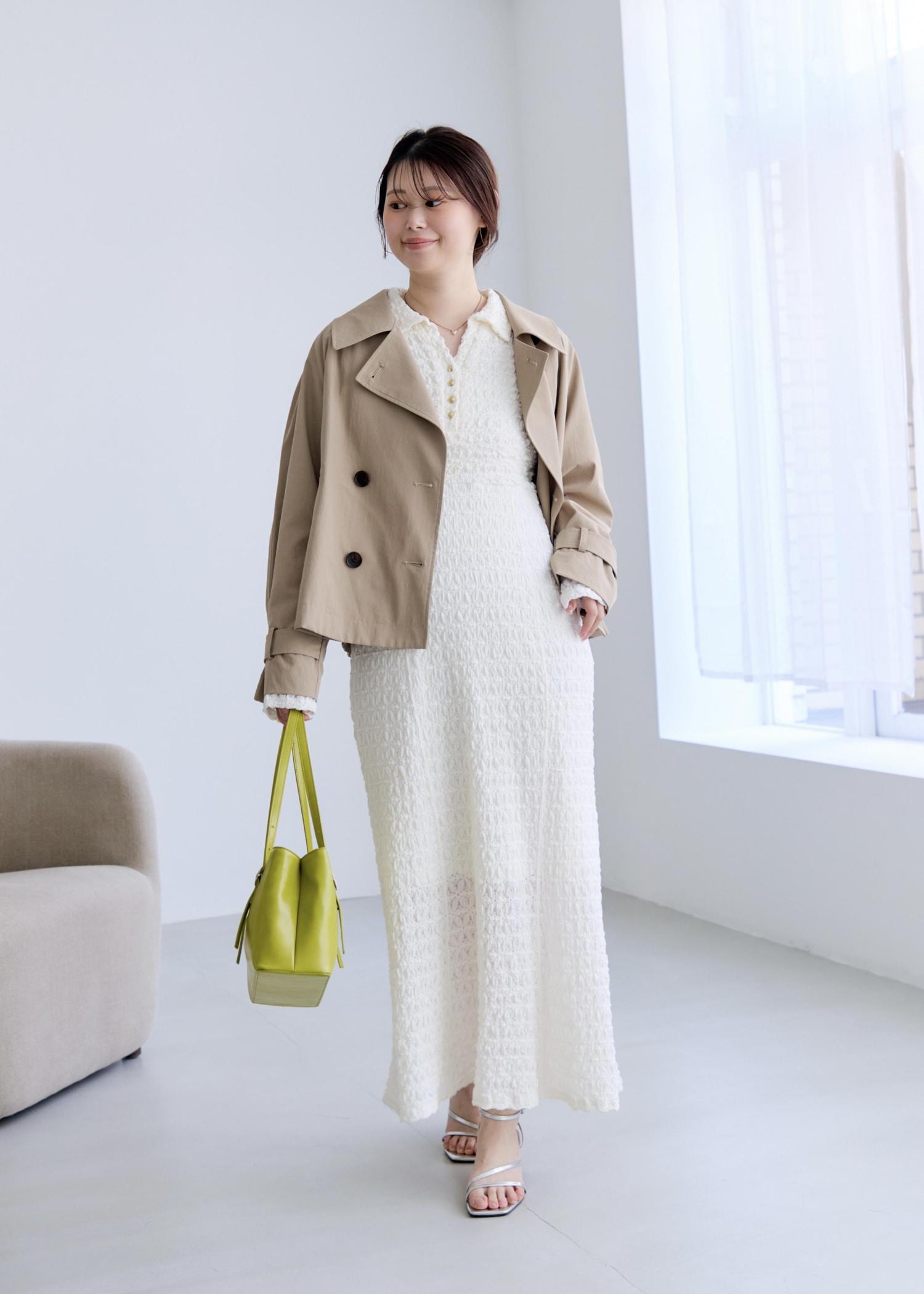一枚で華やかな印象になり、綺麗に魅せられるワンピースはホワイトで春らしく。
