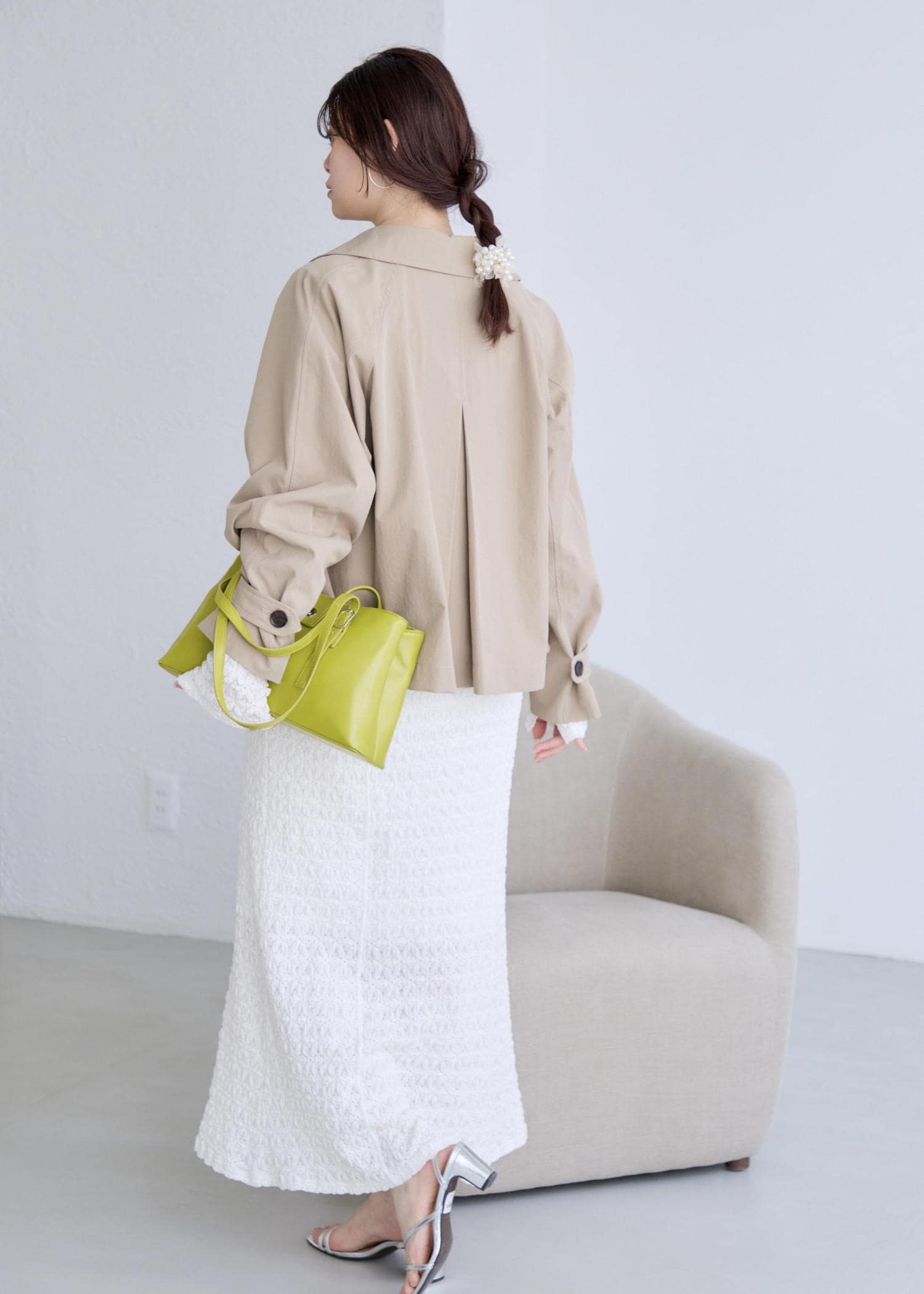 軽く羽織るくらいがちょうどいい季節にバックはカラーもので気分もUP間違いなし。