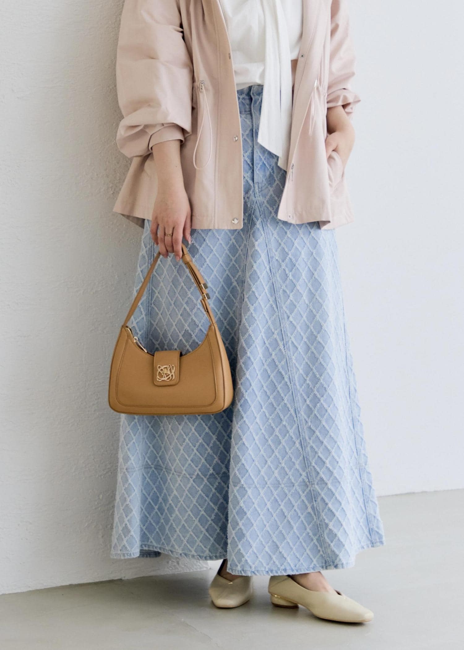 小物はキャメルやベージュ系で淡いトーンで合わせてみました!