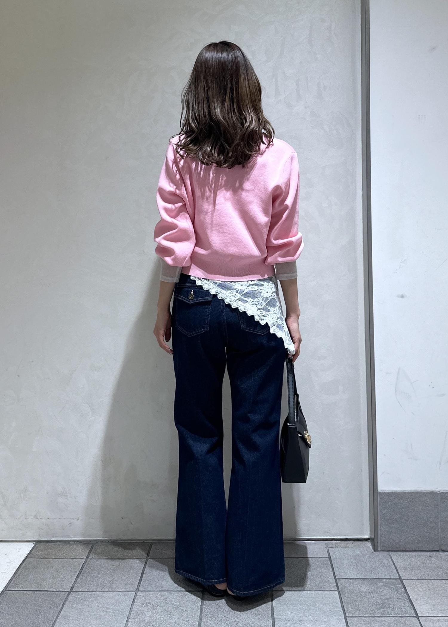 レースとデニムを合わせて、