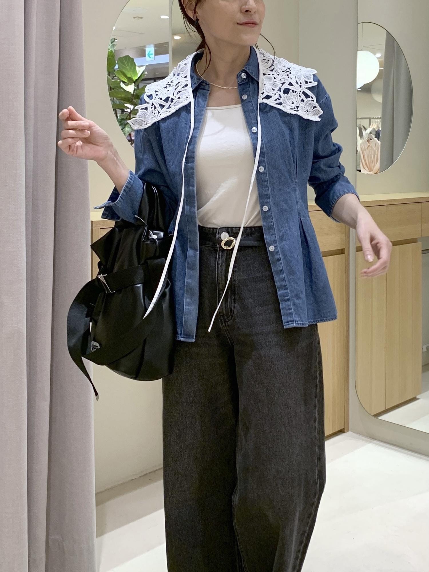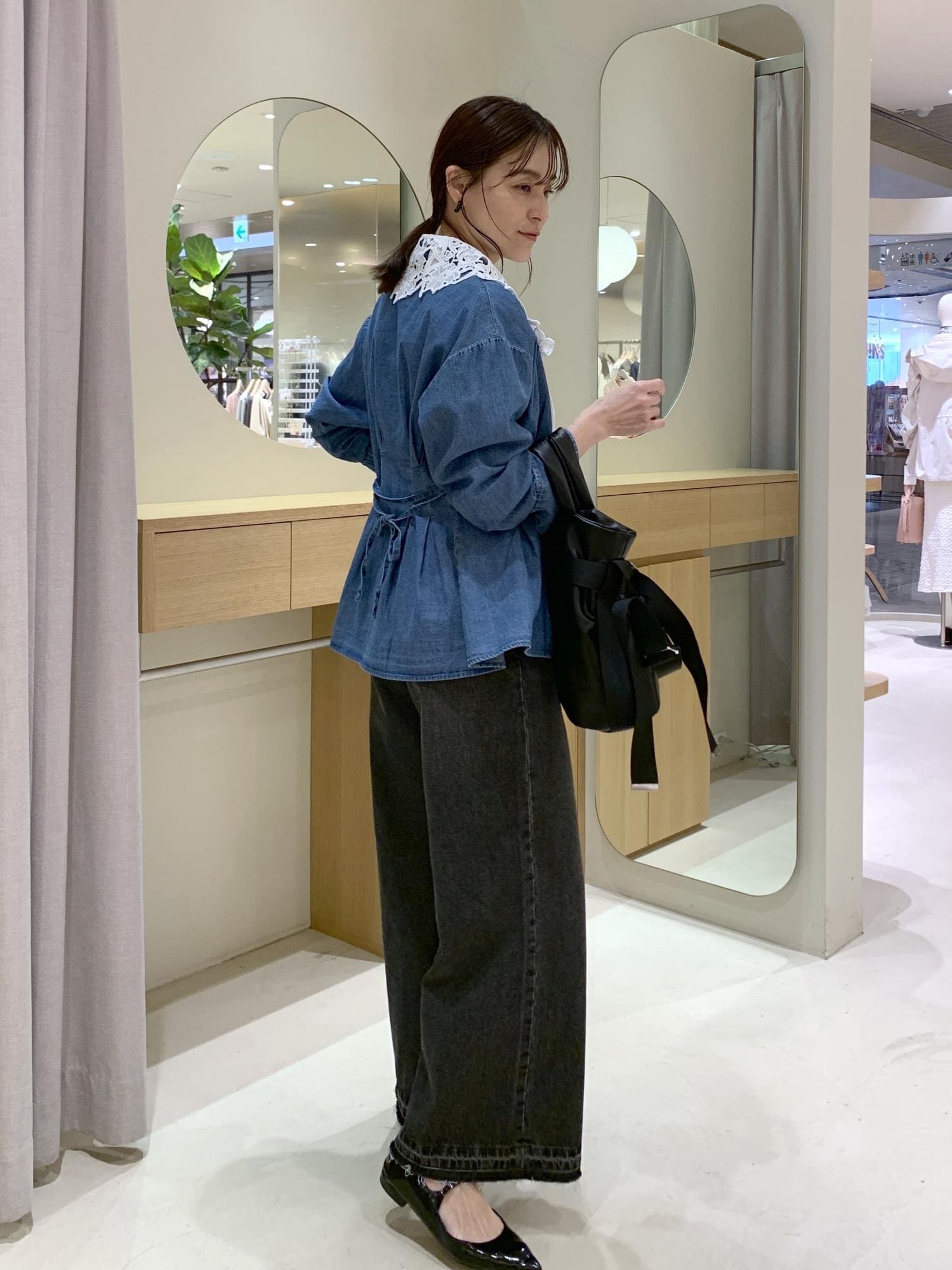 着用のデニムカラーは、硬すぎず程よいハリ感。