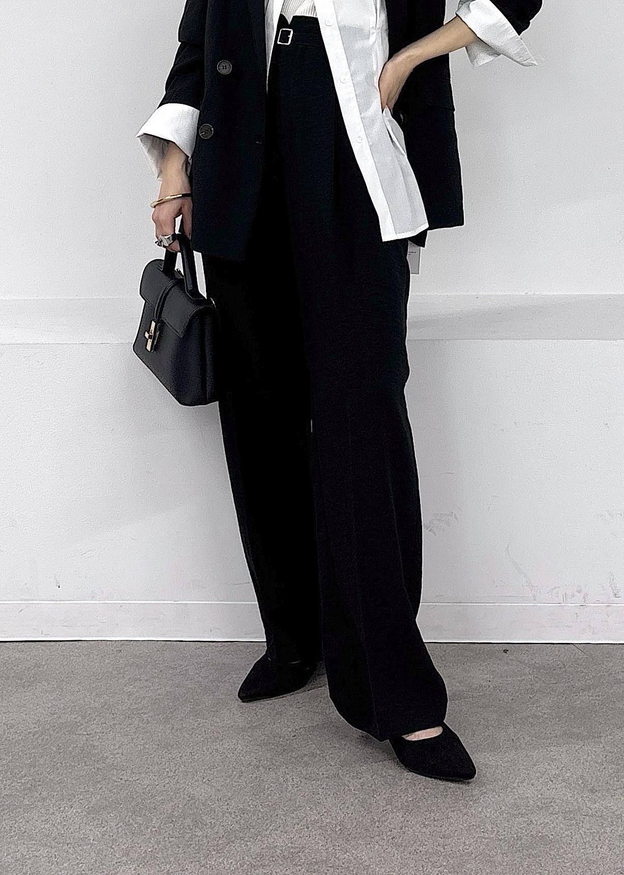 大人気美easyシリーズ、リネンライクのセットアップは春から秋まで長く着れる優秀アイテム♪きっちり見えするブラックは白シャツを少しボタンを外して抜け感を出すとこなれ感+スタイルup見え◎春でも黒が好きな方へオススメの大人カジュアルコーデ。
