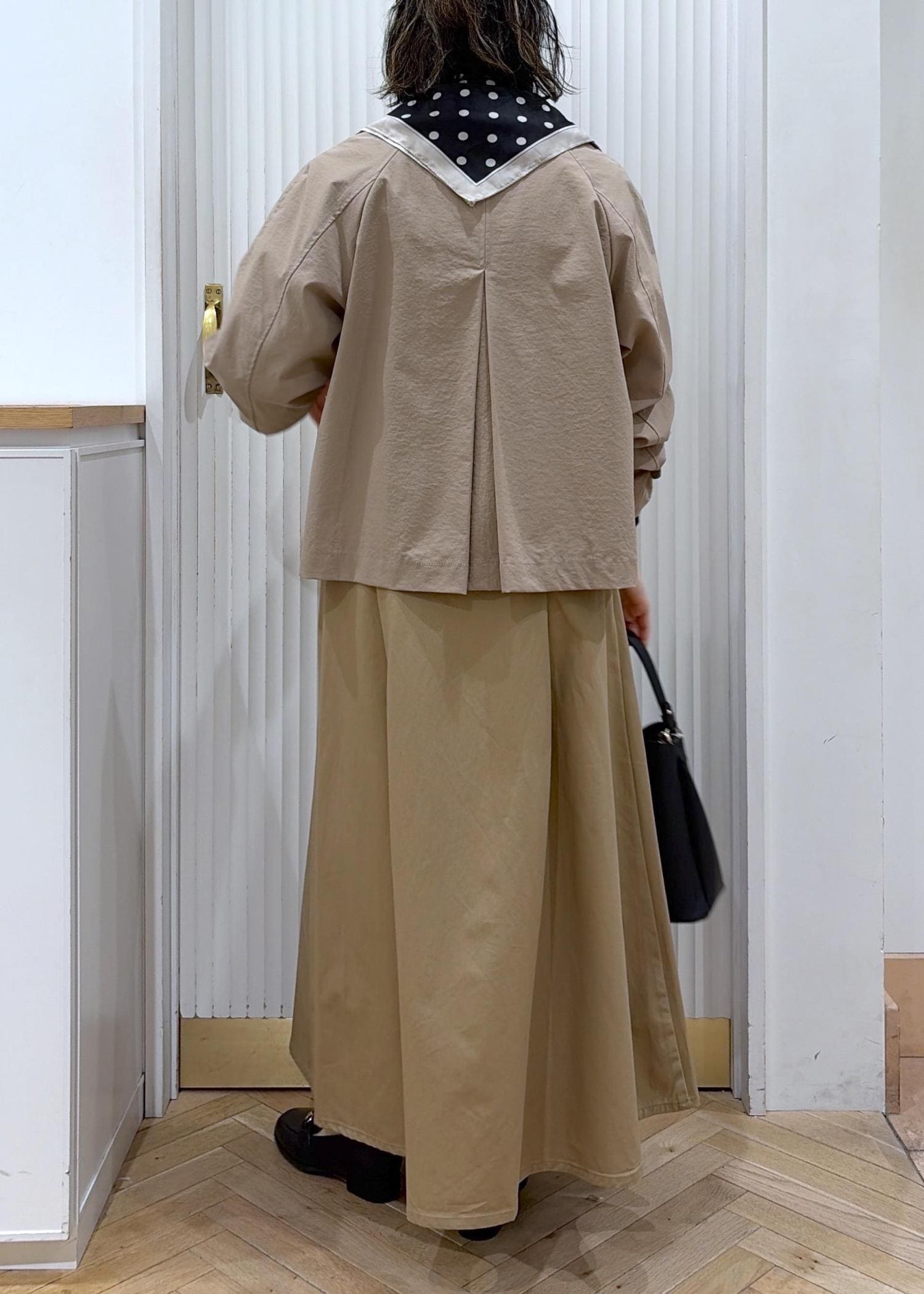 柔らかく軽いポリエステル素材でカチッとし過ぎず肩肘の張らない小慣れた印象。UVケア、撥水機能、花粉ガード付きが嬉しポイント♡ -
