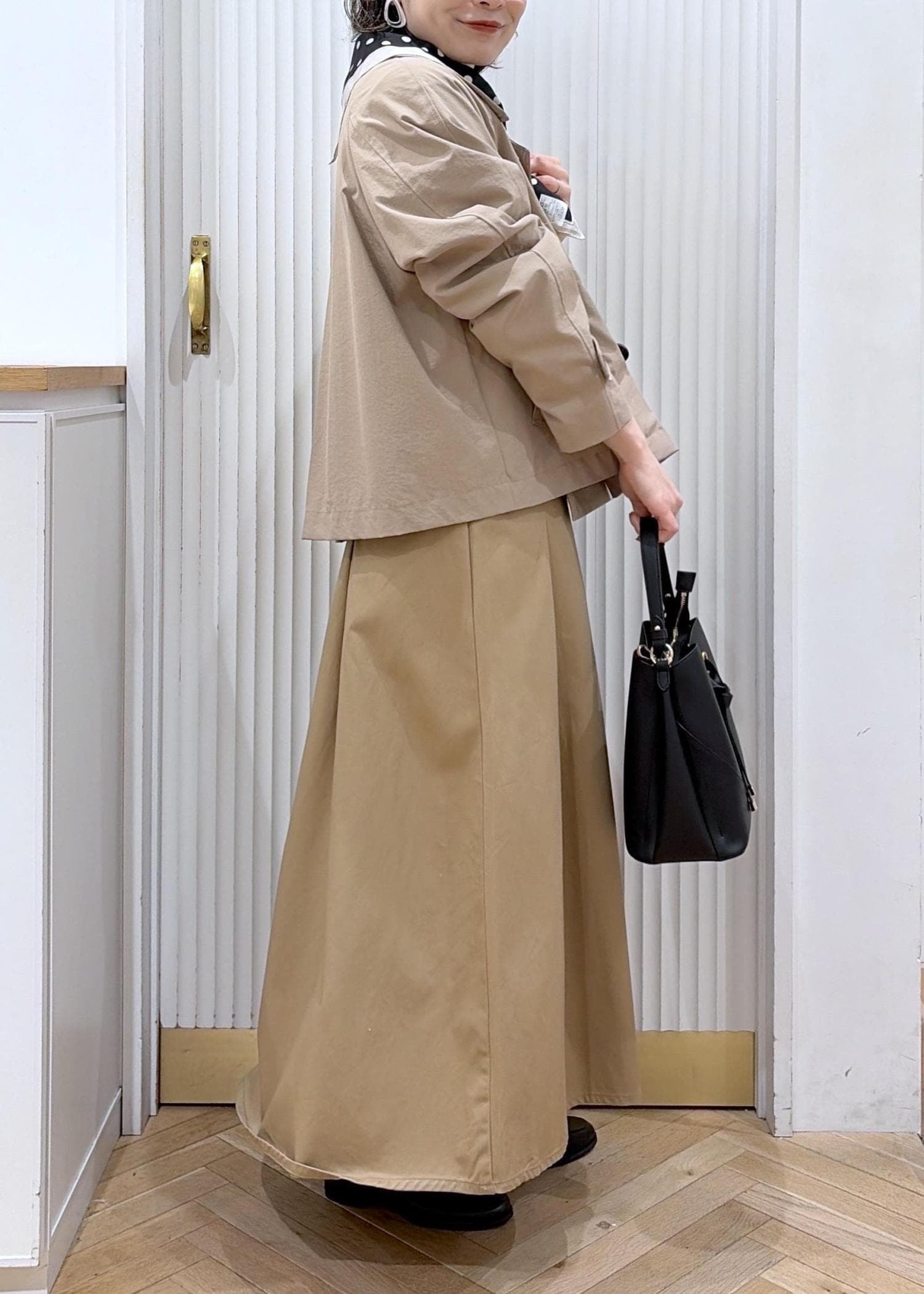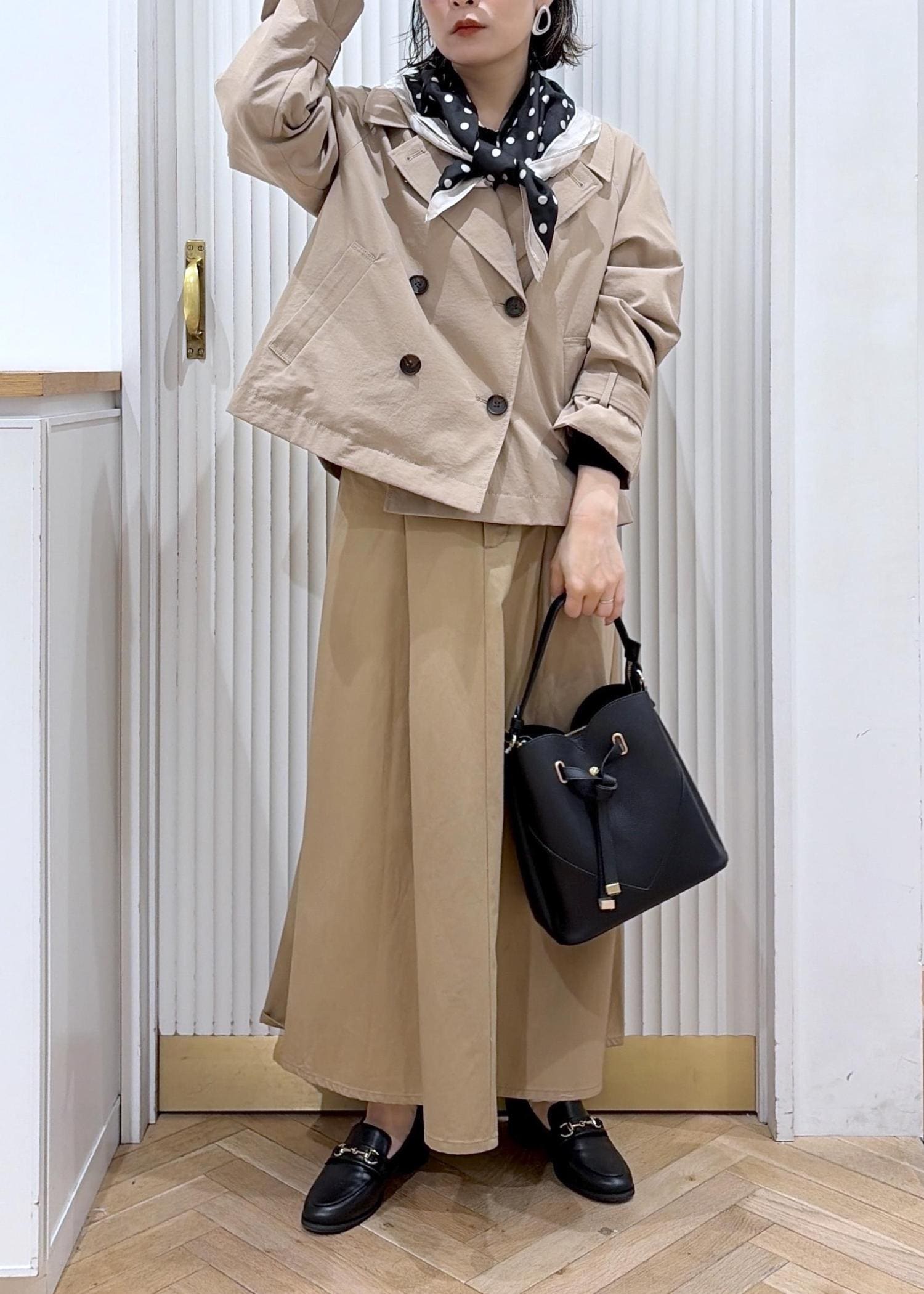 今年らしいショートトレンチで上品なワントーンコーデ。
