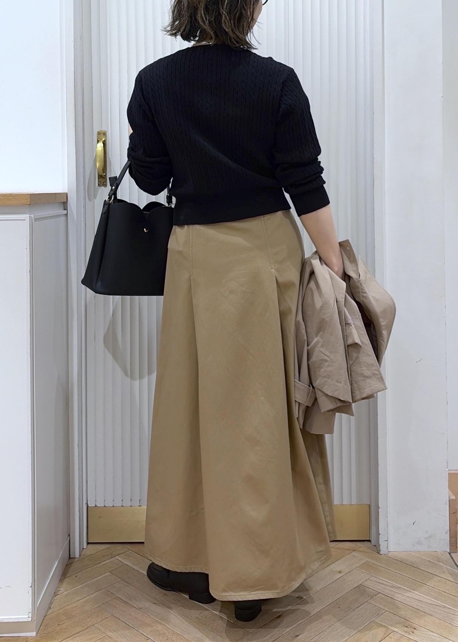 シンプルですがケーブル編みがポイントになってくれるのでキレイ目にスラックスパンツや、デニム、シンプルなスカートとボトムを選びません。初夏シーズンまで長く着れるので1着あると重宝します。 -