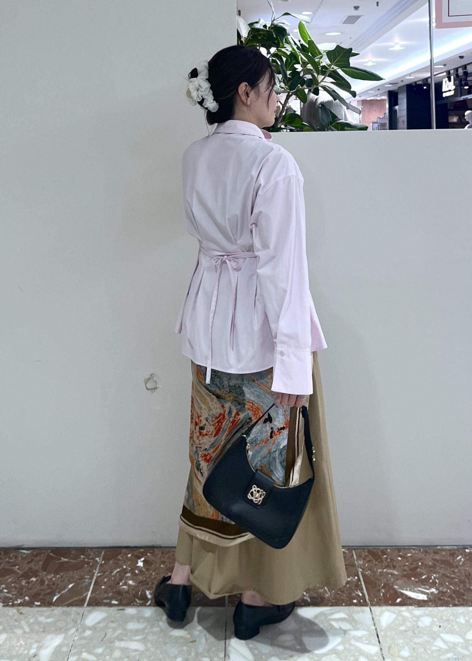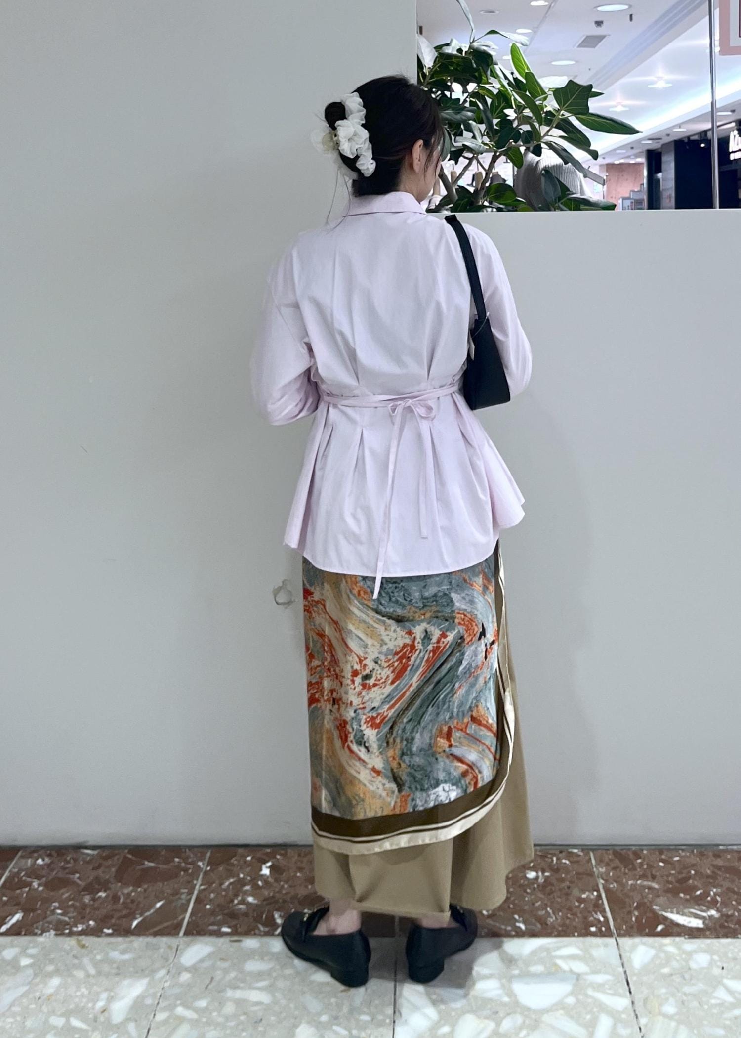 ウエストには取り外し可能な紐があるので絞れたり、後ろで結んだりアレンジが楽しめます。そこまで締め付け感はないので着心地も良いです。 -