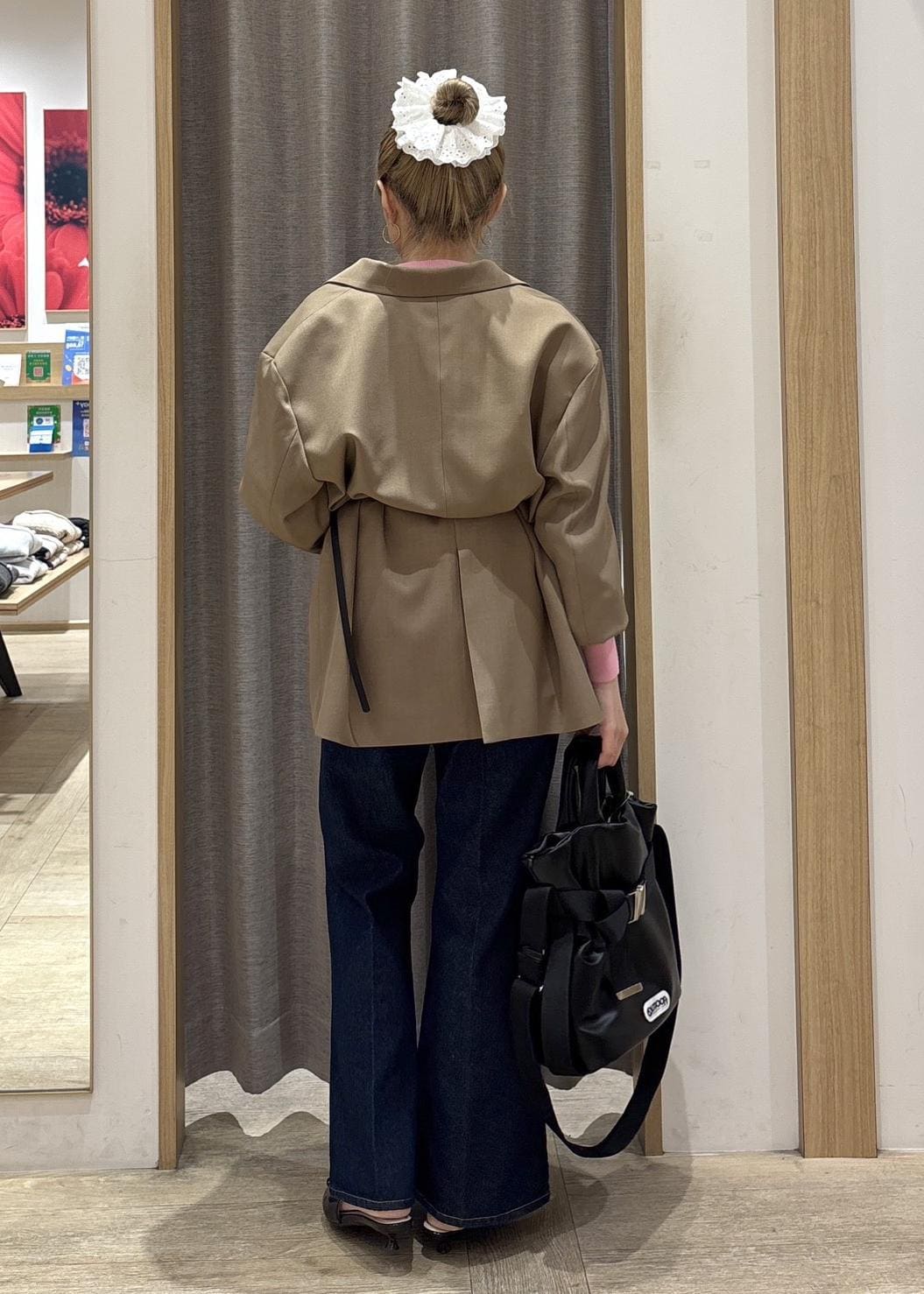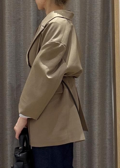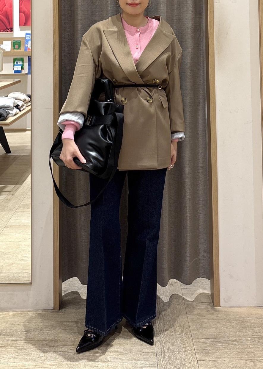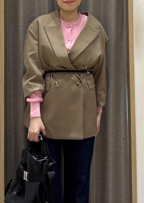 ハイゲージニットや、ブラウス以外のトップスを着てもごわつかず着れるので、春の軽アウターとして活躍する一着です。 -