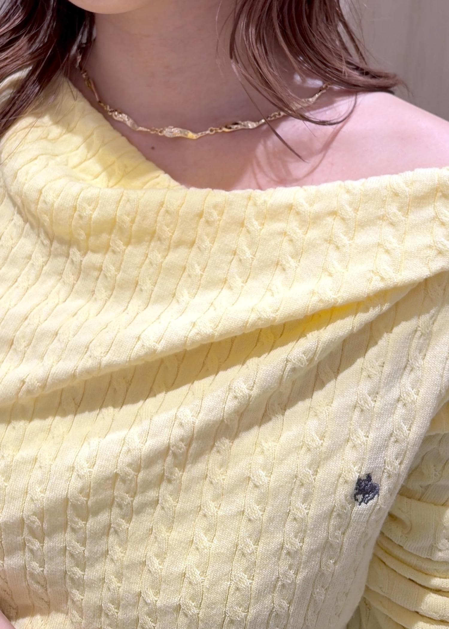イエローカラーは幼く見えるかも、、という方はワンショルにして着ると大人可愛く見えるのでおすすめです♡